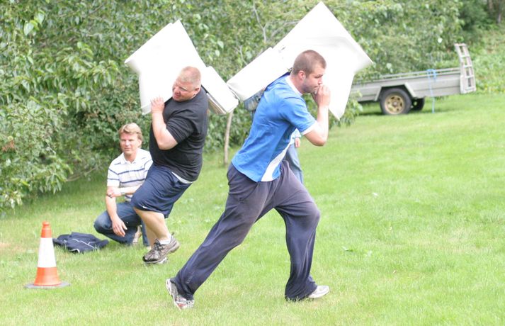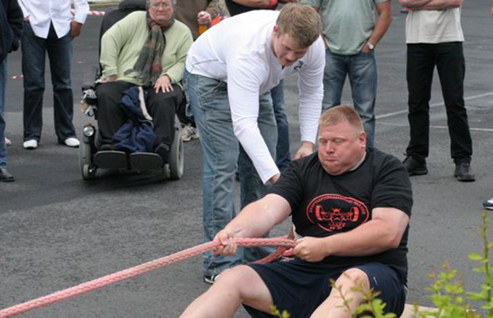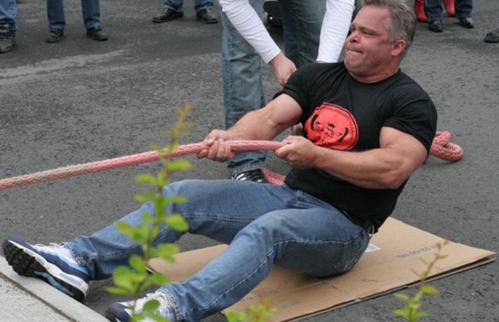 Árshátið Kraftlyftingasambands Íslands fór fram í Hátúni í dag og þar var mikið um dýrðir. Þar var meðal annars kraftakeppni þar sem óvæntar hetjur tóku þátt og hápunkturinn var án efa þegar einn stærsti jeppi landsins gerði sér lítið fyrir og ók yfir tvo fólksbíla. Sjáðu myndir frá keppninni í albúmi sem fylgir fréttinni. Í aflraunakeppninni var það einkaþjálfarinn Jón Bóndi Gunnarsson sem bar sigur úr býtum, en þar voru á meðal keppenda menn á borð við Ringo, Skaga-Kobbi, Grétar Big-G, Hjalti Úrsus og nokkrir vaskir piltar úr handknattleiksdeild Fram sem tóku þátt í keppninni sem hluta af óvissuferð. Keppt var í nokkuð óhefðbundnum greinum eins og jeppadrætti, hjólböruakstri, Gústavsberg-göngu með klósett og rúsínan í pylsuendanum var án efa útkastarakeppnin. Smelltu á myndirnar í albúminu hér fyrir neðan til að sjá stærri myndir af átökunum í dag. Myndirnar tók Börkur Bóasson.