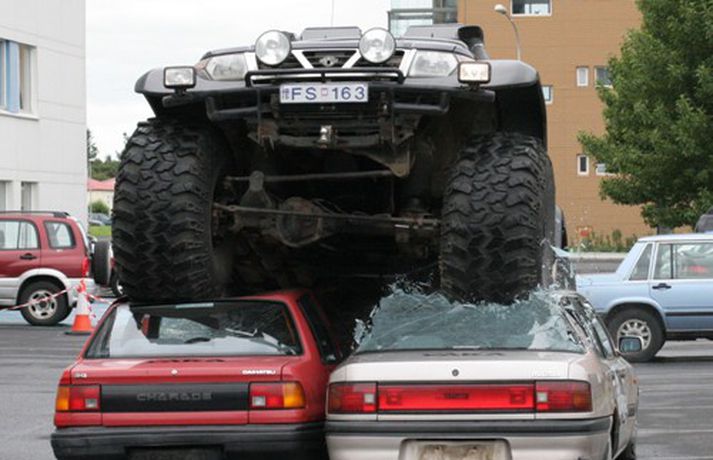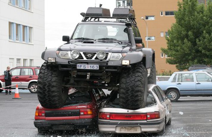Árshátíð Kraft fór fram í dag 21. júlí 2007 19:54 Risajeppinn lét sig ekki muna um að keyra yfir tvo fólksbíla á planinu í Hátúni í dag Mynd/Börkur Bóasson Árshátið Kraftlyftingasambands Íslands fór fram í Hátúni í dag og þar var mikið um dýrðir. Þar var meðal annars kraftakeppni þar sem óvæntar hetjur tóku þátt og hápunkturinn var án efa þegar einn stærsti jeppi landsins gerði sér lítið fyrir og ók yfir tvo fólksbíla. Sjáðu myndir frá keppninni í albúmi sem fylgir fréttinni. Í aflraunakeppninni var það einkaþjálfarinn Jón Bóndi Gunnarsson sem bar sigur úr býtum, en þar voru á meðal keppenda menn á borð við Ringo, Skaga-Kobbi, Grétar Big-G, Hjalti Úrsus og nokkrir vaskir piltar úr handknattleiksdeild Fram sem tóku þátt í keppninni sem hluta af óvissuferð. Keppt var í nokkuð óhefðbundnum greinum eins og jeppadrætti, hjólböruakstri, Gústavsberg-göngu með klósett og rúsínan í pylsuendanum var án efa útkastarakeppnin. Smelltu á myndirnar í albúminu hér fyrir neðan til að sjá stærri myndir af átökunum í dag. Myndirnar tók Börkur Bóasson. Innlendar Mest lesið Vonast til að komast í Kórinn: „Menn hafa aldrei séð annað eins“ Fótbolti Landsleiknum aflýst og framhaldið óljóst Fótbolti Fær þrjár milljónir á dag næstu sex árin fyrir að gera ekkert Sport Stöðufundur í Laugardal klukkan 10:30 Fótbolti Enska úrvalsdeildin í jólaköttinn Enski boltinn Elsta konan til klára Járnkarlinn Sport Markvörður Inter banaði háöldruðum manni í hjólastól Sport Landsliðskonur aðstoðuðu ökumenn í vanda Fótbolti Segir að Slot verði að taka tvo leikmenn út úr Liverpool-liðinu Enski boltinn Birnir frá Akureyri í Garðabæ Íslenski boltinn Fleiri fréttir Vinícius Júnior íhugar að yfirgefa Real Madríd Kaupir sér tveggja milljarða króna hús Alexander Máni með fimm mörk í tveimur leikjum og Ísland áfram Birnir frá Akureyri í Garðabæ Klobbaði íslensku strákana og fór á flug á netmiðlum Teitur inn í landsliðið Hættir með Fram Landsliðskonur aðstoðuðu ökumenn í vanda Öllum leikjum Bónus-deildar kvenna í kvöld frestað Arnar skilur ekkert í Tottenham Landsleiknum aflýst og framhaldið óljóst Bardagakapparnir vilja ólmir fá að keppa í Hvíta húsinu Segir að Slot verði að taka tvo leikmenn út úr Liverpool-liðinu Vonast til að komast í Kórinn: „Menn hafa aldrei séð annað eins“ Markvörður Inter banaði háöldruðum manni í hjólastól „Alltaf gaman að fá nýjar raddir inn“ Gleðifréttir fyrir Argentínumenn: Messi vill spila á HM „Sagan hefur sýnt það að ég er góður að þjálfa unga og efnilega leikmenn“ Stöðufundur í Laugardal klukkan 10:30 Enska úrvalsdeildin í jólaköttinn Nýi íþróttastjóri Kjartans stal mörgæs og endaði í fangelsi í Singapúr Tyrkneska sambandið segir dómara hafa veðjað á þúsundir leikja Brendan Rodgers sagði starfinu sínu lausu eftir ásakanir Fær þrjár milljónir á dag næstu sex árin fyrir að gera ekkert Segir sitt fyrrum lið í krísu Elsta konan til klára Járnkarlinn Dagskráin í dag: VARsjáin, Lokasóknin, íslenskur körfubolti og margt fleira Fylltu í eyðurnar: Vanmetnasti leikmaður deildarinnar? Fyrirliði Real Madríd þarf að fara í aðgerð á hné Einkaviðtal við Carrick: „Hálfgerð tískubylgja sem einkennir fótboltann í dag“ Sjá meira