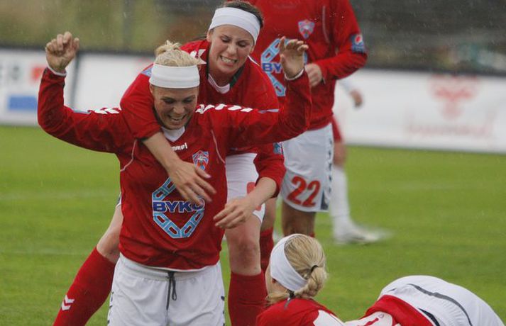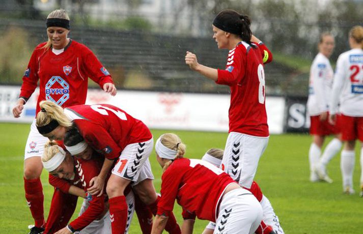 Valskonur komnar með sex stiga forskot á toppnum Óskar Ófeigur Jónsson skrifar 6. ágúst 2010 22:15 Rakel Logadóttir fagnar marki sínu í kvöld. Mynd/Valli Kvennalið Vals steig stórt skref í átta að fimmta Íslandsmeistaratitlinum í röð með 3-0 sigri á Þór/KA á Vodafone-vellinum í kvöld. Þór/KA gat með sigri minnkað forskot Vals niður í eitt stig en í staðinn eru Valskonur komnar með sex stiga forskot á Breiðablik sem er í 2. sætinu. Rakel Logadóttir var fjarri góðu gamni þegar Valsliðið steinlá á móti Fylki í síðustu umferð en var mætt aftur í slaginn í kvöld. Rakel skoraði fyrsta mark Valsliðsins og kom þeim á bragðið í leiknum. Valgarður Gíslason, ljósmyndari Fréttablaðsins og Vísis, var á Hlíðarenda og myndaði Valsstelpur í stuði en þær hafa unnið alla Íslandsmeistaratitla frá og með árinu 2006. Myndirnar má sjá í albúminu hér að neðan. Hægt er að sjá myndirnar stærri með því að smella á þær.Mynd/ValliMynd/ValliMynd/ValliMynd/ValliMynd/ValliMynd/ValliMynd/ValliMynd/ValliMynd/ValliMynd/Valli Pepsi Max-deild kvenna Skroll - myndbönd og hljóðklippur Skroll-Íþróttir Mest lesið Tindastóll - Stjarnan 96-95 | Ótrúlegur endir á Króknum Körfubolti Grafalvarleg staða: „Þurfum að fara í sársaukafullar aðgerðir“ Handbolti Fram þvertekur fyrir metnaðarleysi og leitar að nýjum þjálfurum Íslenski boltinn Ógeðslega erfitt og ógeðslega vont en brosir oft í viku á eftir Sport Jóladagskráin klár: Hefðin brotin og aðeins einn leikur annan í jólum Enski boltinn ÍR - Ármann 96-83 | Nýliðarnir enn í leit að fyrsta sigrinum Körfubolti Gísli semur við Skagamenn Íslenski boltinn Nefna greinar Íslandsmótsins í CrossFit í höfuðið á íslenskum íþróttakonum Sport „Nú er nóg komið“ Fótbolti Arnór Snær snýr aftur heim Handbolti Fleiri fréttir Tölur úr Bestu: Bjartur Bjarmi fór í flestar tæklingar af öllum Gísli semur við Skagamenn Óskar Smári tekur við Stjörnunni Bretinn ráðinn tæknilegur ráðgjafi hjá Val Fram þvertekur fyrir metnaðarleysi og leitar að nýjum þjálfurum Tölur úr Bestu: Hallgrímur Mar bjó til langflest færi „Mjög sáttur með samninginn“ „Hefði séð eftir því alla ævi“ Magnús Már í viðræðum við HK Uppgjörið: Ísland - Norður-Írland 3-0 | Áfram hluti af elítunni Tölur úr Bestu 2025: Klúðraði langflestum dauðafærum í sumar FH bíður með að tilkynna nýjan þjálfara Óskar Hrafn fer ekki fet Birnir frá Akureyri í Garðabæ Hættir með Fram Heimir kynntur til leiks í Árbænum Túfa rekinn frá Val Leyndarmáli ljóstrað upp þegar Heimir og Björn kvöddu Leikmenn kusu Patrick og Guðmund Sjáðu bananabombu Antons Loga og önnur síðustu mörk tímabilsins Uppgjörið: Stjarnan - Breiðablik 2-3 | Stjarnan í Evrópu þrátt fyrir tap „Held að ég geti ekki gert mikið meira“ Uppgjörið: Vestri - KR 1-5 | KR bjargaði sér og sendi Vestra í Lengjudeildina Uppgjörið: ÍA - Afturelding 1-0 | Afturelding staldraði stutt við í efstu deild Uppgjörið: Víkingur - Valur 2-0 | Meistararnir klára tímabilið með stæl Uppgjörið: ÍBV - KA 3-4 | KA tryggði sér Forsetabikarinn þriðja árið í röð Ráðast örlög Aftureldingar inni í höll? „Þetta verður bara veisla fyrir vestan“ Vestri og KR mætast á fyrsta degi vetrar: „Vona að það snjói ekki í nótt“ Lárus Orri framlengir á Skaganum Sjá meira