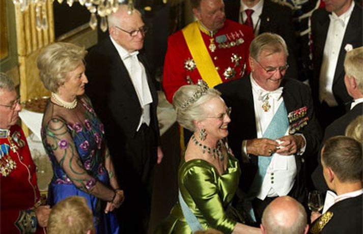 Margrét Þórhildur Danadrottning fagnar sjötugsafmæli sínu með stæl þessa dagana. Í gærkvöldi fór fram viðhafnarsýning í Konunglega leikhúsinu í Kaupmannahöfn. Þar var drottningin búin að velja sér valda kafla úr Shakespeare-leikritum, dansa úr balletsýningum og tónverk sem færustu listamenn Danmerkur settu á svið. Dorrit Mousaieff forsetafrú var fulltrúi Íslendinga á svæðinu og eins og sést á myndunum er hún eins og fiskur í vatni í fyrirmannaveislum sem þessum. Sat hún á besta stað í stúku með eintómar prinsessur í kringum sig. Í gær kom fram að Ólafur Ragnar festist á Íslandi eftir að flugvellir lokuðu en Dorrit var þá komin til Kaupmannahafnar. Um tólf hundruð manns var boðið í leikhúsið en eldgosið í Eyjafjallajökli setti aldeilis strik í reikninginn. Fjöldi gestanna komst ekki á leiðarenda þegar lokað var fyrir flugsamgöngur. Leiða má líkur að því að Dorrit hafi þurft að svara mörgum spurningum vegna þess. Meðal þeirra sem búist var við að myndu komast þrátt fyrir ástandið voru norsku konungshjónin en þau sáust hvergi. Madeleine Svíaprinsessa mætti ekki heldur á svæðið. Fyrr í vikunni var sagt frá því að brúðkaupi hennar og lögfræðingsins Jónasar Bergström hefði verið frestað. Sænskir fjölmiðlar velta því fyrir sér hvort sambandinu sé lokið. Sagt er að Madeleine sé í New York og hafi ákveðið að mæta ekki í veisluna til að jafna sig á fjölmiðlafárinu sem skall á henni. Hátíðarhöldin halda áfram í Kaupmannahöfn í dag. Danir bíða með eftirvæntingu eftir því að drottningin aki í hestvagni um götur höfuðborgarinnar en sumir danskir fjölmiðlar lýsa yfir áhyggjum af því að öskuskýin frá Eyjafjallajökli fari að rigna eitruðu regni. Í kvöld fer síðan fram svakalegt kvöldverðarboð í Konungshöllinni sem fleiri gestir munu eflaust skila sér í.Norska krónprinsessan Mette-Marit, sænska krónprinsessan Viktoría, Dorrit forsetafrú og gríska prinsessan Alexía.Margrét Þórhildur og Hinrik í sætum sínum. Afmælisbarnið valdi uppálahaldsatriði úr fjölda verka sem sýnd voru í leikhúsinu.Dorrit á spjalli við Alexíu Grikkjaprinsessu. Hún hefur eflaust tipsað hana á góðum trikkum í samskiptum við Alþjóðagjaldeyrissjóðinn.Dönsku prinsarnir og eiginkonur þeirra í leikhúsinu í gær. Marie prinsessa, Jóakim prins, Mary krónprinsessa og Friðrik krónprins.Afmælisbarnið spjallaði við gesti áður en sýningin hófst.Mary krónprinsessa, Friðrik krónprins og Mette-Marit og norska krónprinsessan Mette-Marit mættu saman á rauða dregilinn.Karl Filip Svíaprins, systir hans Viktoría krónprinsessa og unnusti hennar, Daniel Westling. Svíar eru byrjaðir að undirbúa stórbrúðkaup þeirra, sem fer fram 19. júní næstkomandi.Margrét Þórhildur Danadrottning og Henrik prins veifa út um gluggann á Fredensborg-höll í gærmorgun. Þarna fyrir utan safnaðist fjölskylda og vinir og söng afmælissönginn fyrir drottninguna.