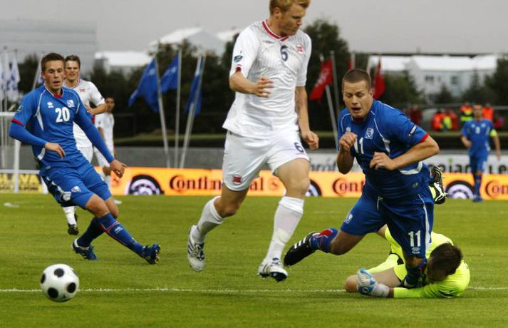 Naumt tap gegn Noregi Hjalti Þór Hreinsson skrifar 4. september 2010 10:45 Ísland tapaði sem kunnugt er fyrir Noregi í fyrsta leiknum í undnakeppni Evrópumótsins árið 2012. Lokatölur voru 1-2 fyrir Noreg. Eftir að Heiðar Helguson kom Íslandi yfir skoruðu Norðmenn tvö mörk í seinni hálfleik og tryggðu sér sigur. Anton Brink ljósmyndari var á vellinum og smellti af í gríð og erg. Magnaðar myndir hans frá leiknum má sjá í myndaalbúminu hér fyrir neðan.Gylfi Þór Sigurðsson í leiknum í gær.Fréttablaðið/Anton Skroll - myndbönd og hljóðklippur Skroll-Íþróttir Mest lesið Tindastóll - Stjarnan 96-95 | Ótrúlegur endir á Króknum Körfubolti Grafalvarleg staða: „Þurfum að fara í sársaukafullar aðgerðir“ Handbolti Uppgjörið: Þýskaland - Ísland 42-31 | Þrot í Þýskalandi Handbolti Bíll Shaquille O'Neal enn ófundinn Körfubolti „Hefði séð eftir því alla ævi“ Íslenski boltinn Ógeðslega erfitt og ógeðslega vont en brosir oft í viku á eftir Sport Fram þvertekur fyrir metnaðarleysi og leitar að nýjum þjálfurum Íslenski boltinn Líður alltaf yfir hana þegar hún kemur í mark Sport Einkunnir Íslands: Þrjár heitastar í frostinu Fótbolti „Nú er nóg komið“ Fótbolti Fleiri fréttir Tölur úr Bestu: Bjartur Bjarmi fór í flestar tæklingar af öllum Gísli semur við Skagamenn Óskar Smári tekur við Stjörnunni Bretinn ráðinn tæknilegur ráðgjafi hjá Val Fram þvertekur fyrir metnaðarleysi og leitar að nýjum þjálfurum Tölur úr Bestu: Hallgrímur Mar bjó til langflest færi „Mjög sáttur með samninginn“ „Hefði séð eftir því alla ævi“ Magnús Már í viðræðum við HK Uppgjörið: Ísland - Norður-Írland 3-0 | Áfram hluti af elítunni Tölur úr Bestu 2025: Klúðraði langflestum dauðafærum í sumar FH bíður með að tilkynna nýjan þjálfara Óskar Hrafn fer ekki fet Birnir frá Akureyri í Garðabæ Hættir með Fram Heimir kynntur til leiks í Árbænum Túfa rekinn frá Val Leyndarmáli ljóstrað upp þegar Heimir og Björn kvöddu Leikmenn kusu Patrick og Guðmund Sjáðu bananabombu Antons Loga og önnur síðustu mörk tímabilsins Uppgjörið: Stjarnan - Breiðablik 2-3 | Stjarnan í Evrópu þrátt fyrir tap „Held að ég geti ekki gert mikið meira“ Uppgjörið: Vestri - KR 1-5 | KR bjargaði sér og sendi Vestra í Lengjudeildina Uppgjörið: ÍA - Afturelding 1-0 | Afturelding staldraði stutt við í efstu deild Uppgjörið: Víkingur - Valur 2-0 | Meistararnir klára tímabilið með stæl Uppgjörið: ÍBV - KA 3-4 | KA tryggði sér Forsetabikarinn þriðja árið í röð Ráðast örlög Aftureldingar inni í höll? „Þetta verður bara veisla fyrir vestan“ Vestri og KR mætast á fyrsta degi vetrar: „Vona að það snjói ekki í nótt“ Lárus Orri framlengir á Skaganum Sjá meira