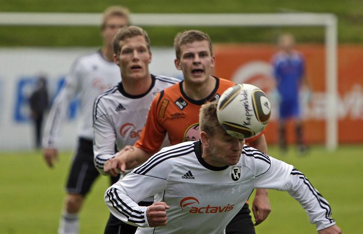 FH-ingar hafa sett topplið ÍBV og Blika sem eru í öðru sæti undir mikla pressu eftir sigurinn á Fylki í gær. Endurkoma liðsins var frábær. FH lenti 0-2 undir en sneri leiknum við og vann 4-2. Freyr Bjarnason, Gunnar Már Guðmundsson og Atli Viðar Björnsson skoruðu fyrir FH, Atli Viðar tvö. Jóhann Þórhallsson og Andrés Már Jóhannesson skoruðu fyrir Fylki. Vilhelm Gunnarsson ljósmyndari var á vellinum vopnaður myndavélinni. Afrakstur hans frá leiknum má sjá hér fyrir neðan.Barátta í Kaplakrika.Fréttablaðið/Vilhelm
