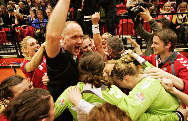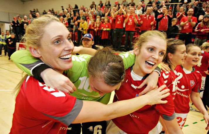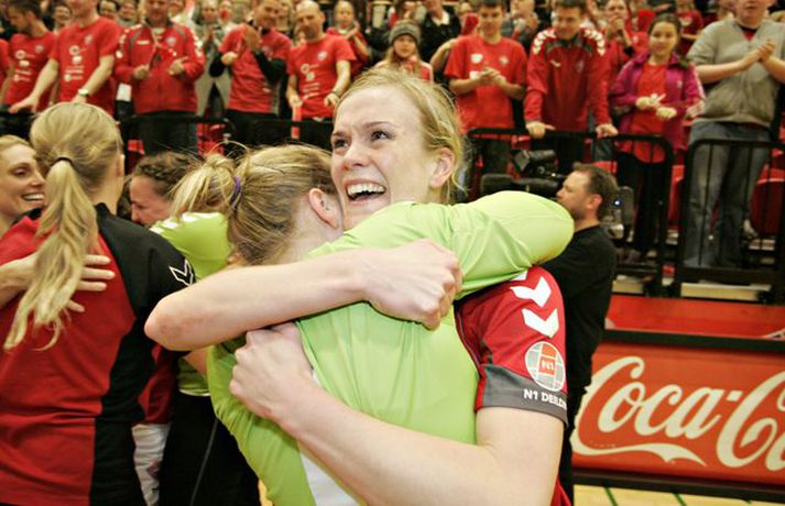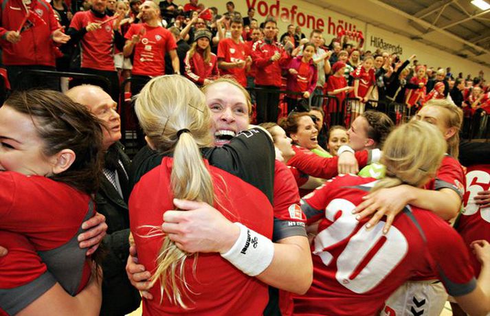 Fögnuður Valskvenna í myndum Eiríkur Stefán Ásgeirsson skrifar 14. apríl 2011 08:00 Valur varð í gær Íslandsmeistari kvenna í handbolta annað árið í röð. Valskonur sópuðu Fram í úrslitaeinvíginu, 3-0, eftir ótrúlegan leik í gær þar sem úrslit réðust ekki fyrr en í vítakastkeppni. Grípa þurfti til þessa sjaldséða úrræðis eftir að leikar stóðu jafnir eftir áttatíu mínútur af handbolta - semsagt tvíframlengdan leik. Fögnuður Valskvenna var eðlilega mikill eftir leikinn og tók Daníel Rúnarsson, ljósmyndari Vísis og Fréttablaðsins, myndirnar sem má sjá hér fyrir neðan. Olís-deild karla Skroll-Íþróttir Mest lesið „Örugglega nokkrir Fantasy-þjálfarar ósáttir“ Enski boltinn „Haaland er þetta góður“ Enski boltinn Tilþrif 5. umferðar: Jukic stal senunni Körfubolti Kærastan tók eftir því að eitthvað var að Handbolti Lygilega jafnt á toppnum eftir sigur AC Milan Fótbolti Ítalinn hoppaði upp fyrir Alcaraz eftir sigur í París Sport „Það verður hundleiðinlegt að spila við Val“ Íslenski boltinn Uppgjörið: Þýskaland - Ísland 29-31 | Svöruðu skellinum með frábærum sigri Handbolti Ólíkar niðurstöður hjá landsliðsmönnunum Körfubolti Hermann tekinn við Val Íslenski boltinn Fleiri fréttir Uppgjörið: Þýskaland - Ísland 29-31 | Svöruðu skellinum með frábærum sigri Kærastan tók eftir því að eitthvað var að KA/Þór gerði jafntefli við botnliðið Valskonur unnu 24 marka sigur og ÍR upp í annað sætið „Fannst þetta verða svartara og svartara“ Alfreð hissa: Veit að Íslendingar geta mun betur Andri kallaður inn í hópinn fyrir meiddan Hauk Arnór Snær snýr aftur heim Besta handboltadeild heims missir aðalstyrktaraðila sinn Grafalvarleg staða: „Þurfum að fara í sársaukafullar aðgerðir“ ÍR áfram eftir sigur í Mosfellsbæ Uppgjörið: Þýskaland - Ísland 42-31 | Þrot í Þýskalandi Tilkynnti um óléttu og nýjan samning á sama tíma Patrekur hættur eftir dapurt gengi Stjörnunnar Rekinn fyrir ummæli sín um krabbameinssjúka handboltagoðsögn Janus Daði myndaður í heimsókn hjá Barcelona Epicbet sýni handboltann í leyfisleysi: „Enda ólöglegar síður“ Teitur inn í landsliðið Gísli bjó til meira en þriðjung markanna Haukur magnaður í sigri Löwen Blær skoraði þrjú og lagði upp jöfnunarmarkið KA/Þór sótti sigur gegn Fram og stigalausar Stjörnukonur Fram kjöldró HK og spenna í Eyjum Meistararnir unnu gegn ÍBV og ÍR hafði betur gegn Selfyssingum Donni og félagar björguðu stigi undir lokin Afturelding komst upp að hlið Hauka Seldu bleika búninginn hennar Herrem fyrir meira en milljón „Leið vel þegar ég fór inn úr færinu“ Uppgjörið FH - Haukar 27-26 | Birgir Már tryggði FH sigur eftir spennutrylli Bernard fór mikinn en Valsmenn sluppu með sigurinn Sjá meira