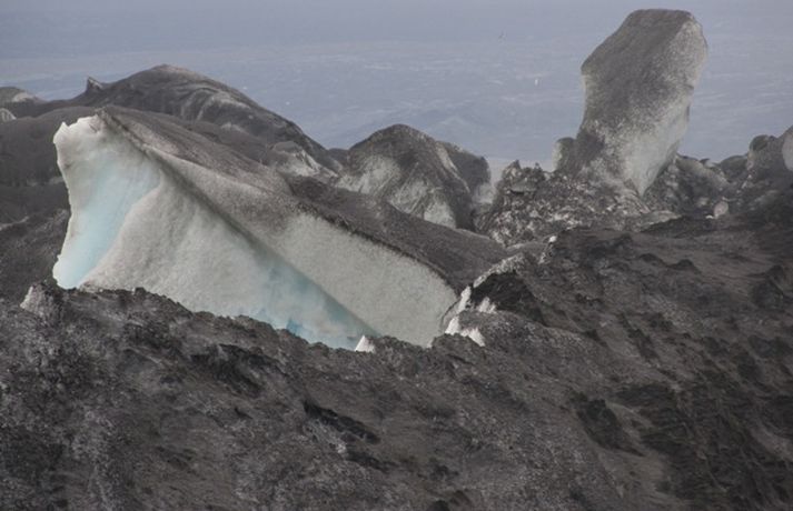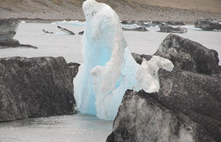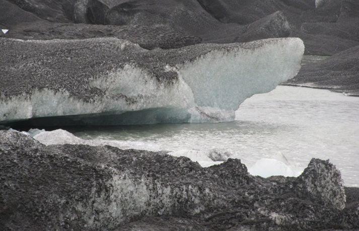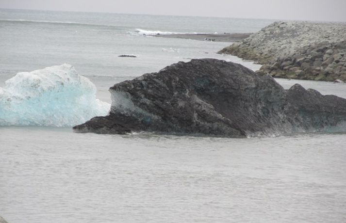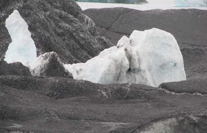 Sótsvartir jakar á Jökulsárlóni Jón Hákon Halldórsson skrifar 23. maí 2011 20:15 Jakarnir eru sótsvartir eins og sést á myndum Elvu Bjargar. Þessar fallegu myndir af Jökulsárlóni tók Elva Björg Elvarsdóttir, fjórtán ára gömul stelpa í dag. Hún er stödd hjá ættingum sínum á Hestgerði við Höfn í Hornafirði og fór að lóninu í dag til að virða fyrir sér jakana, sem eru orðnir svartir af ösku, eins og sést á myndunum. „Þetta er flott, en ekki samt út af góðum ástæðum," segir Elva. Hún er búsett í Hveragerði, en kemst ekki heim vegna þess að leiðin austur hefur verið lokuð vegna gossins. Hún vonast þó til að komast heim á morgun. Helstu fréttir Mest lesið Veðurvaktin: Snjókoman rétt að byrja og víða erfið færð Veður Ungur Miðflokksmaður gengst við rasisma og segir af sér Innlent Snjókoman rétt að byrja Innlent Flugmaðurinn sem fórst millilenti oft í Reykjavík Innlent Eldur í blokk við Ljósheima Innlent Bílar út af veginum á Reykjanesbraut Innlent Hvatt til varúðar vegna snjóflóðahættu á suðvesturhorninu Innlent Ráðgjafinn ráðinn í tímabundið starf eftir dýra skreppitúra Innlent Skvísur geti virkað sem hálfgerðir þroskaþjófar Innlent Fjölmargir farþegar fastir í flugvélum á Keflavíkurflugvelli Innlent Fleiri fréttir Biðu í fjóra tíma úti á braut og aðra fjóra við farangursbeltin Kærðu umdeildar framkvæmdir allt of seint Skellt í lás í sundlaugum borgarinnar vegna veðurs Reglur brotnar og þjónusta sem bjóða ætti út Þarf að borga bætur þrátt fyrir breytingar á hlaupahjólinu Hvatt til varúðar vegna snjóflóðahættu á suðvesturhorninu Meiri kvika en í síðasta gosi Eldur í blokk við Ljósheima Flugmaðurinn sem fórst millilenti oft í Reykjavík Halla leiðir krabbameinsráð ráðherra Snjókomumet og umferðaröngþveiti Segir sameiginlegum gildum Norðurlanda ógnað Fjölmargir farþegar fastir í flugvélum á Keflavíkurflugvelli Ungur Miðflokksmaður gengst við rasisma og segir af sér Sturlað ástand og United vettlingar prjónaðir í bílnum Mesta snjódýpt í Reykjavík sem mælst hefur í október Viðbragðsaðilar í mikilli hættu vegna bíla á sumardekkjum Bílar út af veginum á Reykjanesbraut Vill heimila Samkeppniseftirlitinu að ráðast í húsleitir Snjókoman rétt að byrja Píratar berjist gegn „rísandi bylgju lýðskrums og fasisma“ Skvísur geti virkað sem hálfgerðir þroskaþjófar Ráðgjafinn ráðinn í tímabundið starf eftir dýra skreppitúra Misvægi atkvæða bitnar mest á Kraganum Heitavatnslaust á Suðurnesjum og rafmagnslaust víða um land Skreppiferðir í Jysk meðal þess sem ráðgjafi rukkaði fyrir „Ég tel ekki tilefni til að íhuga stöðu mína“ Áhyggjur af lánaframboði og ógnarlangar biðraðir Vara við ferðum á Fagradalsfjall þar sem aðstæður geti orðið hættulegar Kristmundur verður lögreglustjóri á Austurlandi Sjá meira