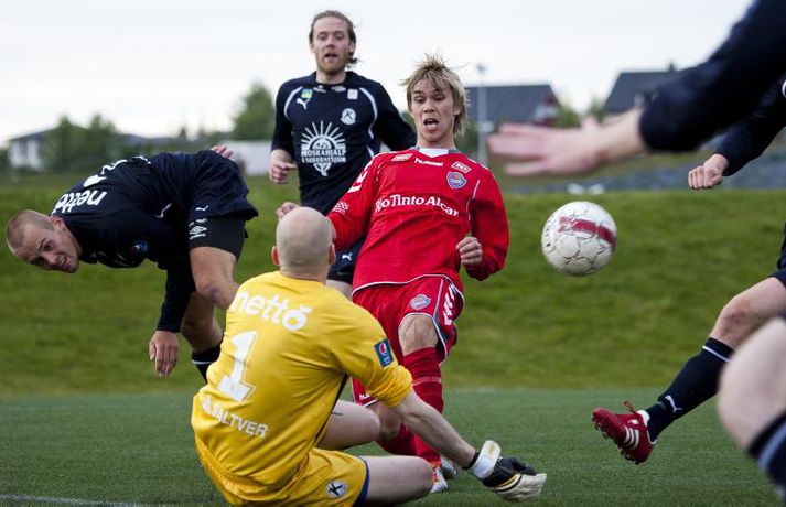 Keflavík skellti Haukum - myndir Henry Birgir Gunnarsson skrifar 21. júní 2011 07:00 Mynd/HAG Keflavík komst í átta liða úrslit Valitor-bikarkeppninnar í gærkvöld er strákarnir úr Bítlabænum skelltu Haukum á gervigrasinu í Hafnarfirði. Haraldur Guðjónsson, ljósmyndari Fréttablaðsins og Vísis, var á vellinum og myndaði átökum. Afraksturinn má sjá í albúminu hér að neðan. Íslenski boltinn Skroll-Íþróttir Mest lesið Sjáðu brot af því besta úr enska boltanum í dag Fótbolti „Gott að við gátum verið liðið sem kláraði þetta“ Körfubolti Erfitt kvöld fyrir Ármann og Tindastól Körfubolti Dagskráin í dag: Enski boltinn og margt fleira Sport Juventus landaði sigri í fyrsta leik Spalletti Fótbolti Ótrúleg varnartölfræði Arsenal í október Fótbolti Kærastan tók eftir því að eitthvað var að Handbolti Tvöföld tvenna Tryggva í tæpu tapi Körfubolti Liverpool loks á sigurbraut á ný Enski boltinn Harma rasíska og transfóbíska grein liðsfélaga Sveindísar Fótbolti Fleiri fréttir Pablo og Óskar Örn inn í þjálfarateymi Hauka FH-ingar kveðja Kjartan Henry Tölur úr Bestu: Bjartur Bjarmi fór í flestar tæklingar af öllum Gísli semur við Skagamenn Óskar Smári tekur við Stjörnunni Bretinn ráðinn tæknilegur ráðgjafi hjá Val Fram þvertekur fyrir metnaðarleysi og leitar að nýjum þjálfurum Tölur úr Bestu: Hallgrímur Mar bjó til langflest færi „Mjög sáttur með samninginn“ „Hefði séð eftir því alla ævi“ Magnús Már í viðræðum við HK Uppgjörið: Ísland - Norður-Írland 3-0 | Áfram hluti af elítunni Tölur úr Bestu 2025: Klúðraði langflestum dauðafærum í sumar FH bíður með að tilkynna nýjan þjálfara Óskar Hrafn fer ekki fet Birnir frá Akureyri í Garðabæ Hættir með Fram Heimir kynntur til leiks í Árbænum Túfa rekinn frá Val Leyndarmáli ljóstrað upp þegar Heimir og Björn kvöddu Leikmenn kusu Patrick og Guðmund Sjáðu bananabombu Antons Loga og önnur síðustu mörk tímabilsins Uppgjörið: Stjarnan - Breiðablik 2-3 | Stjarnan í Evrópu þrátt fyrir tap „Held að ég geti ekki gert mikið meira“ Uppgjörið: Vestri - KR 1-5 | KR bjargaði sér og sendi Vestra í Lengjudeildina Uppgjörið: ÍA - Afturelding 1-0 | Afturelding staldraði stutt við í efstu deild Uppgjörið: Víkingur - Valur 2-0 | Meistararnir klára tímabilið með stæl Uppgjörið: ÍBV - KA 3-4 | KA tryggði sér Forsetabikarinn þriðja árið í röð Ráðast örlög Aftureldingar inni í höll? „Þetta verður bara veisla fyrir vestan“ Sjá meira