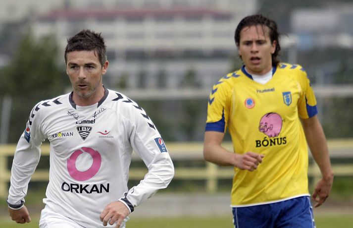 ÍBV skreið í undanúrslit - myndir Henry Birgir Gunnarsson skrifar 4. júlí 2011 06:00 Mynd/Vilhelm Pepsi-deildarlið ÍBV vann nauman sigur á 1. deildarliði Fjölnis, 1-2, er liðin mættust í átta liða úrslitum Valitor-bikars karla í Grafarvoginum í gær. Vilhelm Gunnarsson, ljósmyndari Fréttablaðsins og Vísis, var á vellinum og myndaði hasarinn í rigningunni. Afraksturinn má sjá í albúminu hér að neðan. Pepsi Max-deild karla Skroll-Íþróttir Mest lesið Sjáðu brot af því besta úr enska boltanum í dag Fótbolti „Gott að við gátum verið liðið sem kláraði þetta“ Körfubolti Erfitt kvöld fyrir Ármann og Tindastól Körfubolti Dagskráin í dag: Enski boltinn og margt fleira Sport Juventus landaði sigri í fyrsta leik Spalletti Fótbolti Ótrúleg varnartölfræði Arsenal í október Fótbolti Kærastan tók eftir því að eitthvað var að Handbolti Tvöföld tvenna Tryggva í tæpu tapi Körfubolti Liverpool loks á sigurbraut á ný Enski boltinn Harma rasíska og transfóbíska grein liðsfélaga Sveindísar Fótbolti Fleiri fréttir Pablo og Óskar Örn inn í þjálfarateymi Hauka FH-ingar kveðja Kjartan Henry Tölur úr Bestu: Bjartur Bjarmi fór í flestar tæklingar af öllum Gísli semur við Skagamenn Óskar Smári tekur við Stjörnunni Bretinn ráðinn tæknilegur ráðgjafi hjá Val Fram þvertekur fyrir metnaðarleysi og leitar að nýjum þjálfurum Tölur úr Bestu: Hallgrímur Mar bjó til langflest færi „Mjög sáttur með samninginn“ „Hefði séð eftir því alla ævi“ Magnús Már í viðræðum við HK Uppgjörið: Ísland - Norður-Írland 3-0 | Áfram hluti af elítunni Tölur úr Bestu 2025: Klúðraði langflestum dauðafærum í sumar FH bíður með að tilkynna nýjan þjálfara Óskar Hrafn fer ekki fet Birnir frá Akureyri í Garðabæ Hættir með Fram Heimir kynntur til leiks í Árbænum Túfa rekinn frá Val Leyndarmáli ljóstrað upp þegar Heimir og Björn kvöddu Leikmenn kusu Patrick og Guðmund Sjáðu bananabombu Antons Loga og önnur síðustu mörk tímabilsins Uppgjörið: Stjarnan - Breiðablik 2-3 | Stjarnan í Evrópu þrátt fyrir tap „Held að ég geti ekki gert mikið meira“ Uppgjörið: Vestri - KR 1-5 | KR bjargaði sér og sendi Vestra í Lengjudeildina Uppgjörið: ÍA - Afturelding 1-0 | Afturelding staldraði stutt við í efstu deild Uppgjörið: Víkingur - Valur 2-0 | Meistararnir klára tímabilið með stæl Uppgjörið: ÍBV - KA 3-4 | KA tryggði sér Forsetabikarinn þriðja árið í röð Ráðast örlög Aftureldingar inni í höll? „Þetta verður bara veisla fyrir vestan“ Sjá meira