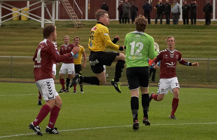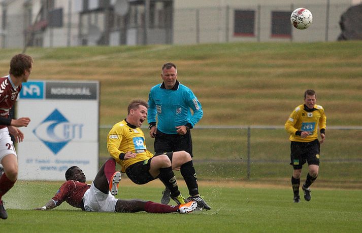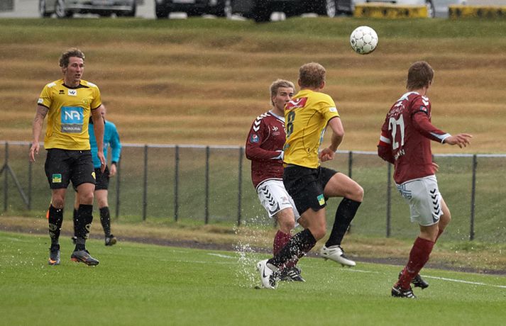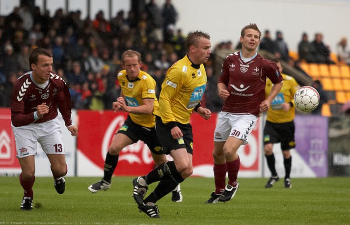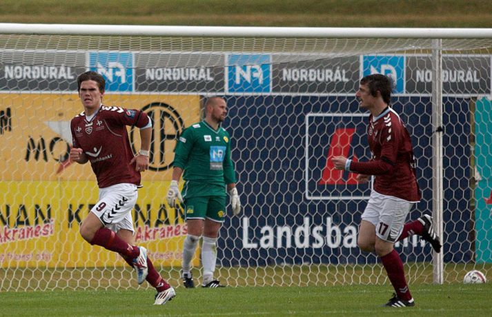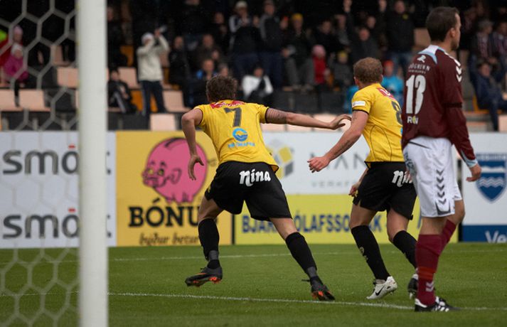 Skagamenn unnu sinn tíunda leik í röð í 1. deild karla í gær þegar þeir unnu 2-1 sigur á Selfossi í toppslag deildarinnar. ÍA-liðið hefur náð í 40 stig af 42 mögulegum í fyrstu fjórtán leikjum sínum í sumar. Mark Doninger skoraði sigurmark ÍA beint úr aukaspyrnu í blálok leiksins en með þessum sigri náðu Skagamenn tólf stiga forskoti á Selfoss í 2. sætinu og ennfremur 19 stiga forskoti á Hauka sem eru í 3. sætinu. Guðmundur Bjarki Halldórsson, ljósmyndari Fréttablaðsins og Vísis, var á leiknum á Akranesi í gærkvöldi og náði þessum skemmtilegu myndum. Myndirnar má sjá í albúminu hér að neðan. Hægt er að sjá myndirnar stærri með því að smella á þær.Guðmundur Bjarki Halldórsson