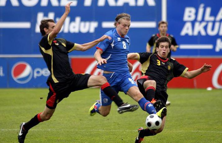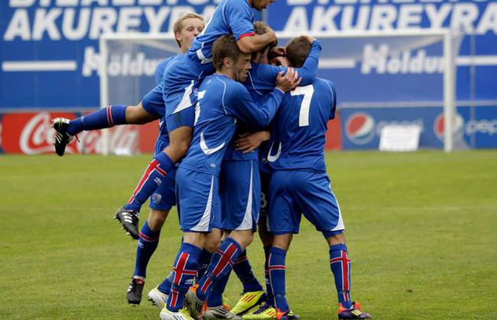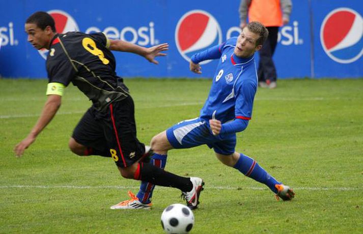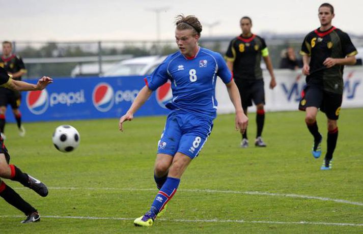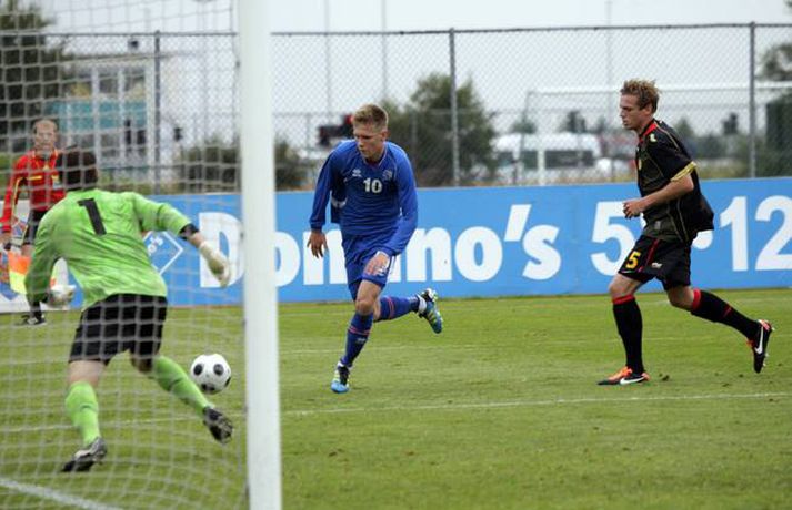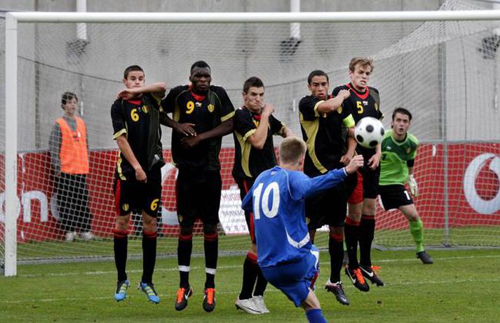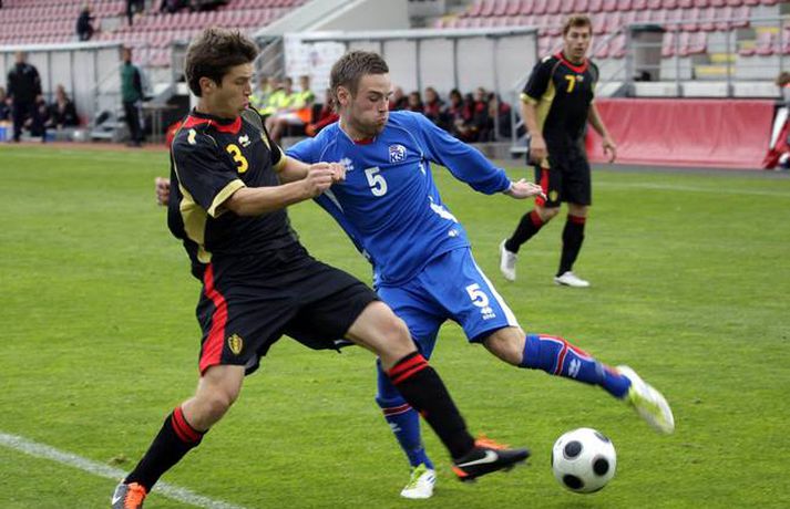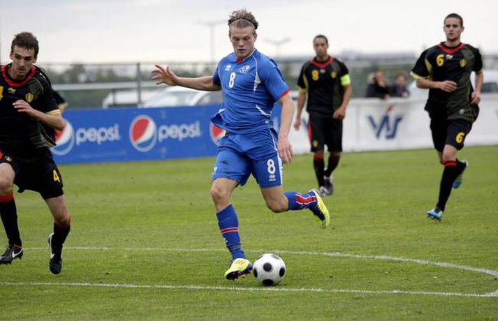 Íslenska 21 árs landsliðið hóf undankeppni EM 2013 með góðum sigri á Belgíu á Hlíðarenda í gær en Eyjólfur Sverrisson þjálfari íslenska liðsins var í leikbanni og sat í stúkunni á Vodafone-vellinum. Eyjólfur tók út leikbann þar sem að hann fékk rautt spjald í lokaleik íslenska liðsins á úrslitakeppni EM í Danmörku fyrr í sumar. Staðan var 0-0 þegar Eyjólfur var rekinn upp í stúku á 52. mínútu á móti Dönum en íslensku strákarnir unnu leikinn síðan 3-1. Tómas Ingi Tómasson stýrði íslenska liðinu síðustu 38 mínúturnar á móti Dönum og hann var líka við stjórnvölinn á móti Belgum í gær. Björn Bergmann Sigurðarson var maðurinn á bak við sigur íslenska liðsins því hann skoraði bæði mörkin í leiknum. Vilhelm Gunnarsson, ljósmyndari Fréttablaðsins og Vísis, var á leiknum í Vodafonevellinum í gærkvöldi og náði þessum skemmtilegu myndum. Myndirnar má sjá í albúminu hér að neðan. Hægt er að sjá myndirnar stærri með því að smella á þær.Mynd/Vilhelm