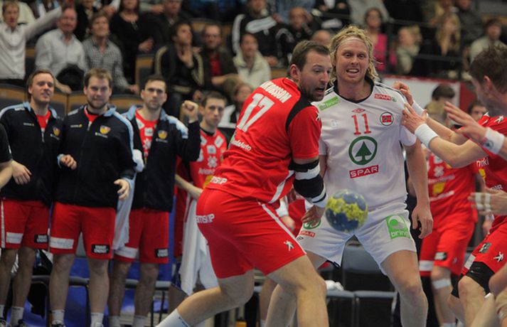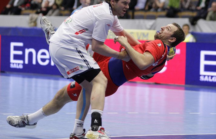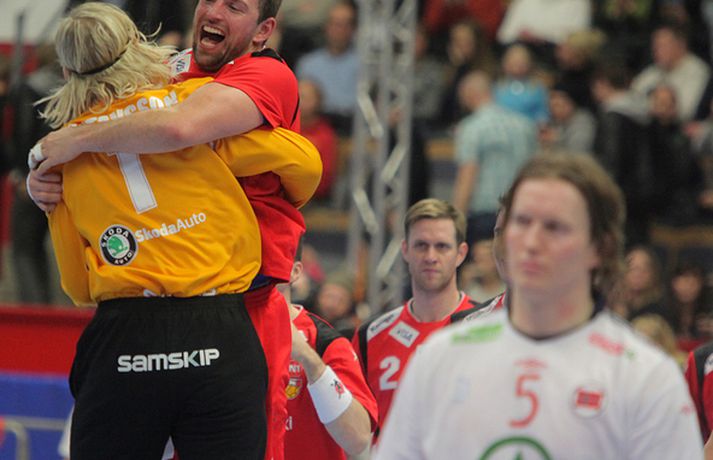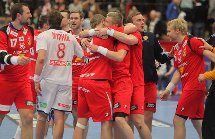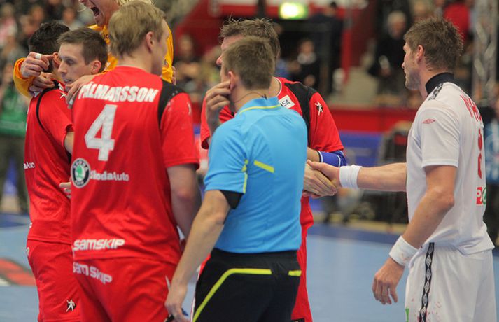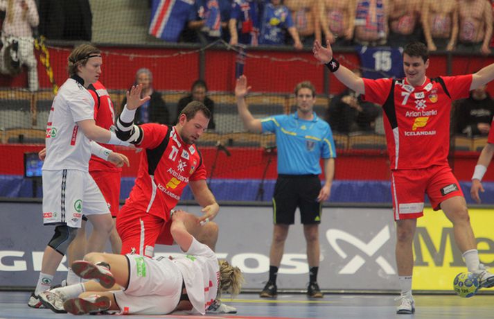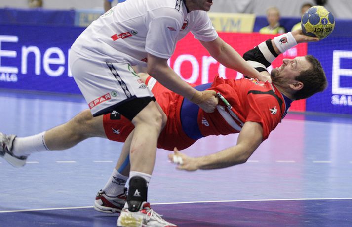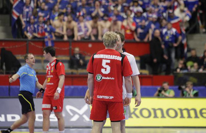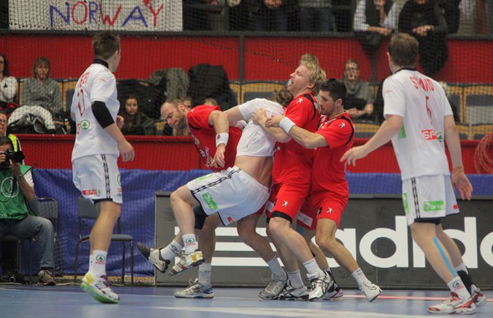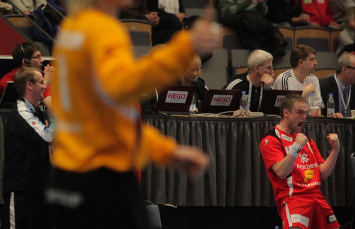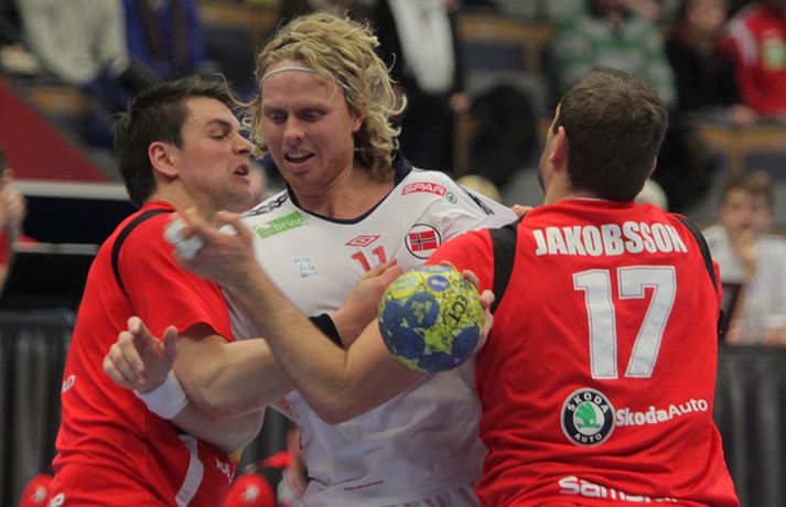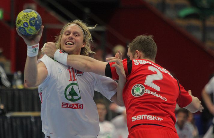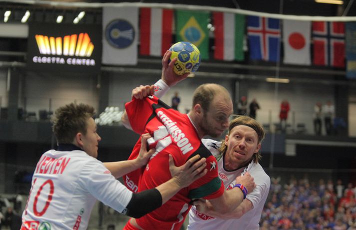 Risamyndasyrpa úr leik Íslands og Noregs Eiríkur Stefán Ásgeirsson skrifar 21. janúar 2011 14:00 Ísland vann í gær stórglæsilegan sjö marka sigur á Noregi, 29-22, á HM í handbolta í Svíþjóð. Leikurinn var í lokaumferð riðlakeppninnar en Ísland vann alla sína leiki í B-riðli og fer því með flest möguleg stig með sér í milliriðlakeppnina. Ísland leikur í milliriðli 1 sem fer fram í Jönköping og mætir Þýskalandi á morgun. Stemningin á leiknum í gær var mögnuð og var Valgarður Gíslason, ljósmyndari Vísis og Fréttablaðsins, með myndavélina á lofti allan leikinn og gott betur. Myndirnar hans má sjá með því að smella á hlekkinn hér fyrir neðan. Alexander Petersson fagnar eftir leik.Mynd/Valli Scroll-HM2011 Skroll-Íþróttir Mest lesið Þjálfari sem mætti Víkingi í fyrra lést í miðjum leik Fótbolti Lýsir eftir leiðtoga íslenska landsliðsins Handbolti Þjálfaragoðsögn látin taka pokann sinn: „Ég er undrandi“ Fótbolti Ísland lenti í algjörum martraðarriðli Fótbolti „Í ástarsorg er gott að finna sér nýja ást sem fyrst“ Íslenski boltinn Björgvin Páll hafi þaggað niður í efasemdaröddum Handbolti Ronaldo kveðst vera betri en Messi: „Vil ekki vera hógvær“ Fótbolti Of kalt til að Ísland geti mætt Noregi og Svíþjóð Fótbolti Umboðsmaður hótaði leikmanni með byssu Fótbolti Hverjir eru bestu ungu strákarnir í Bónus-deildinni? Körfubolti Fleiri fréttir Bikarmeistararnir fara norður Björgvin Páll hafi þaggað niður í efasemdaröddum Lýsir eftir leiðtoga íslenska landsliðsins Alfreð klæddist kvennatreyjunni á leiknum við Ísland Forðuðu sér frá bráðsmitandi óléttu í Fram Dönsk landsliðskona eignaðist barn tólf vikum fyrir tímann Uppgjörið: Þýskaland - Ísland 29-31 | Svöruðu skellinum með frábærum sigri Kærastan tók eftir því að eitthvað var að KA/Þór gerði jafntefli við botnliðið Valskonur unnu 24 marka sigur og ÍR upp í annað sætið „Fannst þetta verða svartara og svartara“ Alfreð hissa: Veit að Íslendingar geta mun betur Andri kallaður inn í hópinn fyrir meiddan Hauk Arnór Snær snýr aftur heim Besta handboltadeild heims missir aðalstyrktaraðila sinn Grafalvarleg staða: „Þurfum að fara í sársaukafullar aðgerðir“ ÍR áfram eftir sigur í Mosfellsbæ Uppgjörið: Þýskaland - Ísland 42-31 | Þrot í Þýskalandi Tilkynnti um óléttu og nýjan samning á sama tíma Patrekur hættur eftir dapurt gengi Stjörnunnar Rekinn fyrir ummæli sín um krabbameinssjúka handboltagoðsögn Janus Daði myndaður í heimsókn hjá Barcelona Epicbet sýni handboltann í leyfisleysi: „Enda ólöglegar síður“ Teitur inn í landsliðið Gísli bjó til meira en þriðjung markanna Haukur magnaður í sigri Löwen Blær skoraði þrjú og lagði upp jöfnunarmarkið KA/Þór sótti sigur gegn Fram og stigalausar Stjörnukonur Fram kjöldró HK og spenna í Eyjum Meistararnir unnu gegn ÍBV og ÍR hafði betur gegn Selfyssingum Sjá meira
