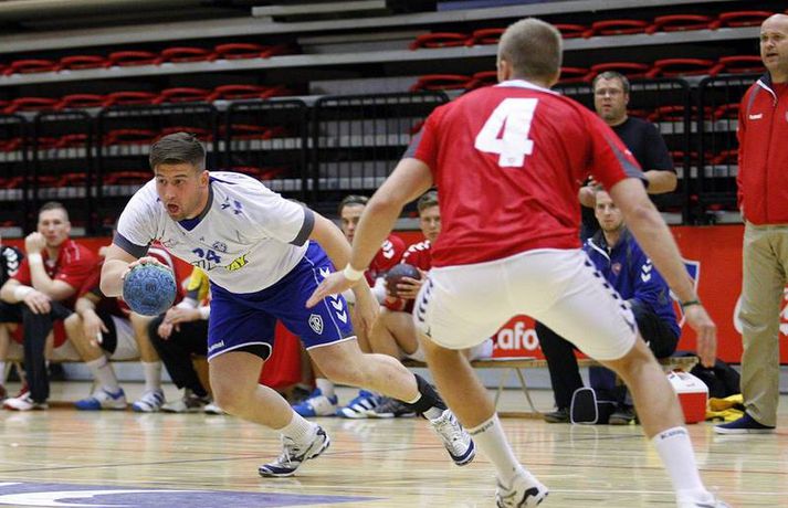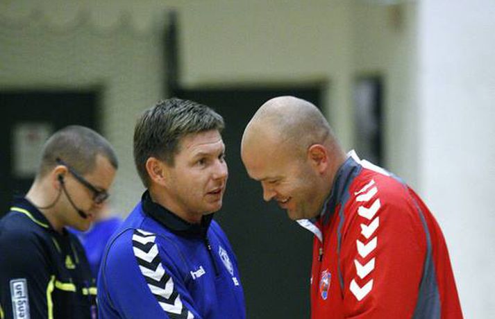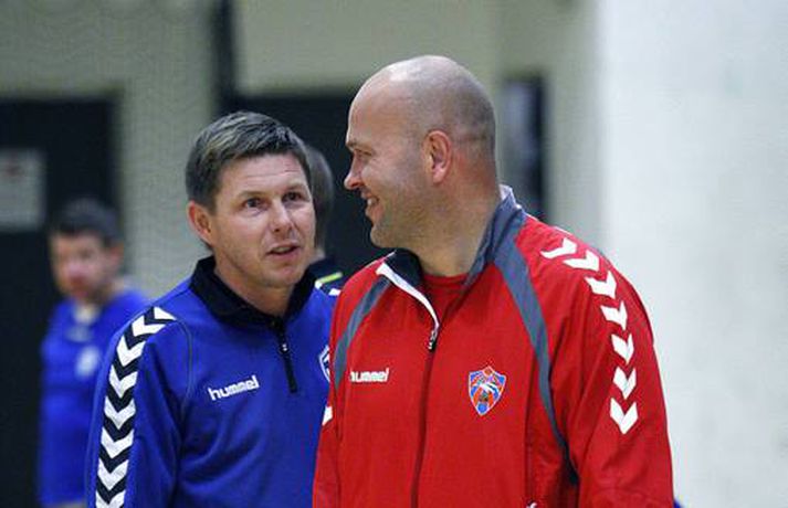 Bjarki hafði betur gegn Patreki í kvöld - myndir Óskar Ófeigur Jónsson skrifar 13. september 2012 22:15 Mynd/Stefán Landsliðsgoðsagnirnar Bjarki Sigurðsson og Patrekur Jóhannesson mættust í kvöld með lið sín í óopinberum úrslitaleik Reykjavíkurmóts karla í handbolta. Strákarnir hans Bjarka í ÍR höfðu betur í leiknum en þeir unnu Val 26-22 og tryggðu sér Reykjavíkurmeistaratitilinn. Bjarki fór með ÍR-liðið upp úr 1. deildinni í vor og liðið er til alls líklegt í vetur enda búið að endurheimta marga uppalda ÍR-inga sem hafa spilað með öðrum félögum undanfarin ár. ÍR vann alla leiki sína í Reykjavíkurmótinu í ár og er því Reykjavíkurmeistari í fyrsta sinn í mörg ár. Tveir af týndu sonunum voru markahæstir í leiknum því Sturla Ásgeirsson skoraði 12 mörk og Björgvin Þór Hólmgeirsson var með 5 mörk. Stefán Karlsson, ljósmyndari Fréttablaðsins og Vísis, var á leik Vals og ÍR í Vodafone-höllinni í kvöld og náði þessum skemmtilegu myndum. Myndirnar má sjá í albúminu hér að neðan. Hægt er að sjá myndirnar stærri með því að smella á þær. Olís-deild karla Mest lesið Vonast til að komast í Kórinn: „Menn hafa aldrei séð annað eins“ Fótbolti Landsleiknum aflýst og framhaldið óljóst Fótbolti Fær þrjár milljónir á dag næstu sex árin fyrir að gera ekkert Sport Stöðufundur í Laugardal klukkan 10:30 Fótbolti Enska úrvalsdeildin í jólaköttinn Enski boltinn Elsta konan til klára Járnkarlinn Sport Markvörður Inter banaði háöldruðum manni í hjólastól Sport Landsliðskonur aðstoðuðu ökumenn í vanda Fótbolti Segir að Slot verði að taka tvo leikmenn út úr Liverpool-liðinu Enski boltinn Nýi íþróttastjóri Kjartans stal mörgæs og endaði í fangelsi í Singapúr Fótbolti Fleiri fréttir Teitur inn í landsliðið Gísli bjó til meira en þriðjung markanna Haukur magnaður í sigri Löwen Blær skoraði þrjú og lagði upp jöfnunarmarkið KA/Þór sótti sigur gegn Fram og stigalausar Stjörnukonur Fram kjöldró HK og spenna í Eyjum Meistararnir unnu gegn ÍBV og ÍR hafði betur gegn Selfyssingum Donni og félagar björguðu stigi undir lokin Afturelding komst upp að hlið Hauka Seldu bleika búninginn hennar Herrem fyrir meira en milljón „Leið vel þegar ég fór inn úr færinu“ Uppgjörið FH - Haukar 27-26 | Birgir Már tryggði FH sigur eftir spennutrylli Bernard fór mikinn en Valsmenn sluppu með sigurinn Fyrsti sigur Þórsara síðan í byrjun september Ómar Ingi með fullkomnan leik í Meistaradeildinni Guðjón Valur og lærisveinar hársbreidd frá því að vinna Kiel Hlakka til að sjá Viktor Gísla aftur og senda honum skilaboð Neyddar í sömu stöðu og Ísland og límdu melónur á skóna Hatar hvítu stuttbuxurnar Fjölga stórmótum landsliða í handboltanum Allt jafnt í bikarslag íslensku stelpnanna Orri fagnaði í Íslendingaslag í Meistaradeildinni Hjartavandamál halda Reyni frá keppni Stórar breytingar á Evrópukeppnum í handbolta Framarar töpuðu aftur á heimavelli í Evrópudeildinni Magdeburg komst örugglega áfram í sextán liða úrslitin Íslensku strákarnir áberandi í Evrópudeildinni „Stærri og sterkari en liðin sem við þekkjum hérna heima“ Viktor til liðs við frænda sinn og bróður Uppgjörið: Portúgal - Ísland 26-25 | Annar eltingaleikur íslenska liðsins endar með öðru tapi Sjá meira