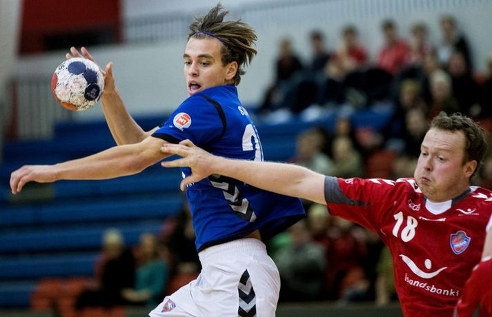 Umfjöllun og viðtöl: Haukar - Valur 28-23 | Haukar enn ósigraðir Kolbeinn Tumi Daðason í Schenker-höllinni skrifar 21. október 2012 16:30 Mynd/Vilhelm Haukar unnu öruggan heimasigur á Valsmönnum í N1-deild karla í handbolta í dag. Haukar höfðu frumkvæðið frá upphafi til enda og unnu fimm marka sigur 28-23. Hafnfirðingar eru enn ósigraðir í deildinni í vetur. Haukar mættu betur stemmdir á heimavelli sínum í kvöld. Fjögur mörk í röð breyttu stöðunni úr 3-3 í 7-3 og var Patrekur Jóhannesson, þjálfari Vals, skiljanlega áhyggjufullur og tók leikhlé. Valsmenn löguðu stöðuna í 9-8 og fengu tækifæri til að jafna leikinn en tókst ekki og Haukar tóku frumkvæðið á ný. Innkoma Litháans Giedrius Morkunas í mark heimamanna hafði sitt að segja en Aron Rafn Eðvarsson hafði aðeins varið eitt skot á fyrsta stundarfjórðungnum. Frábært mark Atla Márs Bárusonar á síðustu sekúndu fyrri hálfleiksins gaf Valsmönnum ástæðu til að fara fagnandi til búningsherbergja fjórum mörkum undir, 15-11. Markverðir Valsmanna vilja væntanlega gleyma fyrri hálfleiknum sem fyrst. Lárus Helgi varði tvö skot og Hlynur Morthens ekkert. Gestirnir af Hlíðarenda skoruðu fyrstu tvö mörk síðari hálfleiksins en nær komust þeir ekki. Haukar héldu Valsmönnum í hæfilegri fjarlægð allt til loka og unnu fimm marka sigur, 28-23. Árni Steinn Steinþórsson og Stefán Rafn Sigurmannsson skoruðu sjö mörk hvor fyrir heimamenn en fimm marks Stefáns Rafns komu úr vítum. Hjá gestunum skoruðu Gunnar Malmquist og Finnur Ingi Stefánsson fimm mörk hvor. Haukar halda toppsætinu, hafa níu stig eftir fimm leiki. Valsmenn sitja áfram í 6. sæti deildarinnar með þrjú stig. Patrekur Jóhannesson: Stjórn Vals sýnir hugrekki„Maður er alltaf svekktur að tapa. Við komum hingað til þess að vinna. Þó svo að við höfum ekki verið sigurstranglegri fyrir leikinn er maður pínusvekktur að hafa ekki náð betri leik," sagði Patrekur Jóhannesson þjálfari Vals. Valsmenn töpuðu nokkuð mörgum boltum í sókninni sem hjálpuðu ekki til þegar liðið reyndi að vinna upp forskot heimamanna. „Ef þú greinir liðið sem við erum með þá eru margir að stíga sín fyrstu skref í fullorðinsbolta. Það er eðlilegt að það komi smá skjálfti í menn. Það komu kaflar inni á milli þar sem við vorum að spila ágætlega en svo líka kaflar þar sem var ákveðið vonleysi. Það er eitthvað sem verður örugglega í vetur hjá svona glænýju liði," segir Patrekur sem minnti enn frekar á litla reynslu sinna manna. „Það sem er jákvætt er að við erum að spila á mörgum gæjum úr öðrum og þriðja flokki. Það eru ekki mörg lið sem eru að gera það í dag. Haukaliðið er ótrúlega vel mannað og margir sem sitja bara. Þetta er erfiður fasi en ef maður lítur á þá leikmenn sem eru að spila er stjórn Vals að sýna ákveðið hugrekki. Það er mitt að vinna úr því." Patrekur var ánægður með varnarleik sinna manna en ekki markvörsluna. Hlynur og Lárus vörðu samanlagt átta skot í leiknum. „Bubbi (innsk: Hlynur) og Lárus í markinu hafa verið sterkir en áttu ekki góðan dag. Vinnslan í vörninni var mjög góð. Haukarnir skoruðu mikið úr hraðaupphlaupum þ.a. það var frekar sóknin sem klikkaði." Aron Kristjánsson: Vil að Aron standi framar í markinu„Við þurftum að hafa fyrir þessu," sagði Aron Kristjánsson þjálfari Hauka ánægður með sigur sinna manna, „Þegar við vorum komnir með þokkalegt forskot náðu þeir að spila lengi á okkur, lauma inn marki. Við hefðum þurft einn til tvo bolta í viðbót frá markvörðunum til að ná þægilegra forskoti í fyrri hálfleik," sagði Aron sem telur Aron Rafn, markvörð liðsins, geta betur. „Aron (Rafn) og Birkir Ívar voru sterkir í fyrra. Aron hefur átt mjög góða leiki inn á milli í vetur en þess á milli dottið aðeins niður. Átti fínan fyrri leik í Evrópukeppninni en sá síðari var nokkuð slakur. Auðvitað vil ég sjá hann beittari og standa jafnvel aðeins framar í markinu," sagði Aron sem fannst hans menn missa einbeitingu í síðari hálfleiknum. „Mér fannst við slaka aðeins á klónni þegar við vorum komnir með sjö marka forskot í seinni hálfleik. Það gerði að að verkum að við þurftum að hafa aðeins meira fyrir þessu síðustu tíu mínúturnar en við hefðum þurft." Þrátt fyrir að Valsmenn hafi hangið í Haukum lengi vel virtist sigurinn aldrei í hættu. „Nei, ég hafði aldrei áhyggjur en var þó aldrei rólegur. Maður verður að halda mönnum á tánum og mér fannst menn vera að berjast fyrir þessu," sagði Aron. Olís-deild karla Mest lesið Vonast til að komast í Kórinn: „Menn hafa aldrei séð annað eins“ Fótbolti Fær þrjár milljónir á dag næstu sex árin fyrir að gera ekkert Sport Stöðufundur í Laugardal klukkan 10:30 Fótbolti Enska úrvalsdeildin í jólaköttinn Enski boltinn Elsta konan til klára Járnkarlinn Sport Markvörður Inter banaði háöldruðum manni í hjólastól Sport Nýi íþróttastjóri Kjartans stal mörgæs og endaði í fangelsi í Singapúr Fótbolti Landsleiknum aflýst og framhaldið óljóst Fótbolti Brendan Rodgers sagði starfinu sínu lausu eftir ásakanir Fótbolti Tyrkneska sambandið segir dómara hafa veðjað á þúsundir leikja Fótbolti Fleiri fréttir Gísli bjó til meira en þriðjung markanna Haukur magnaður í sigri Löwen Blær skoraði þrjú og lagði upp jöfnunarmarkið KA/Þór sótti sigur gegn Fram og stigalausar Stjörnukonur Fram kjöldró HK og spenna í Eyjum Meistararnir unnu gegn ÍBV og ÍR hafði betur gegn Selfyssingum Donni og félagar björguðu stigi undir lokin Afturelding komst upp að hlið Hauka Seldu bleika búninginn hennar Herrem fyrir meira en milljón „Leið vel þegar ég fór inn úr færinu“ Uppgjörið FH - Hauka