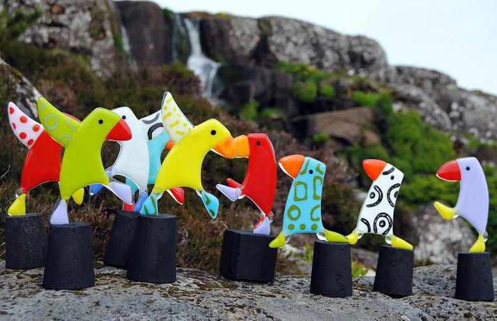 Færeyska listakonan Mikkalína Norðberg býr til litskrúðug glerverk sem vekja gleði. Hún er á leið til Íslands um næstu helgi á Vetrarhátíð í höfuðborginni. „Í draumum mínum hef ég skapað litaglöð glerverk frá því ég var unglingur en í veruleikanum eru það bara fjögur ár, fjögur yndisleg og ævintýraleg ár. Glerið mitt hefur fengið góðar viðtökur frá fyrsta degi og það hefur gefið mér möguleika á að gera listsköpunina að fullu starfi og þróa bæði tækni og hugmyndir," segir hin færeyska Mikkalína Norðberg glerlistakona, sem er fædd og búsett í höfuðstað eyjanna, Þórshöfn. Hugmyndirnar kveðst Mikkalína fá úr hinni færeysku náttúru, veðrinu, fuglunum og glerinu sjálfu. „Allt sem gerist í kringum mig hefur áhrif og svo bæti ég húmor og litum við. Oftast fæ ég hugmynd að næsta verki áður en ég hef lokið því sem ég er með." Mikkalína hefur sýnt verk sína á Art Copenhagen í samvinnu við Listagluggann í Þórshöfn, á árlegri Ólafsvökusýningu í Listaskálanum í Þórshöfn og í Gallerí Uggerby í Lönstrup í Danmörku. „Ég tilheyri hópi fimm kjarnorkukvenna sem kalla sig Fimm feitar flugur og heldur árlega sölusýningu. Stór verk sel ég í verkstæðinu mínu í Þórshöfn og Gallerí Uggerby í Lönstrup, auk þess að taka við pöntunum gegnum heimasíðuna mikkalina.com en smærri hlutir fást í Norræna húsinu í Þórshöfn og flugstöðinni í Vogi."Mikkalína Norðberg.Mikkalína kemur í fyrsta sinn til Íslands nú um helgina í skemmtiferð með vinum sínum. „Faðir minn var sjómaður við Ísland og hrósaði landi og þjóð í hástert. Ég veit líka að mikið er að gerast á Íslandi í hönnun og listum og það eykur áhuga minn á að heimsækja landið, aka og ganga, kíkja, þefa, smakka, hreyfa við – og vonandi smitast af kraftinum sem þar er að finna. Við höfum lokkað með okkur nokkra vini frá Kaupmannahöfn. Í stað þess að heimsækja hvert annað þá höfum við öll sett stefnuna á Ísland. Það skal verða gaman, hvernig sem veðrið verður. Ég elska allar árstíðir og Ísland er örugglega spennandi að vetri til fyrir manneskju eins og mig." gun@frettabladid.is