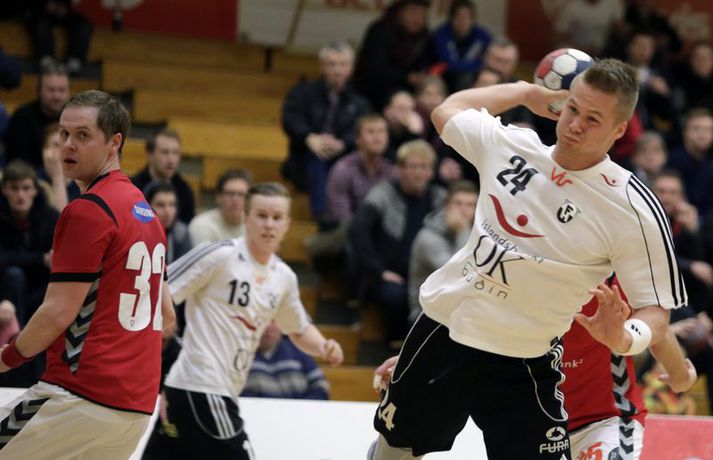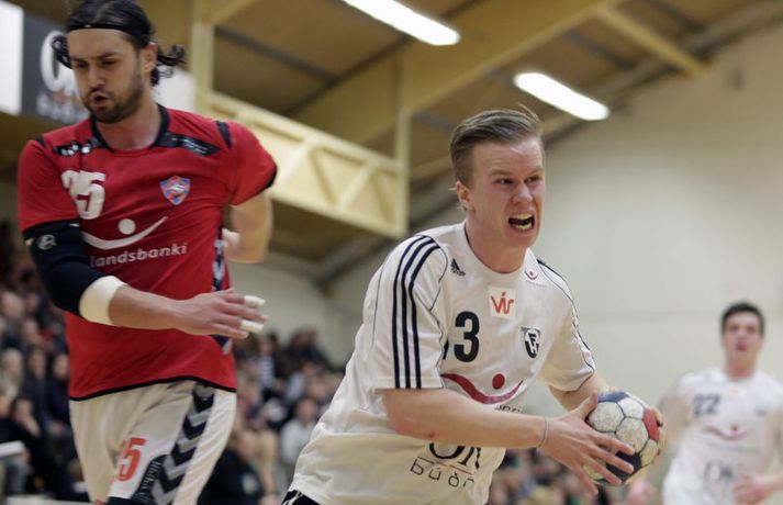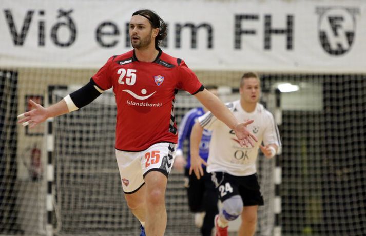 Umfjöllun, viðtöl og myndir: FH - Valur 21-20 Stefán Árni Pálsson skrifar 17. febrúar 2013 00:01 FH vann flottan sigur, 21-20, á Val í æsispennandi leik í N1-deild karla í handknattleik en leikurinn fór fram í Kaplakrika. Logi Geirsson var atkvæðamestur í liði FH með sex mörk. Jafnræði var á með liðunum til að byrja með en heimamenn í FH ávallt einu skrefi á undan. Valsmenn voru samt sem áður gríðarlega ákveðir og fastir fyrir í varnarleiknum. Þegar hálfleikurinn var hálfnaður var staðan 4-4. Þá misstu Valsmenn tvö menn útaf með tveggja mínútna brotvísanir og voru því fjórir útispilarar gegn sex en á þeim kafla náðu FH-ingar þriggja marka forystu 7-4. Valsmenn komust aftur inn í leikinn og var staðan 9-8 í hálfleik. Valsmenn gerðu tvö fyrstu mörk síðari hálfleiksins en þá komu fjögur í röð frá FH og þeir breyttu stöðunni í 13-10. FH-ingar voru sterkari næstu tíu mínútur leiksins og voru ávallt skrefinu á undan. Valsmenn voru samt alltaf ákveðnir og ætluðu greinilega að selja sig dýrt í leiknum. Þegar tólf mínútur voru eftir var staðan 16-16 og mikil spenna í leiknum. Því næst unnu Valsmenn boltann og Sveinn Aron Sveinsson skoraði úr hraðaupphlaupi. Staðan var orðin 17-16 fyrir gestina. FH-ingar hrukku þá í gang og komust í 19-18 þegar sjö mínútur voru eftir af leiknum. Spennan hélst áfram alveg fram til enda en það voru FH-ingar sem voru sterkari á lokasprettinum og unnu eins marks sigur 21-20. Þorbjörn Jensson: Handboltinn snýst ennþá um það sama„Þetta var ágætis leikur og mikið um sterkan varnarleik," sagði Þorbjörn Jensson, aðstoðarþjálfari Vals, eftir tapið í kvöld. „Það sem vantaði uppá hjá okkur var að nýta færin betur. Við fengum alveg heilan helling af góðum færum sem liðið var ekki að notfæra." „Við gerðum markvörðinn hjá FH bara góðan með því að skjóta svona mikið í hann. Varnarleikur okkar sem og markvarsla var til fyrirmyndar og ég hef engar áhyggjur af því, þurfum að bæta okkur sóknarlega núna." „Ég hef ekki verið neitt í kringum handbolta í 12 ár. Íþróttin hefur ekki mikið breyst á þeim tíma, þetta snýst ennþá um að skora fleiri mörk en andstæðingurinn og undirbúa sig fyrir hann." Hægt er að sjá myndband af viðtalinu hér að ofan. Logi Geirsson: Ég er að fara massa mig meira upp„Þetta var sannkallaður baráttusigur," sagði Logi Geirsson, eftir sigurinn í kvöld. „Valsmenn eru með gríðarlega sterkan hóp og við vissum að þetta yrði erfitt. Þetta hafðist samt í lokin og við náðum að knýja fram gríðarlega mikilvæg tvö stig fyrir úrslitakeppnina." „Við höfum alls ekkert verið að valta yfir andstæðinga okkar og lið ná oft á tíðum að halda í við okkar, en við erum alltaf að spila eftir sömu leikaðferð og höfum trú á henni. Liðið hefur verið á mikilli siglingu í deildinni að undanförnu og það mun bara halda áfram." „Ég er komin á fullt í lyftingasalinn og þarf að bæta aðeins á mig. Eftir á Ólafur Gústafsson fór frá liðinu er ég komin með nýtt hlutverk og þá verð ég heldur betur að standa mig."Hægt er að sjá myndband af viðtalinu með því að ýta hér. Olís-deild karla Mest lesið Bíll Shaquille O'Neal enn ófundinn Körfubolti Fluttu fréttir af snjónum í Reykjavík Fótbolti Búið að finna leiðina til að pirra og vinna Liverpool Enski boltinn Epicbet sýni handboltann í leyfisleysi: „Enda ólöglegar síður“ Handbolti Óskar Hrafn fer ekki fet Íslenski boltinn Sú leikjahæsta leggur skóna á hilluna og klárar læknanámið Fótbolti Sýknaður í alvarlegu ofbeldismáli Fótbolti Formaðurinn hjálpaði til við að moka völlinn Fótbolti Barnabarn Donalds Trump keppir á LPGA-mótaröðinni Golf Var með skattinn á hælunum þegar hann fór í veðmálabraskið Körfubolti Fleiri fréttir Epicbet sýni handboltann í leyfisleysi: „Enda ólöglegar síður“ Teitur inn í landsliðið Gísli bjó til meira en þriðjung markanna Haukur magnaður í sigri Löwen Blær skoraði þrjú og lagði upp jöfnunarmarkið KA/Þór sótti sigur gegn Fram og stigalausar Stjörnukonur Fram kjöldró HK og spenna í Eyjum Meistararnir unnu gegn ÍBV og ÍR hafði betur gegn Selfyssingum Donni og félagar björguðu stigi undir lokin Afturelding komst upp að hlið Hauka Seldu bleika búninginn hennar Herrem fyrir meira en milljón „Leið vel þegar ég fór inn úr færinu“ Uppgjörið FH - Haukar 27-26 | Birgir Már tryggði FH sigur eftir spennutrylli Bernard fór mikinn en Valsmenn sluppu með sigurinn Fyrsti sigur Þórsara síðan í byrjun september Ómar Ingi með fullkomnan leik í Meistaradeildinni Guðjón Valur og lærisveinar hársbreidd frá því að vinna Kiel Hlakka til að sjá Viktor Gísla aftur og senda honum skilaboð Neyddar í sömu stöðu og Ísland og límdu melónur á skóna Hatar hvítu stuttbuxurnar Fjölga stórmótum landsliða í handboltanum Allt jafnt í bikarslag íslensku stelpnanna Orri fagnaði í Íslendingaslag í Meistaradeildinni Hjartavandamál halda Reyni frá keppni Stórar breytingar á Evrópukeppnum í handbolta Framarar töpuðu aftur á heimavelli í Evrópudeildinni Magdeburg komst örugglega áfram í sextán liða úrslitin Íslensku strákarnir áberandi í Evrópudeildinni „Stærri og sterkari en liðin sem við þekkjum hérna heima“ Viktor til liðs við frænda sinn og bróður Sjá meira
