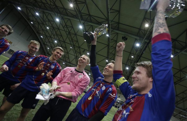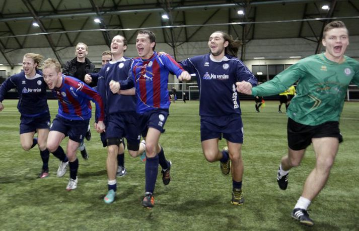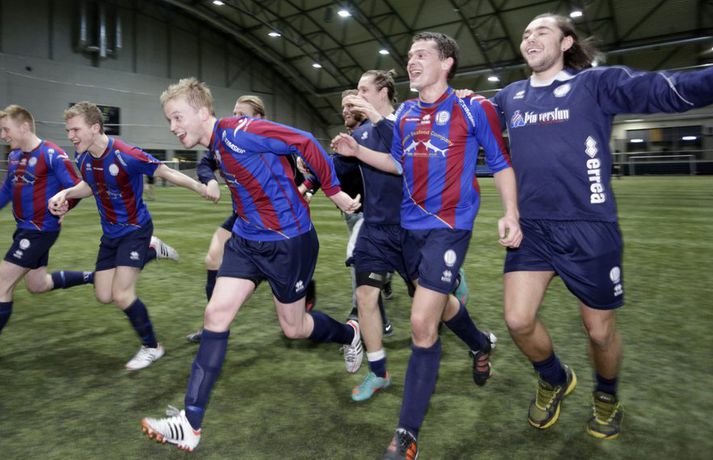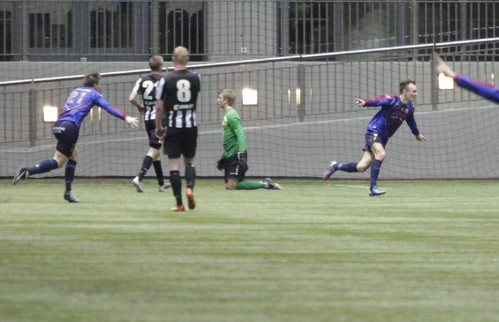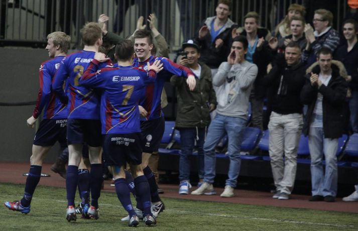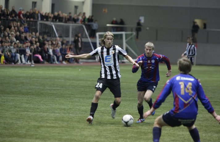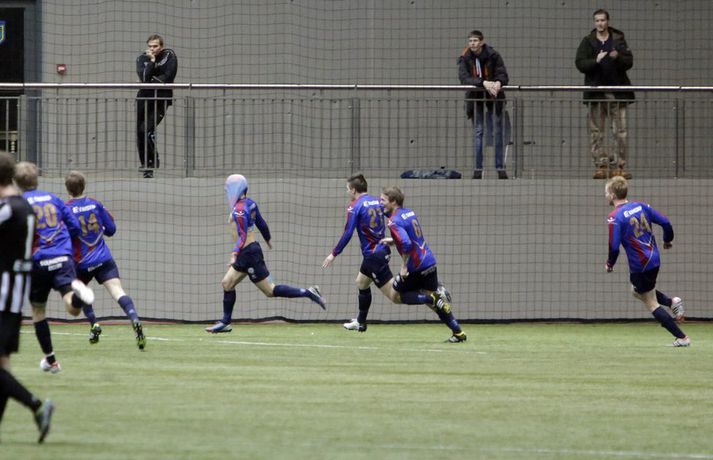 Leiknir Reykjavíkurmeistari eftir sigur á KR | Myndir Eiríkur Stefán Ásgeirsson skrifar 11. febrúar 2013 21:00 Myndir / Valgarður Gíslason Leiknir varð í kvöld Reykjavíkurmeistari karla í knattspyrnu eftir sigur á KR-ingum í úrslitaleik, 3-2. Leikurinn var fjörugur eins og tölurnar bera með sér en dómarinn Magnús Þórisson var mikið í sviðsljósinu í kvöld. Atli Sigurjónsson kom KR yfir í lok fyrri hálfleiks eftir undirbúning Gary Martin en Egill Atlason, fyrrum KR-ingur, jafnaði metin fyrir Leikni í upphafi þess síðari. Þá gerðist umdeilt atvik er Hannes Þór Halldórsson, markvörður KR, fékk að líta beint rautt spjald fyrir að brjóta á Ólafi Hrannari Kristjánssyni. Víti var dæmt og kom Hilmar Árni Halldórsson Leiknismönnum yfir. KR-ingar jöfnuðu svo metin úr annarri vítaspyrnu sem var dæmd á Brynjar Hlöðversson fyrir að handleika knöttinn innan teigs. Bjarni Guðjónsson var þar að verki. Allt útlit var fyrir að úrslit leiksins myndu ráðast í vítaspyrnukeppni en þá komust Leiknismenn í hættulega sókn. Henni lauk með því að Sævar Freyr Alexandersson skoraði með föstu skoti úr vítateignum, þar sem hann stóð einn og óvaldaður. Sævar Freyr hafði komið inn á sem varamaður í síðari hálfleik en hann er bróðir Freys Alexanderssonar, annars þjálfara Leiknis. Freyr hafði sjálfur fengið reisupassann hjá Magnúsi dómara fyrir að mótmæla dómgæslu. Þetta er í fyrsta sinn í sögu Leiknis sem félagið verður Reykjavíkurmeistari í knattspyrnu. Íslenski boltinn Mest lesið Grafalvarleg staða: „Þurfum að fara í sársaukafullar aðgerðir“ Handbolti Ógeðslega erfitt og ógeðslega vont en brosir oft í viku á eftir Sport Fram þvertekur fyrir metnaðarleysi og leitar að nýjum þjálfurum Íslenski boltinn „Nú er nóg komið“ Fótbolti Skortir Liverpool breidd þrátt fyrir gríðarleg fjárútlát síðasta sumar? Enski boltinn Nefna greinar Íslandsmótsins í CrossFit í höfuðið á íslenskum íþróttakonum Sport Arnór Snær snýr aftur heim Handbolti Besta handboltadeild heims missir aðalstyrktaraðila sinn Handbolti Sádar eru ekki að fara að byggja HM-leikvang ofan á skýjakljúfi Fótbolti Eldgos og brjósklos skapa óvissu: „Vonum bara að móðir náttúra leyfi þetta“ Sport Fleiri fréttir Mikilvægt fyrir United að hamra járnið meðan það er heitt Félagið í greiðslustöðvun en borgaði öll laun degi fyrr Bretinn ráðinn tæknilegur ráðgjafi hjá Val Fram þvertekur fyrir metnaðarleysi og leitar að nýjum þjálfurum Nýr þjálfari Juventus er með Napoli-húðflúr „Nú er nóg komið“ Skortir Liverpool breidd þrátt fyrir gríðarleg fjárútlát síðasta sumar? Sádar eru ekki að fara að byggja HM-leikvang ofan á skýjakljúfi Hetja Englands á EM sleit krossband Lofar frekari fjárfestingum Juventus ræður Spalletti út tímabilið Meistaradeildin skiptir um bjór og Heineken snýr sér að padel Aron Einar kominn á toppinn Tölur úr Bestu: Hallgrímur Mar bjó til langflest færi Fantasýn: „Þessi vörn er eitthvað skrímsli“ Scholes hættir og setur einhverfan son sinn í fyrsta sætið Rúmar tvær milljónir í boði ef þú finnur hundinn hans Aarons Ramsey Carrick í einkaviðtali: Sigurinn á Anfield stór stund fyrir Man. Utd Hefur spilað 16 mínútur og fengið tvö rauð spjöld Bættu Evrópumet AC Milan liðsins með Gullit og Van Basten innanborðs Slot: Engin auka pressa við þetta tap Real Madrid vill stórar skaðabætur frá UEFA „Mjög sáttur með samninginn“ „Hefði séð eftir því alla ævi“ Magnús Már í viðræðum við HK Bað alla nema þjálfarann afsökunar Vísar slúðrinu til föðurhúsanna Ísak Bergmann lagði upp gegn Bayern „Við tókum bara þá ákvörðun að fara í Svanavatnið“ Albert og Mikael Egill í vondum málum á Ítalíu Sjá meira