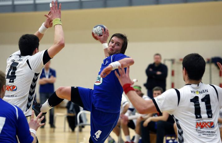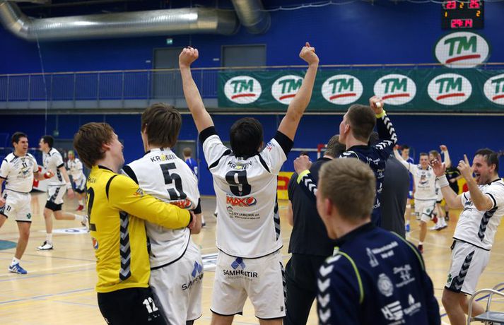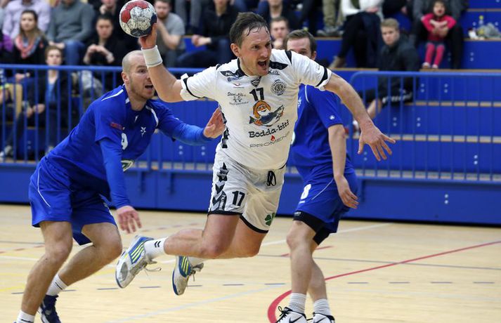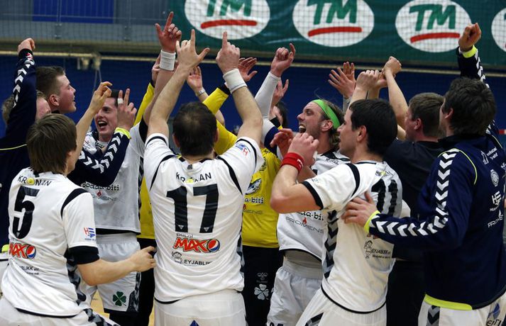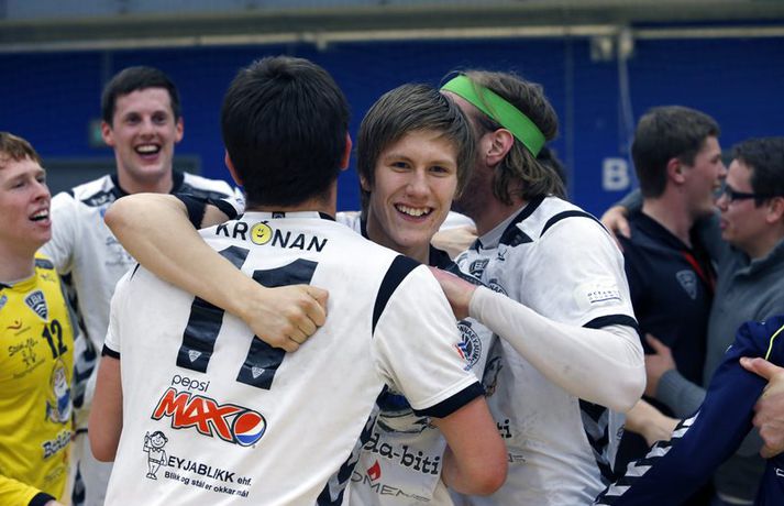 Umfjöllun, viðtöl og myndir: Stjarnan - ÍBV 24-27 | ÍBV fór upp Elvar Geir Magnússon í Mýrinni skrifar 18. mars 2013 20:45 Mynd/Stefán Eyjamenn tryggðu sér sigur í 1. deild karla í handbolta og sæti í N1 deild karla á næsta tímabili með öruggum þriggja marka sigri á Stjörnunni, 27-24, í Mýrinni í kvöld. Nemanja Malovic skoraði sex mörk í sínum síðasta leik með ÍBV á tímabilinu. ÍBV hefur sex stiga forskot á Stjörnuna þegar aðeins ein umferð er eftir. Stjarnan er í baráttunni við Víking um annað sætið sem gefur sæti í umspilsleikjum á móti næstneðsta liði N1 deildar karla. ÍBV gaf tóninn strax í upphafi leiks, komst í 3-0 og 6-1 og náði mest sjö marka forskot í fyrri hálfleiknum. Liðið spilaði frábæran vörn á þessum tímapunkti. Gunnar Berg Viktorsson tók leikhlé og óskaði eftir því að sitt lið sýndi meiri karakter. Það vantaði þó ekki karakterinn hjá Eyjapeyjum. ÍBV var 12-7 yfir í hálfleik. Eyjamenn voru sjö mörkum yfir (21-14) þegar aðeins ellefu mínútur voru eftir en Stjörnumönnum tókst að minnka muninn í tvö mörk á lokamínútunum og óvænt spenna kom í leikinn. Nemanja Malovic skoraði sex mörk í sínum síðasta leik og varð næstmarkahæsti leikmaður liðsins á eftir Theodóri Sigurbjörnssyni (átta mörk) en Eyjamenn þurfa að senda hann heim á morgun því hann hefur ekki atvinnuleyfi hér á landi. Stjarnan mun mæta Víkingi í umspilinu og aðeins á eftir að útkljá hvort liðið fær heimaleikjaréttinn. Vísir óskar Eyjamönnum til hamingju með sæti í efstu deild eftir fimm ára fjarveru.Theodór: Fjölmiðlaumfjöllunin þjappaði okkur saman Theodór Sigurbjörnsson átti mjög góðan leik og var Stjörnumönnum erfiður í kvöld. "Þetta var kaflaskipt, við byrjuðum þetta vel en svo komust þeir inn í þetta. Þetta var hörkuleikur og þannig á þetta að vera. Við vorum komnir með góða forystu en urðum kærulausir, fórum að fá tvær mínútur og kasta boltanum frá," sagði Theodór eftir leik. Var umræðan um Nemanja Malovic og hans mál ekkert að trufla liðið? "Alls ekki. Þetta þéttir okkur bara vel saman eins og sást á leiknum, við rúlluðum yfir þá. Nemanja er snillingur, flottur strákur og topp karakter. Það er sorglegt að missa hann. Það er klárlega markmiðið að fá hann aftur til landsins, það er gaman að spila við hliða hans." Þessu verður væntanlega fagnað? "Við eigum leik á föstudaginn og klárum hann með sóma. Svo fögnum við þessu í Vestmannaeyjum um næstu helgi. Þetta tímabil hefur verið alveg geðveikt." Arnar Pétursson: Förum í bíó eða eitthvað"Tilfinningin er ofboðslega góð," sagði Arnar Pétursson, þjálfari ÍBV, eftir 27-24 sigur liðsins gegn ÍBV í Mýrinni. "Við byrjuðum þennan leik frábærlega varnarlega en þessi leikur spilaðist eins og við vildum að hann myndi spilast. Við fórum reyndar óþarflega mikið í að reyna að verja forskotið en varnarleikurinn í fyrri hálfleik var glimrandi góður." Hvernig er þessi hópur tilbúinn undir það að taka næsta skref og spila í deild þeirra bestu? "Hann er alveg klár í það en þá þurfa menn að vera duglegir og halda áfram að bæta sig. Þessir strákar eiga helling inni og geta orðið enn betri," sagði Arnar Pétursson Nú er mánudagur, hvernig verður þessu fagnað? "Það er mánudagur og við fastir í Reykjavíkur. Við finnum okkur eitthvað að dunda, förum í bíó eða eitthvað," sagði Arnar kíminn.Gunnar Berg: Þeir áttu þetta skilið"Við komum ekki til leiks í dag og það er alls ekki nógu gott. Menn þurfa að taka sig saman í andlitinu," sagði Gunnar Berg Viktorsson, þjálfari Stjörnunna. "Menn byrjuðu að berjast í seinni hálfleik og höfðu trú á verkefninu þá. Menn sýndu karakter með því að gefast ekki upp og koma til baka en byrjunin gerði að verkum að við áttum alltaf á brattann að sækja." "Við náðum í lokin ekki að nýta mikilvæg færi sem skiptu máli og ákveðin karakter að breyta á réttum tíma. Eyjamenn vildu meira vinna heldur en við og voru grimmir allan tímann. Þeir áttu þetta skilið" Olís-deild karla Mest lesið Vonast til að komast í Kórinn: „Menn hafa aldrei séð annað eins“ Fótbolti Fær þrjár milljónir á dag næstu sex árin fyrir að gera ekkert Sport Leyndarmáli ljóstrað upp þegar Heimir og Björn kvöddu Íslenski boltinn Landsleiknum aflýst og framhaldið óljóst Fótbolti Stöðufundur í Laugardal klukkan 10:30 Fótbolti Túfa rekinn frá Val Íslenski boltinn Elsta konan til klára Járnkarlinn Sport Enska úrvalsdeildin í jólaköttinn Enski boltinn „Varnarleikurinn er bara stórslys“ Enski boltinn Markvörður Inter banaði háöldruðum manni í hjólastól Sport Fleiri fréttir Teitur inn í landsliðið Gísli bjó til meira en þriðjung markanna Haukur magnaður í sigri Löwen Blær skoraði þrjú og lagði upp jöfnunarmarkið KA/Þór sótti sigur gegn Fram og stigalausar Stjörnukonur Fram kjöldró HK og spenna í Eyjum Meistararnir unnu gegn ÍBV og ÍR hafði betur gegn Selfyssingum Donni og félagar björguðu stigi undir lokin Afturelding komst upp að hlið Hauka Seldu bleika búninginn hennar Herrem fyrir meira en milljón „Leið vel þegar ég fór inn úr færinu“ Uppgjörið FH - Haukar 27-26 | Birgir Már tryggði FH sigur eftir spennutrylli Bernard fór mikinn en Valsmenn sluppu með sigurinn Fyrsti sigur Þórsara síðan í byrjun september Ómar Ingi með fullkomnan leik í Meistaradeildinni Guðjón Valur og lærisveinar hársbreidd frá því að vinna Kiel Hlakka til að sjá Viktor Gísla aftur og senda honum skilaboð Neyddar í sömu stöðu og Ísland og límdu melónur á skóna Hatar hvítu stuttbuxurnar Fjölga stórmótum landsliða í handboltanum Allt jafnt í bikarslag íslensku stelpnanna Orri fagnaði í Íslendingaslag 