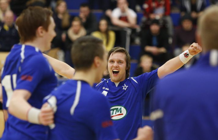 Stjarnan vann Víking, 27-19, í oddaleik í undanúrslitum umspilsins um laust sæti í N1-deild karla í handknattleik. Stjarnan hafði yfirhöndina allan leikinn og gáfu aldrei neitt eftir. Liðið byrjaði leikinn á því að komast í 5-0 og það forskot fór aldrei. Stjarnan byrjaði hreint ótrúlega í leiknum en þeir komust í 5-0 þegar Víkingar tóku leikhlé strax eftir fimm mínútur. Eftir leikhléið vöknuðu gestirnir og fóru að spila handbolta. Þegar hálfleikurinn var hálfnaður var staðan 8-5 fyrir Stjörnuna og Víkingar að vinna sig hægt og bítandi inn í leikinn. Stjörnumenn voru heldur betur ekki á þeim buxunum að hleypa gestunum inn í leikinn og gáfu bara í. Þeir voru með fimm marka forystu í hálfleik 15-10. Stjarnan hélt áfram uppteknum hætti í upphafi síðari hálfleiksins og gáfu ekkert eftir og þegar hálfleikurinn var hálfnaður var staðan 21-16. Víkingar voru við það að missa af lestinni og Stjörnumenn á leiðinni í einvígi gegn Valsmönnum um sæti í N1-deildinni á næsta tímabili. Stjörnumenn voru einfaldlega betri í dag og áttu sigurinn fyllilega skilið. Brynjar Darri Baldursson, markvörður Stjörnunnar, var frábær í dag en hann varði 17 skot. Stjarnan mætir því Val í úrslitum umspilsins um það hvaða lið verður í N1-deildinni. Gunnar Berg: Virkilega flottur karakter hjá okkur í kvöld„Það var gríðarlega góður karakter í þessu hjá okkur,“ sagði Gunnar Berg Viktorsson, þjálfari Stjörnunnar, eftir sigurinn. „Við mættum dýrvitlausir til leiks og náðum fínu forskotið sem við létum aldrei frá okkur.“ „Það var nokkuð mikil bikarstemmning í þessu hjá liðinu í dag. Við fórum saman í morgunmat og eyddum deginum saman. Þetta þjappaði hópnum saman og gerði fullt fyrir liðið fyrir leikinn.“ „Ég er gríðarlega ánægður hvað menn héldu þetta út og spiluðu allan tímann góðan varnar-og sóknarleik.“ „Valsarar eru með gríðarlega sterkt lið og það verður erfitt að takast á því þá. Ég tel að við eigum kannski ekkert mikinn möguleika í þá en þeir þurfa heldur betur að hafa fyrir hlutunum gegn okkar.“Hægt er að sjá myndband af viðtalinu hér að ofan. Guðmundur: Þurfum tvo draumaleiki gegn Val til að fara upp„Við komum bara virkilega vel stemmdir í leikinn og mætum tilbúnir alveg frá fyrstu mínútu,“ sagði Guðmundur Guðmundsson, leikmaður Stjörnunnar, eftir sigurinn í kvöld. „Við vorum að spila fanta góða vörn allan leikinn og þeir komust bara ekkert áleiðis. Við keyrðum vel í bakið á þeim allan leikinn og það svona skóp sigurinn.“ „Valsmenn eru auðvitað með frábært lið og hafa verið að spila einstaklega vel sérstaklega eftir áramót. Við þurfum að eiga tvo draumaleiki til að eiga möguleika í þá, það verður að segjast en við ætlum okkur að leggja þá að velli.“Hægt er að sjá myndband af viðtalinu með því að ýta hér.Mynd/Valli