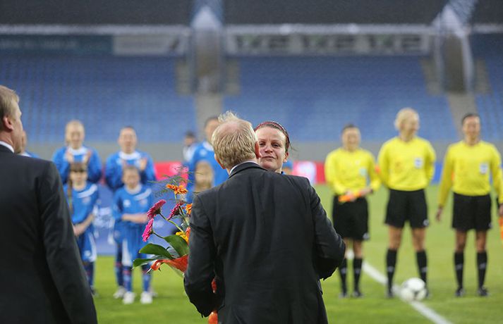 Kveðjustund Katrínar | Myndir Glæstum landsliðsferli Katrínar Jónsdóttir lauk á Laugardalsvelli í kvöld. Þá spilaði hún landsleik númer 133. Enginn Íslendingur hefur spilað fleiri A-landsleiki í knattspyrnu. 26. september 2013 21:58