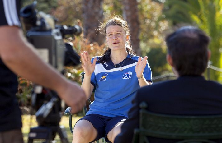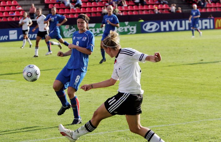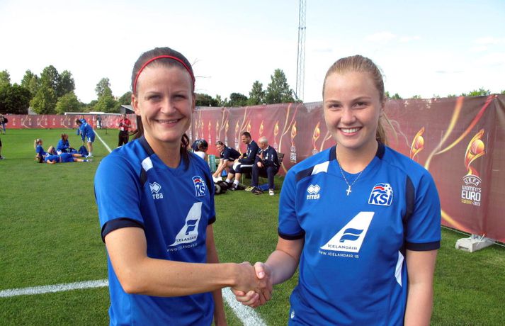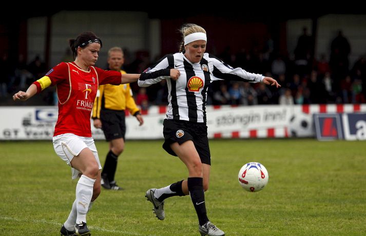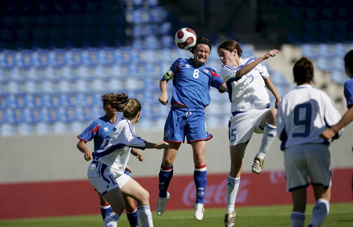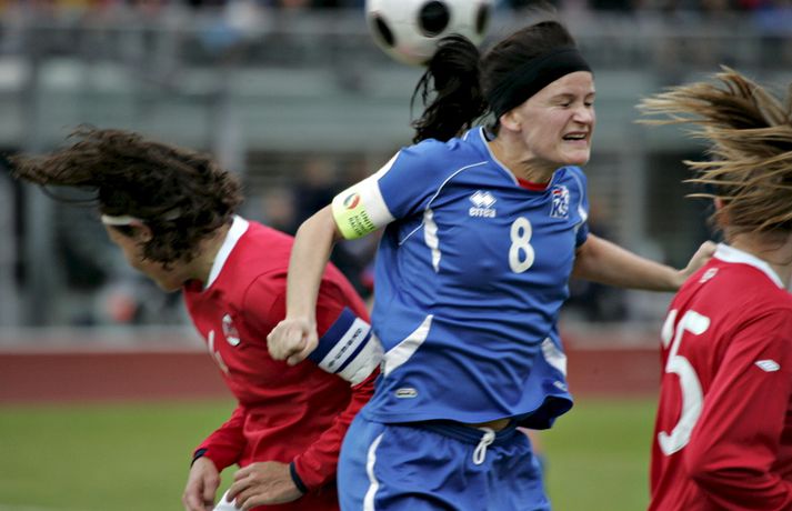 Ferill Katrínar í myndum og tölum Kolbeinn Tumi Daðason skrifar 26. september 2013 08:11 Katrín og Hrefna Huld Jóhannesdóttir bregða á leik í aðdraganda bikarúrslitaleiksins árið 2008. Mynd/Valli Katrín Jónsdóttir leikur sinn 133. og að öllum líkindum síðasta landsleik þegar kvennalandsliðið í knattspyrnu mætir Sviss í undankeppni EM á Laugardalsvelli í kvöld. Ferill landsliðsfyrirliðans er glæstur hvert sem litið er. Hún hefur verið sigursæl sem leikmaður í félagsliði og leiðtogi kvennalandsliðsins í rúman áratug. Á ferli sínum spilaði Katrín með Breiðabliki, Stjörnunni og Valhér heima. Þá nutu Kolbotn í Noregi og Djurgården í Svíþjóð þjónustu hennar þar til hún gekk í raðir Umeå fyrir yfirstandandi leiktíð. Hún hefur gefið út að hún muni leggja skóna á hilluna í lok leiktíðar. Hér að neðan gefur að líta feril Katrínar Jónsdóttur í tölum en tölfræðin er tekin saman af Óskari Ófeigi Jónssyni. Að ofan má sjá myndasyrpu frá ferli miðvarðarins sem varð 36 ára í maí.11273 Katrín er búinn að spila 11273 mínúturfyrir íslenska kvennalandsliðið eða með öðrum orðum í 187 klukkutíma og 53 mínútur.126 Katrín hefur verið í byrjunarliðinu í 126 landsleikjum eða í öllum leikjum nema sex.90 Katrín spilar í kvöld sinn 90. landsleik sem miðvörður en hún hefur einnig spilað á miðjunni (23), sem bakvörður (15) og sem framherji (5).75 Katrín hefur spilað 75 keppnisleiki fyrir landsliðið þar af hafa 45 verið í Evrópukeppni.72 Katrín mun í kvöld leiða íslenska liðið inn á völlinn í 72. sinn sem fyrirliði.52 Katrín hefur tekið þátt í 52 sigurleikjum með landsliðinu en 61 leikja hennar hafa tapast.31 Sviss verður 31. þjóðin sem Katrín mætir með íslenska landsliðinu30 Katrín spilar 30. landsleikinn sinn á Laugardalsvellinum í kvöld.21 Katrín er fjórða markahæsta landsliðskonan.10 Katrín hefur spilað flesta landsleiki sína á móti Svíþjóð en hún hefur níu sinnum mætt Noregi og Þýskalandi.8 Freyr Alexandersson er áttundi landsliðsþjálfarinn sem Katrín spilar fyrir. Fótbolti Íslenski boltinn Mest lesið Sjáðu brot af því besta úr enska boltanum í dag Fótbolti „Gott að við gátum verið liðið sem kláraði þetta“ Körfubolti Erfitt kvöld fyrir Ármann og Tindastól Körfubolti Liverpool loks á sigurbraut á ný Enski boltinn Juventus landaði sigri í fyrsta leik Spalletti Fótbolti Tvöföld tvenna Tryggva í tæpu tapi Körfubolti Harma rasíska og transfóbíska grein liðsfélaga Sveindísar Fótbolti Andri Lucas var kóngurinn á King Power í dag Enski boltinn Uppgjörið: Valur - KR | 93-100 | KR hafði betur í slag Reykjavíkurstórveldanna Körfubolti Valencia engin fyrirstaða fyrir Real Madrid Fótbolti Fleiri fréttir Sjáðu brot af því besta úr enska boltanum í dag Juventus landaði sigri í fyrsta leik Spalletti Liverpool loks á sigurbraut á ný Valencia engin fyrirstaða fyrir Real Madrid Lánleysi Úlfanna algjört og Palace aftur á sigurbraut Pedro afgreiddi Tottenham Arsenal með sjö stiga forystu á toppnum Emelía innsiglaði sigurinn og liðið á toppnum Andri Lucas í beinni í Doc Zone: „Við setjum hann í skeytin“ Glódís Perla og félagar létu ekki áfall í byrjun stoppa sig Amad bjargaði stigi fyrir United Andri Lucas var kóngurinn á King Power í dag Diljá norskur meistari með Brann Alexandra skoraði en hræðilegur fyrri hálfleikur eyðilagði allt Pablo og Óskar Örn inn í þjálfarateymi Hauka Liverpool féll síðast þegar liðið tapaði fimm í röð Fyrrum þjálfari ársins notaði gervigreindina til að hjálpa sér „Ég er ekki Schmeichel í dulargervi“ FH-ingar kveðja Kjartan Henry Arne Slot: „Þetta er síðasta spurningin sem ég átti von á“ 149 tyrkneskir dómarar í bann vegna veðmála Segir sönginn um Jota á tuttugustu mínútu hafa áhrif á leik Liverpool Harma rasíska og transfóbíska grein liðsfélaga Sveindísar Kóngarnir í Færeyjum: Töpuðu ekki leik allt tímabilið Haaland fór sem Jókerinn að versla bleyjur Fullkomin þrenna kom Lampard úr sjöunda himni Jóladagskráin klár: Hefðin brotin og aðeins einn leikur annan í jólum Sandra hélt áfram að fagna eftir landsleikina Ísland fær eitt lakara lið í sinn riðil Sjáðu besta liðið í föstum leikatriðum leika listir sínar Sjá meira