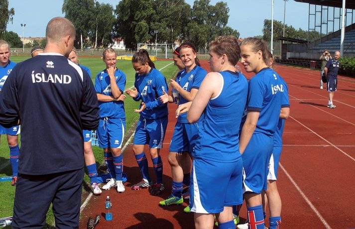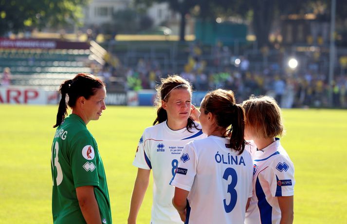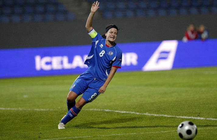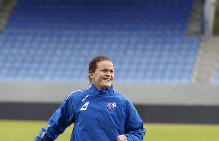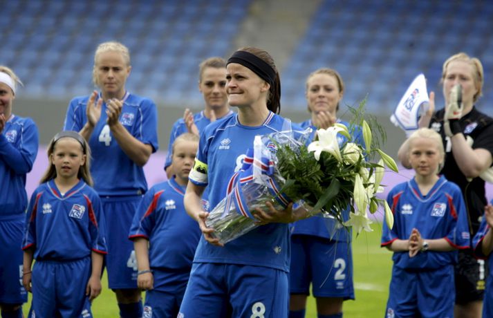Katrín Jónsdóttir leikur sinn 133. og að öllum líkindum síðasta landsleik þegar kvennalandsliðið í knattspyrnu mætir Sviss í undankeppni EM á Laugardalsvelli í kvöld. Ferill landsliðsfyrirliðans er glæstur hvert sem litið er. Hún hefur verið sigursæl sem leikmaður í félagsliði og leiðtogi kvennalandsliðsins í rúman áratug. Á ferli sínum spilaði Katrín með Breiðabliki, Stjörnunni og Valhér heima. Þá nutu Kolbotn í Noregi og Djurgården í Svíþjóð þjónustu hennar þar til hún gekk í raðir Umeå fyrir yfirstandandi leiktíð. Hún hefur gefið út að hún muni leggja skóna á hilluna í lok leiktíðar. Hér að neðan gefur að líta feril Katrínar Jónsdóttur í tölum en tölfræðin er tekin saman af Óskari Ófeigi Jónssyni. Að ofan má sjá myndasyrpu frá ferli miðvarðarins sem varð 36 ára í maí.11273 Katrín er búinn að spila 11273 mínúturfyrir íslenska kvennalandsliðið eða með öðrum orðum í 187 klukkutíma og 53 mínútur.126 Katrín hefur verið í byrjunarliðinu í 126 landsleikjum eða í öllum leikjum nema sex.90 Katrín spilar í kvöld sinn 90. landsleik sem miðvörður en hún hefur einnig spilað á miðjunni (23), sem bakvörður (15) og sem framherji (5).75 Katrín hefur spilað 75 keppnisleiki fyrir landsliðið þar af hafa 45 verið í Evrópukeppni.72 Katrín mun í kvöld leiða íslenska liðið inn á völlinn í 72. sinn sem fyrirliði.52 Katrín hefur tekið þátt í 52 sigurleikjum með landsliðinu en 61 leikja hennar hafa tapast.31 Sviss verður 31. þjóðin sem Katrín mætir með íslenska landsliðinu30 Katrín spilar 30. landsleikinn sinn á Laugardalsvellinum í kvöld.21 Katrín er fjórða markahæsta landsliðskonan.10 Katrín hefur spilað flesta landsleiki sína á móti Svíþjóð en hún hefur níu sinnum mætt Noregi og Þýskalandi.8 Freyr Alexandersson er áttundi landsliðsþjálfarinn sem Katrín spilar fyrir.