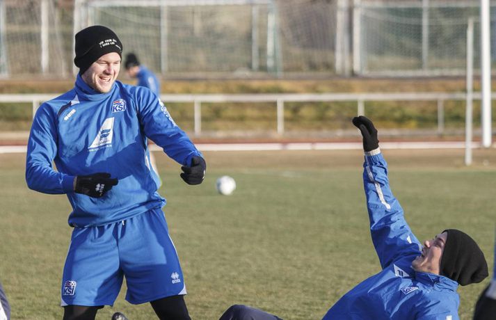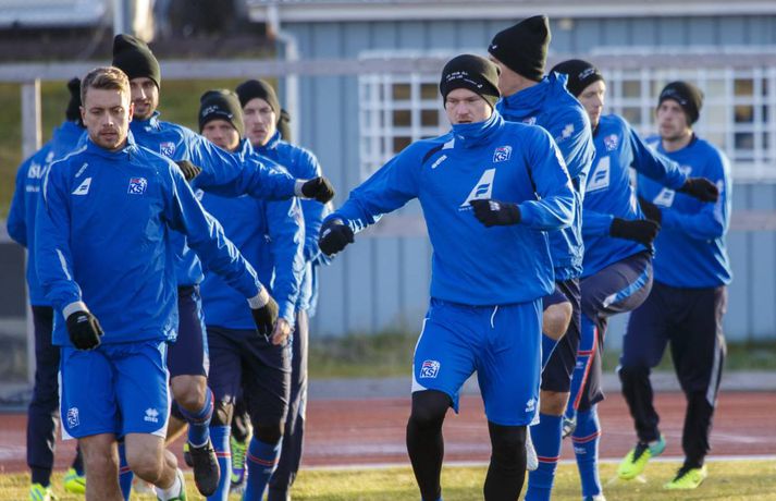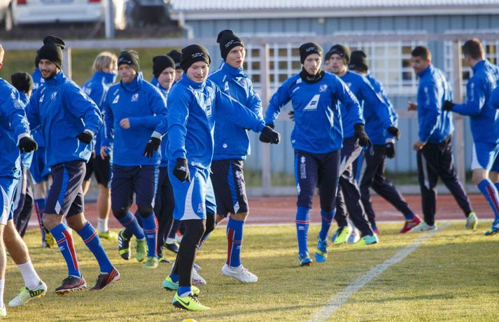 Íslenska landsliðið í knattspyrnu æfði á Kópavogsvelli í dag en liðið mætir Króötum í fyrri umspilsleiknum á Laugardalsvellinum föstudagskvöldið. Liðin mætast á ný ytra 19. nóvember en liðið hefur aldrei leikið jafn mikilvæga landsleiki í sögunni. Vilhelm Gunnarsson, ljósmyndari Fréttablaðsins, var mættur á æfingu landsliðsins í dag og tók þessar skemmtilegu myndir.mynd / vilhelm