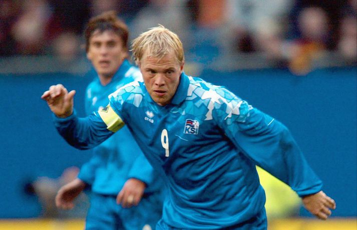 Okkar fjögurra blaða Eiður Smári Óskar Ófeigur Jónsson skrifar 21. nóvember 2013 08:00 Eiður Smári Guðjohnsen. Á þriðjudagskvöldið voru liðin 17 ár, 6 mánuðir og 26 dagar síðan Eiður Smári Guðjohnsen spilaði sinn fyrsta A-landsleik og það er hætt við því að íslenska þjóðin hafi klökknað með honum þegar hann brotnaði niður í beinni sjónvarpsútsendingu og tilkynnti að hann væri búinn að spila sinn síðasta landsleik. Það er samt við hæfi að Eiður Smári hætti með landsliðinu á hæsta stalli í sögu þess þótt markmiðið hafi alltaf verið að enda landsliðsferilinn á HM í Brasilíu næsta sumar. Hann lokaði dyrunum á landsliðsferlinum samt með sviðsljós heimsins á sér en allur heimurinn fylgdist með hvort litla Íslandi tækist að setja heimsmet og komast á HM alveg eins og heimurinn fylgdist með sögulegri stundi í Eistlandi á síðustu öld þegar feðgarnir Eiður Smári og Arnór Guðjohnsen spiluðu næstum því saman með íslenska landsliðinu. Eiður Smári kveður landsliðið sem langmarkahæsti landsliðsmaður sögunnar. Hann bætti markamet Ríkharðs Jónssonar á endanum um sjö mörk og er kominn upp í fjórða sætið yfir leikjahæstu landsliðsmenn Íslands enda kominn með 78 A-landsleiki á ferilskrána. Eiður Smári upplifði vissulega hæðir og lægðir með íslenska landsliðinu en hann var í liðinu á þremur góðæristímum – í frábæru gengi liðsins undir stjórn Guðjóns Þórðarsonar, sigursælu liði sumarið 2003 undir stjórn Ásgeirs Sigurvinssonar og Loga Ólafssonar og loks hjálpaði hann framtíðarlandsliði Íslands alveg að þröskuldi þess að komast á sitt fyrsta stórmót. Það er af nógu að taka af frábærum stundum Eiðs Smára með íslenska landsliðinu en hér á síðunni smá sjá tíu magnaðar stundir frá mögnuðum landsliðsferli. Það þarf síðan mikið til að taka Eið Smára af stallinum sem besta landsliðsmann Íslands frá upphafi.1. 24. apríl 1996, Tallinn í Eistlandi Eiður Smári kemur inn á sem varamaður fyrir föður sinn í 3-0 sigri á Eistlandi. Þeir áttu að fá að byrja saman í næsta leik en það varð aldrei að því þar sem Eiður Smári meiddist mjög illa á ökkla í unglingalandsleik í maí og Arnór Guðjohnsen spilaði sinn síðasta landsleik árið eftir.2. 4. september 1999, Laugardalsvöllur Annar landsleikurinn og sá fyrsti eftir ökklabrotið í maí 1996, 40 mánuðum áður. Eiður Smári kemur inn á sem varamaður á 75. mínútu og skorar sitt fyrsta landsliðsmark á lokamínútunni þegar hann skallar inn fyrirgjöf frá Bjarna Guðjónssyni.3. 16. ágúst 2000, Laugardalsvöllur Fyrsti landsleikur Eiðs Smára í byrjunarliði A-landsliðsins. Ísland vinnur Svía 2-1, sinn fyrsta sigur á Svíum í 49 ár eða frá 4-3 sigri á Svíþjóð á Melavellinum 1951. Eiður Smári fiskar vítið sem ræður úrslitum en Helgi Sigurðsson skoraði sigurmarkið úr vítaspyrnunni.4. 16. október 2002, Laugardalsvöllur Eiður Smári skorar tvö mörk í 3-0 sigri á Litháum og komu þau bæði í seinni hálfleiknum. Hann fékk tækifæri til að skora þrennu eftir að hafa verið felldur í vítateignum tveimur mínútum fyrir leikslok. Eiður Smári skaut hins vegar hátt yfir mark Litháa úr spyrnunni.5. Sumarið 2003 á Laugardalsvelli, í Vilnius og í Þórshöfn Íslenska landsliðið vinnur þrjá fyrstu leiki sína eftir að Eiður Smári fær fyrirliðabandið. Liðið vinnur 2-1 sigur á Færeyjum bæði á Laugardalsvelli og í Þórshöfn og í millitíðinni vinnur liðið 3-0 sigur út í Litháen. Þetta var í fyrsta sinn sem Ísland vinnur þrjá leiki í röð í keppni. Eiður Smári skorar tvö mörk í þessum leikjum og leggur upp önnur þrjú.6. 18. ágúst 2004, Laugardalsvöllur Eiður Smári skorar fyrra markið í 2-0 sigri á Ítölum fyrir framan 20.204 áhorfendur en þetta áhorfendamet stendur enn þann daginn í dag. Eiður skoraði þarna framhjá Gianlugi Buffon en tæpum tveimur árum seinna urði Ítalir heimsmeistarar undir stjórn Marcello Lippi sem stjórnaði ítalska landsliðinu þarna í fyrsta sinn.7. 2. september 2006, Belfast Eiður Smári skorar þriðja markið í 3-0 útisigri á Norður-Írum í fyrsta leik Íslands í undankeppni EM 2008. Þetta var 17. landsliðsmark Eiðs Smára í hans 41. landsleik og hann jafnaði þar með markamet Ríkharðs Jónssonar sem hafði átti metið frá árinu 1947.8. 13. október 2007, Laugardalsvöllur Eiður Smári skorar tvö mörk í 2-4 tapi á móti Lettlandi og á nú markamet landsliðsins einsamall en hann hafði þá ekki skorað fyrir landsliðið í eitt ár og sex leikjum. Ríkharður Jónsson var ekki lengur á toppi listans en hann hafði þá verið markahæsti landsliðsmaður Íslands í 60 ár.9. 6. september 2008, Ósló Eiður Smári skorar stórglæsilegt mark beint úr aukaspyrnu og tryggir íslenska landsliðinu 2-2 jafntefli á móti Norðmönnum á Ullevaal-leikvanginum í fyrsta leiknum í undankeppni HM 2010. Eiður Smári var næstum því búinn að leggja upp sigurmarkið líka en Veigar Páll Gunnarsson átti þá skot í innanverða stöngina og út á 86. mínútu leiksins.10. 5. september 2009, Laugardalsvöllur Eiður Smári tryggir íslenska liðinu 1-1 jafntefli á móti Norðmönnum í undankeppni HM 2010 með fallegu skallamarki. Þetta var 60. landsleikur Eiðs Smára sem átti frábæran leik og 24. landsliðsmarkið hans. Eiður Smári skoraði ekki í síðustu 18 landsleikjum sínum.Uppklappið - Haustið 2013 á Laugardalsvelli, í Bern og í Osló Eiður Smári hjálpar ungu og upprennandi íslensku landsliði að ná sögulegum árangri með því að komast í fyrsta sinn í umspil um sæti á HM. Hann spilar byrjar fjóra af fimm síðustu leikjum liðsins í keppninni en síðasti landsleikurinn er 2-0 tapleikur á móti Króatíu í Zagreb. F