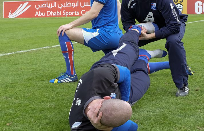 Íslenska karlalandsliðið í fótbolta er nú statt í Abú Dabí í Sameinuðu arabísku furstadæmunum þar sem liðið er í æfingabúðum og mun svo leika vináttuleik við Svía á þriðjudaginn. Leikurinn verður sýndur beint á Stöð 2 Sport. Íslenska liðið er skipað leikmönnum sem spila hér heima eða á Norðurlöndum en leikmenn annarsstaðar í Evrópu fengu sig ekki lausa þar sem að þetta er ekki opinber landsleikjadagur. Svíar hafa verið lengur en íslenska liðið í æfingabúðum og unnu 2-1 sigur á Moldavíu í vináttulandsleik fyrir helgi.Hilmar Þór Guðmundsson, starfsmaður KSÍ, er með í ferðinni til í Abú Dabí og hann hefur tekið skemmtilegar myndir af strákunum í sólinni.Mynd/KSÍ/Hilmar Þór GuðmundssonMynd/KSÍ/Hilmar Þór GuðmundssonMynd/KSÍ/Hilmar Þór GuðmundssonMynd/KSÍ/Hilmar Þór GuðmundssonMynd/KSÍ/Hilmar Þór GuðmundssonMynd/KSÍ/Hilmar Þór GuðmundssonMynd/KSÍ/Hilmar Þór Guðmundsson