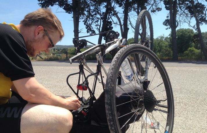 Hjóluðu á Sónar frá Berlín til Barcelona Kristjana Arnarsdóttir skrifar 12. júní 2014 12:00 Þrátt fyrir nokkur óhöpp á leiðinni komust þeir Helgi Ragnar og Rafn á leiðarenda. „Heilsan er óvenju góð, við vorum reyndar alveg uppgefnir þegar við komum í fyrrakvöld en líkaminn er þó í góðu standi,“ segir Rafn Erlingsson, en Rafn og félagi hans, Helgi Ragnar Jensson, hjóluðu um 2.500 kílómetra leið, frá Berlín til Barcelona, til þess eins að skella sér á tónlistarhátíðina Sónar sem fram fer í spænsku borginni. Þeir félagar fluttu saman til Berlínar í febrúar og ákváðu stuttu síðar að fjárfesta í miðum á tónleikahátíðina. „Það var svo undir áhrifum bjórs að við ákváðum að hjóla alla leið á áfangastað og það gerðum við,“ segir Rafn, en ferðalagið tók um einn og hálfan mánuð. „Við vissum í rauninni lítið hvað við vorum að koma okkur út í. Við reyndum bara að plana einn dag í einu og svo þegar við komum að Miðjarðarhafinu pössuðum við okkur bara á því að sjórinn væri vinstra megin við okkur, þá vorum við að hjóla í rétta átt,“ segir Rafn og hlær. Alls hjóluðu þeir félagar í gegnum sjö lönd og fóru bæði yfir Alpana og Pýreneafjöll. Ferðalagið gekk þó ekki stóráfallalaust fyrir sig. „Það sprakk hjá mér þrisvar, eitt dekk og ein gjörð eyðilögðust. Helga tókst svo að týna myndavélinni sinni og við hjóluðum aukalega þrjátíu kílómetra til þess að reyna að hafa upp á henni, án árangurs. Helgi klessti svo einu sinni á mig og flaug af hjólinu og mér tókst svo að klessa á staur þegar ég var utan við mig og flaug í kjölfarið af hjólinu.“ Strákunum tókst þó að komast á leiðarenda í tæka tíð en Sónar-hátíðin hefst í Barcelona í dag og er íslenska hljómsveitin FM Belfast á meðal þeirra sem koma fram. „Við hlökkum mest til þess að sjá okkar íslensku FM Belfast. Nú erum við búnir að vera að ferðast í sex vikur og höfum ekki haft nægan tíma til að kynna okkur hverjir eru að spila, þótt við höfum séð mörg böndin á Sónar hér í Reykjavík. En við erum rosalega spenntir.“ Þeir félagar ætla báðir að flytja heim til Íslands að hátíðinni lokinni.En hvernig verður heimferðinni hagað? „Það hefur komið upp sú hugmynd að hjóla bara til baka en við eigum þó báðir flug heim með hjólin okkar. Ætli við höldum því plani ekki bara,“ segir Rafn, hress að lokum. Sónar Mest lesið Lét flúra brúðkaupsdaginn á sig en gerði mistök Lífið Breytti um nafn eftir djúpa ástarsorg Tónlist Ótrúlegur bílskúr Hönnu Rúnar: „Hvar ertu?“ Lífið Fasteignasalar og ofurskvísur í Októberfest stemningu Lífið Sigurjón og Sóley gjörbreyttu eldhúsinu með einstakri útkomu Lífið Eitt glæsilegasta hús Reykjavíkur til sölu Lífið Blondie verður stjarnan á RIFF um helgina Lífið Komu höndum yfir fæðingarvottorðið og ljóstruðu upp um fæðinguna Bíó og sjónvarp „Fallegasti drengur í heimi“ er látinn Bíó og sjónvarp Elegant eftirréttur sem hlýjar um hjartarætur Matur Fleiri fréttir Ótrúlegur bílskúr Hönnu Rúnar: „Hvar ertu?“ Lét flúra brúðkaupsdaginn á sig en gerði mistök Sviti, mjólk og hóstakast eftir að hafa manað hvor annan Yfir 170 góðgerðafélög hlutu styrk í áheitasöfnun Reykjavíkurmaraþons Sigurjón og Sóley gjörbreyttu eldhúsinu með einstakri útkomu „Alvöru“ jólasveinn gisti á Hótel Rangá Fasteignasalar og ofurskvísur í Októberfest stemningu Eitt glæsilegasta hús Reykjavíkur til sölu „Þetta er það fallegasta sem einhver hefur sagt um mig“ Hvað þýðir „six-seven“? Smáforrit til að deila heimilisverkum: „Fæ þrjú stig fyrir að þurrka af á heimilinu“ Kynslóðabilið kom í ljós þegar umræðan beindist að blautbolakeppni Ljúffengar banana- og kakóbollakökur í nestisboxið Troðningur á yfirfullri opnun: „Þetta var svolítið kreisí“ Pétur Kr. og Ingibjörg selja 270 fermetra eign við Ægisíðu Barist upp á líf og dauða „Get ekki hætt að hugsa um bragðarefinn sem hann pantaði“ Langþráður draumur verður að veruleika Samsæriskenningar notaðar sem stjórntæki Stjörnulífið: „Dagur sem mun aldrei gleymast“ Gisti hálft ár á sófum hjá bekkjarfélögum Betra að vera blankur nemi í New York Kynlífið innantómt með öðrum en fyrrverandi Fékk lífið til baka á korteri eftir tólf ár af sársauka Staðfesta loks sambandið Einar og Milla skírðu drenginn Með blæðandi hjarta og ber örin með stolti Krakkatían: Kvennafrídagurinn, Ólsen ólsen og málsháttur Áslaug Arna kom alblóðug inn í sjúkratjaldið Upplifði stöðugan ótta við helvíti í samfélagi múslima í Svíþjóð Sjá meira
