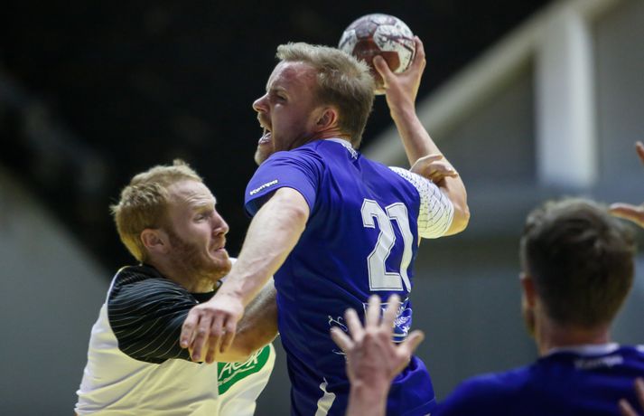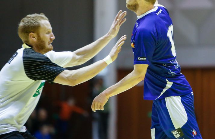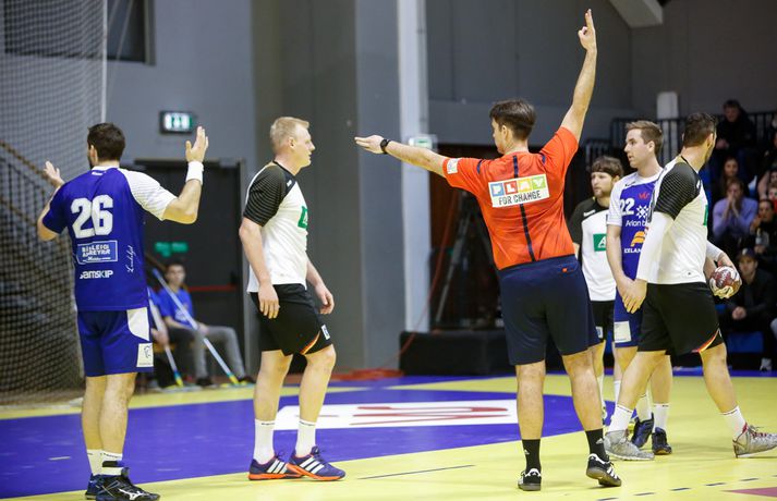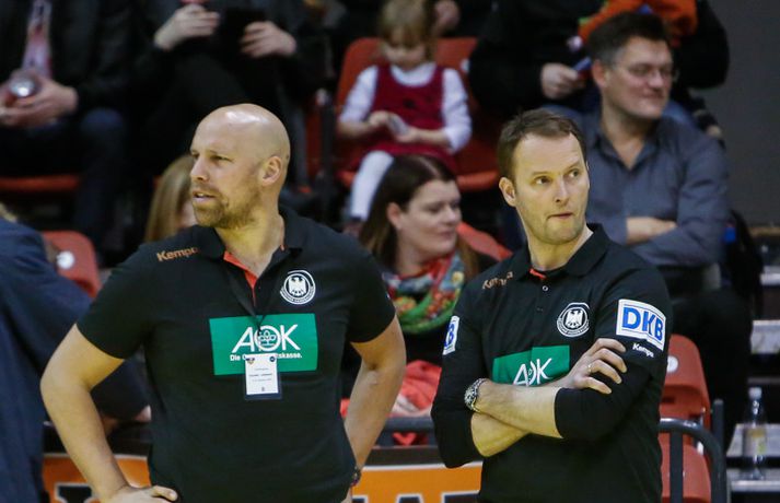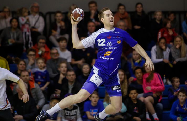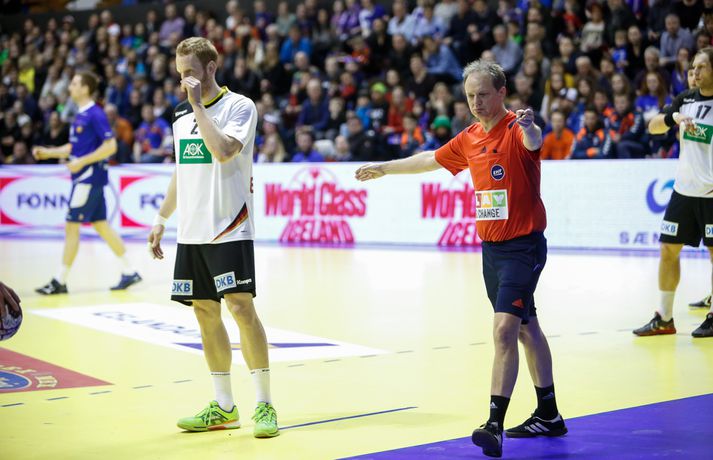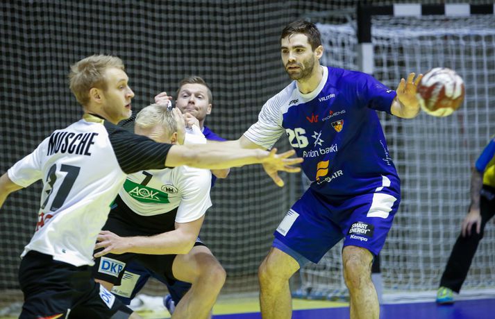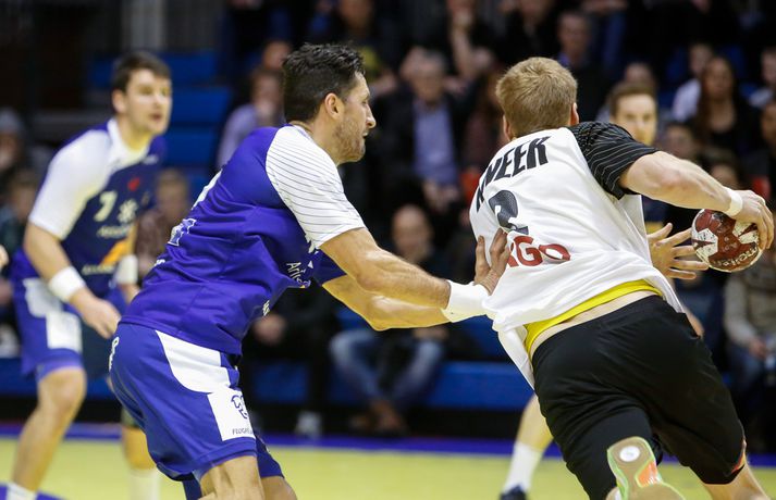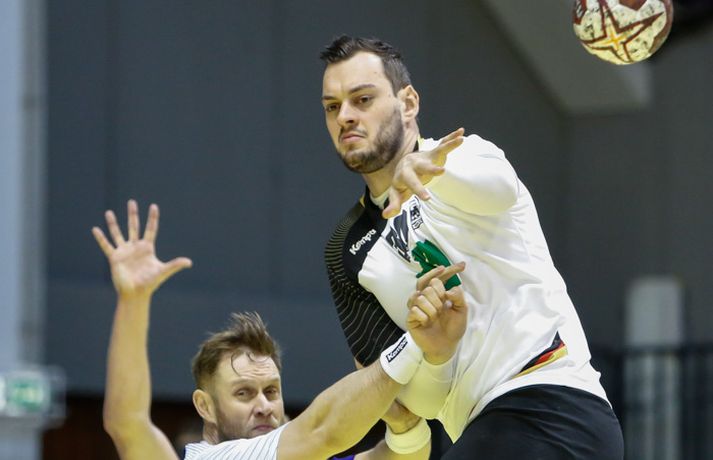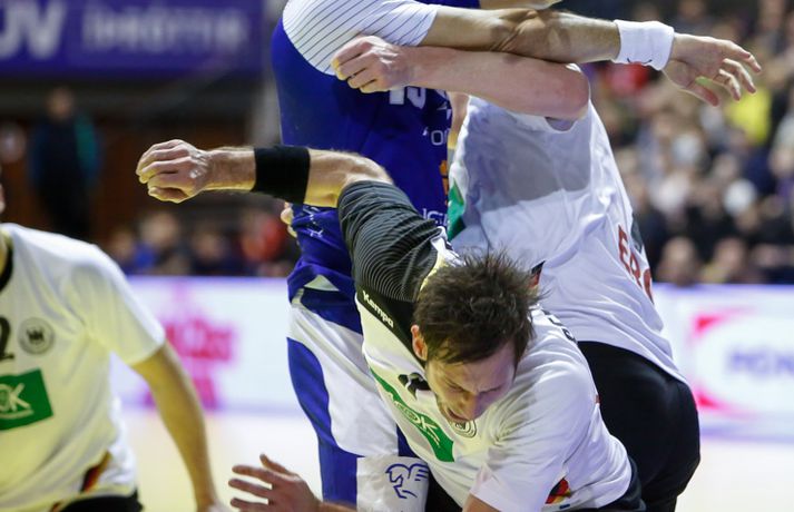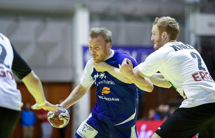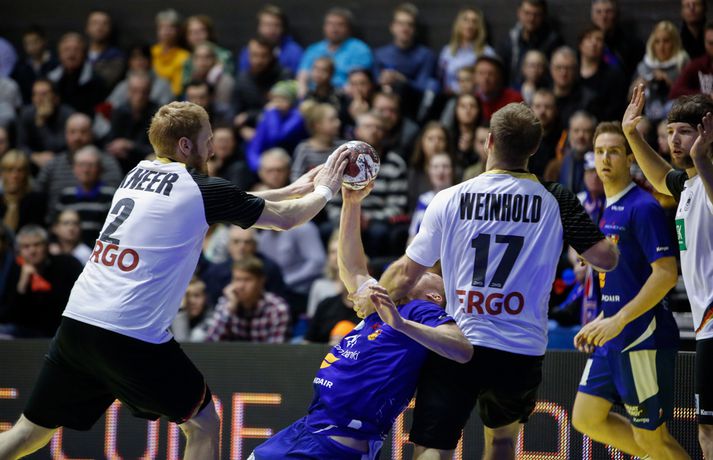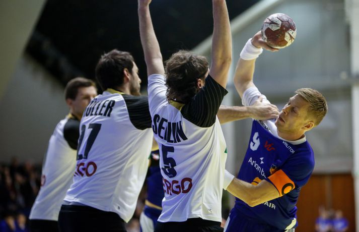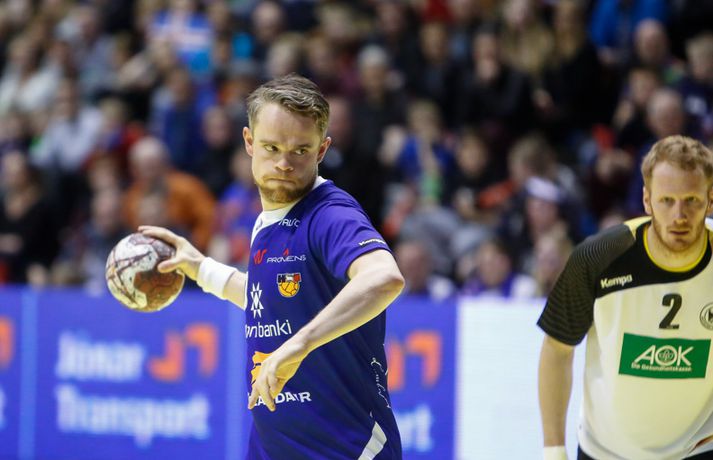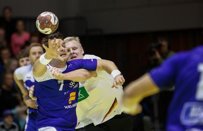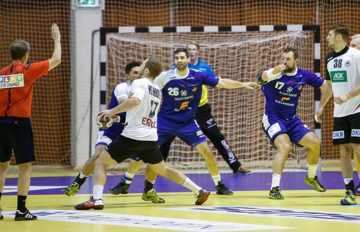 Ísland vann sinn síðasta heimaleik fyrir HM í Katar með því að leggja lærisveina Dags Sigurðssonar í þýska landsliðinu að velli með minnsta mun.Ernir Eyjólfsson, ljósmyndari Fréttablaðsins og Vísis, var í Laugardalshöllinni í kvöld og tók myndirnar sem fylgja umfjölluninni. Eftir flotta byrjun datt botninn úr leik liðsins en strákarnir héldu þó jafnri stöðu eftir fyrri hálfleik, 12-12. Strákarnir byrjuðu svo síðari hálfleikinn vel og héldu undirtökunum allt til loka, þrátt fyrir æsispennandi lokamínútur. Alexander Petersson og Sigurbergur Sveinsson voru markahæstu menn Íslands með fimm mörk hvor en Sigurbergur átti fína sprett í leiknum, eins og fleiri. Vörn íslenska liðsins var svo lengi vel góð. Sigurbergur Sveinsson, Kári Kristján Kristjánsson og Aron Rafn Eðvarðsson fengu tækifærið í byrjunarliði Íslands og viðeigandi að Íslandi hafi komist yfir með marki Kára eftir línusendingu Sigurbergs. Aron byrjaði að tefla fram 6-0 vörninni sem hélt vel í upphafi leiks. Strákarnir komust í 10-6 forystu með flottum sóknarleik þar sem vinstri vængurinn var að gefa mun betur af sér en í leik liðanna í gær. Þjóðverjar lentu einnig í vandræðum í undirtölu og strákarnir refsuðu Degi Sigurðssyni, þjálfara þýska liðsins, fyrir að taka Carsten Lichtlein úr þýska markinu í sóknunum sínum með því að skora tvívegis í autt markið eftir að hafa unnið boltann.vísir/ernirSóknarleikurinn hrundi svo á síðustu tíu mínútum fyrri hálfleiksins og leikur Íslands um leið. Þjóðverjar gengu á lagið, skoruðu fimm mörk í röð og komust yfir. Alexander og Arnór komu íslensku sókninni aftur í gang og staðan í hálfleik var 12-12. Eftir smá hikst í upphafi síðari hálfleiks fór allt á fullt skrið hjá Íslandi. Alexander hélt uppteknum hætti og Björgvin Páll kom sér vel í gang fyrir aftan fína vörn Íslands og varði tvö vítaköst þar að auki. Strákarnir komust í 17-13 forystu en eftir að Sverre fékk brottvísun náðu Þjóðverjar að svara með þremur mörkum í röð. Það kom meiri ákefð í leikmenn eftir því sem leið á leikinn og riðlaðist skipulagið nokkuð í takt við það. Það var þó ágætt í íslenska liðinu þegar strákarnir fengu tækifæri til að stilla upp og þeir héldu áfram undirtökunum í leiknum og voru með forystu, 21-19, þegar tæpar tólf mínútur voru eftir. Þrátt fyrir að gestirnir skoruðu næstu tvö mörkin í leiknum létu okkar menn ekki slá sig út af laginu og náðu aftur undirtökunum. Þjóðverjar héldu spennu í leiknum með því að nýta sér mistök Ásgeirs Arnar sem kastaði boltanum frá sér í tvígang. Sigurbergur kom svo Íslandi yfir þegar rúm mínúta var eftir en það var hans þriðja mark í röð í leiknum. Björgvin Páll tryggði svo íslenskan sigur þegar hann varð skot Patrick Wiencek á lokasekúndunum. Sigurbergur: Var afslappaðari í kvöldvísir/ernir„Mér leið betur í dag en í gær. Það þurfti einn leik til að hrista úr sér jólin og áramótin,“ sagði Sigurbergur Sveinsson sem átti góðan leik fyrir Ísland í kvöld. „Við höfum náð fáum æfingum og mér leið einfaldlega betur í kvöld. Þetta var aðallega hugarfarið í gær og mér leið ekkert sérstaklega vel yfir þessu. Ég var afslappaðari í kvöld og lét leikinn koma til mín. Það var betra flæði í þessu. „Þetta er skref hjá okkur. Þetta var betra í dag en í gær og vonandi verður þetta svona hjá okkur þangað til við komum til Katar,“ sagði Sigurbergur sem átti frábæra innkomu undir lokin á leiknum eftir stutta hvíld. „Það var gott að fá að pústa aðeins og koma aftur inn á. Ég náði að setjast á bekkinn og núllstilla þetta aðeins. Svo fékk ég góð færi. Lexi (Alexander Petersson) dregur mikið til sín. „Það er mikilvægt að geta nýtt breiddina og sérstaklega á svona móti eins og við erum að fara á. Það eru margir leikir á skömmum tíma og eins og handbolti er í dag þá ertu ekkert að fara að spila þetta á sjö, átta mönnum. Það er alveg á hreinu,“ sagði Sigurbergur. Bjarki Már: Mátti búast við vörninni sterkrivísir/ernir„Það er mikill léttir að hafa unnið hérna þó þetta skipti í rauninni engu máli. Það er alltaf gaman að vinna,“ sagði Bjarki Már Gunnarsson sem lék allan leikinn í vörn íslenska liðsins. „Leikurinn okkar hrundi í gær en í kvöld náðum við að halda dampi út báða hálfleikana. Við fengum mörg hraðaupphlaup í bakið en vörnin var að halda ágætlega. Markvarslan var góð. Það er lítið hægt að kvarta.“ Bjarki lék ýmist með Vigni Svavarsson eða Sverra Jakobsson sér við hlið í vörninni í kvöld. „Það er þvílíkt gaman að spila með þessum jöxlum. Maður verður bara að standa og fá áfram sénsinn. Ég ætla mér að vera þarna áfram. „Það mátti alveg búast við vörninni sterkri. Við höfum aðallega æft varnarleik á æfingum. Sóknarleikurinn á eftir að slípast. „Það er líka gott hvað markvarslan hefur verið stöðug. Þeir eru að taka bæði skot utan af velli og dauðafæri,“ sagði Bjarki. Ísland hefur æft 3-2-1 vörn en notaði hana ekkert í kvöld. „Við fengum í rauninni ekki tækifæri til þess. Við ætluðum að sjá til með að nota hana. Við förum yfir hana úti í staðin. Við höfum farið yfir vinnureglur og byrjað á þessu. Þetta er djörf vörn. „Það er alltaf gott að geta brotið upp leikinn og fengið andstæðinginn til að slútta snemma. 3-2-1 vörnin er til þess,“ sagði Bjarki Már. Arnór Þór: Ætti að kannast við Viktor Szilagyi fintuna„Þetta var fínt og við spiluðum fanta vörn allir í liðinu. Mér fannst við góðir í kvöld,“ sagði Arnór Þór Gunnarsson. „Við köstuðum boltanum minna frá okkur en í gær