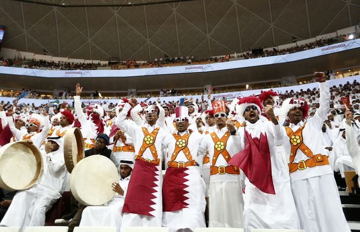 Mögnuð stemning í Lusail | Myndir Eiríkur Stefán Ásgeirsson skrifar 28. janúar 2015 16:51 Vísir/Eva Björk Nú stendur yfir leikur Katar og Þýskalands í hinni stórglæsilegu Lusail-íþróttahöll í samnenfdri borg rétt utan Doha í Katar. Beina textalýsingu frá leiknum má finna hér. Þó svo að fáir innfæddir Katarbúar séu lykilmenn í landsliðinu eru heimamenn gríðarlega vel studdir af fjölmörgum áhorfendum sem eru mættir í höllina. Hún rúmar um sautján þúsund manns í sæti og er setið í flestum þeirra - þó ekki öllum. Eva Björk Ægisdóttir tók þessar mögnuðu myndur af stemningunni hér í Lusail. HM 2015 í Katar Tengdar fréttir Dagur gefur mömmu skýrslu eftir hvern leik Þýskaland mætir í dag heimamönnum í Katar í 8-liða úrslitum á HM í handbolta. Þjóðverjar, undir stjórn Dags Sigurðssonar, hafa spilað frábærlega á mótinu og fóru létt með Egyptaland í 16-liða úrslitunum. 28. janúar 2015 07:00 Umfjöllun: Þýskaland - Katar 24-26 | Heimamenn í undanúrslit Katar er komið í undanúrslit á HM á heimavelli eftir tveggja marka sigur, 26-24, á Þýskalandi í Lusail Sports Arena í dag. 28. janúar 2015 13:48 Þjóðverjar hafa ekki áhyggjur af dómgæslunni Dómarapar frá Makedóníu sett á leikinn gegn Katar í 8-liða úrslitum HM í handbolta. 28. janúar 2015 15:15 Dagur Sig: Höfum ekki ennþá þurft að vera með bensínið í botni Dagur Sigurðsson á möguleika á því að koma þýska handboltalandsliðinu í undanúrslit í dag en Þjóðverjar mæta þá heimamönnum í átta liða úrslitum á HM í Katar. 28. janúar 2015 14:30 Brand og Baur lofa Dag í hástert "Hver einasta ákvörðun sem hann hefur tekið hefur reynst rétt og gengið upp.“ Dagur Sigurðsson, þjálfari þýska landsliðsins fær allstaðar mikið hrós. 28. janúar 2015 13:21 Mest lesið Ógeðslega erfitt og ógeðslega vont en brosir oft í viku á eftir Sport Grafalvarleg staða: „Þurfum að fara í sársaukafullar aðgerðir“ Handbolti Fram þvertekur fyrir metnaðarleysi og leitar að nýjum þjálfurum Íslenski boltinn „Nú er nóg komið“ Fótbolti Skortir Liverpool breidd þrátt fyrir gríðarleg fjárútlát síðasta sumar? Enski boltinn Nefna greinar Íslandsmótsins í CrossFit í höfuðið á íslenskum íþróttakonum Sport Sádar eru ekki að fara að byggja HM-leikvang ofan á skýjakljúfi Fótbolti Arnór Snær snýr aftur heim Handbolti Eldgos og brjósklos skapa óvissu: „Vonum bara að móðir náttúra leyfi þetta“ Sport „Búnir að sýna hvað við getum verið lélegir“ Körfubolti Fleiri fréttir Arnór Snær snýr aftur heim Besta handboltadeild heims missir aðalstyrktaraðila sinn Grafalvarleg staða: „Þurfum að fara í sársaukafullar aðgerðir“ ÍR áfram eftir sigur í Mosfellsbæ Uppgjörið: Þýskaland - Ísland 42-31 | Þrot í Þýskalandi Tilkynnti um óléttu og nýjan samning á sama tíma Patrekur hættur eftir dapurt gengi Stjörnunnar Rekinn fyrir ummæli sín um krabbameinssjúka handboltagoðsögn Janus Daði myndaður í heimsókn hjá Barcelona Epicbet sýni handboltann í leyfisleysi: „Enda ólöglegar síður“ Teitur inn í landsliðið Gísli bjó til meira en þriðjung markanna Haukur magnaður í sigri Löwen Blær skoraði þrjú og lagði upp jöfnunarmarkið KA/Þór sótti sigur gegn Fram og stigalausar Stjörnukonur Fram kjöldró HK og spenna í Eyjum Meistararnir unnu gegn ÍBV og ÍR hafði betur gegn Selfyssingum Donni og félagar björguðu stigi undir lokin Afturelding komst upp að hlið Hauka Seldu bleika búninginn hennar Herrem fyrir meira en milljón „Leið vel þegar ég fór inn úr færinu“ Uppgjörið FH - Haukar 27-26 | Birgir Már tryggði FH sigur eftir spennutrylli Bernard fór mikinn en Valsmenn sluppu með sigurinn Fyrsti sigur Þórsara síðan í byrjun september Ómar Ingi með fullkomnan leik í Meistaradeildinni Guðjón Valur og lærisveinar hársbreidd frá því að vinna Kiel Hlakka til að sjá Viktor Gísla aftur og senda honum skilaboð Neyddar í sömu stöðu og Ísland og límdu melónur á skóna Hatar hvítu stuttbuxurnar Fjölga stórmótum landsliða í handboltanum Sjá meira