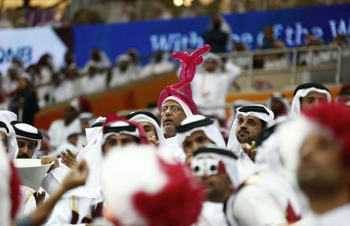 Nú stendur yfir leikur Katar og Þýskalands í hinni stórglæsilegu Lusail-íþróttahöll í samnenfdri borg rétt utan Doha í Katar. Beina textalýsingu frá leiknum má finna hér. Þó svo að fáir innfæddir Katarbúar séu lykilmenn í landsliðinu eru heimamenn gríðarlega vel studdir af fjölmörgum áhorfendum sem eru mættir í höllina. Hún rúmar um sautján þúsund manns í sæti og er setið í flestum þeirra - þó ekki öllum. Eva Björk Ægisdóttir tók þessar mögnuðu myndur af stemningunni hér í Lusail.