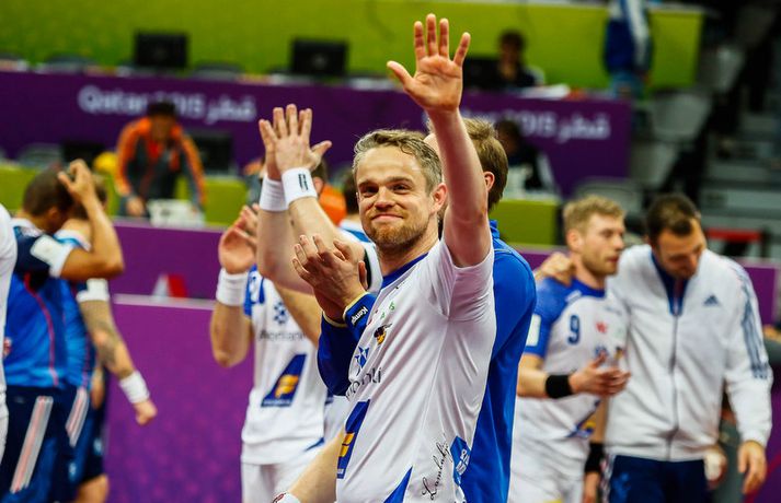 HM 2015 í Katar Tengdar fréttir Aron Kristjáns: Erfitt að stöðva ísskápinn á línunni Landsliðsþjálfarinn var ánægður með sterkan leik strákanna í jafnteflinu gegn Frakklandi. 20. janúar 2015 20:34 Sverre: Gott að vera svekktur eftir jafntefli við Frakka Varnarjaxlinn pirraður á línunni sem dómararnir hafa tekið á mótinu. 20. janúar 2015 19:49 Umfjöllun, viðtöl og myndir: Frakkland - Ísland 26-26 | Besta frammistaða strákanna í jafnteflisleik Evrópumeistarar Frakklands þurftu allt sitt og meira til gegn góðu íslensku liði í Duhail. 20. janúar 2015 15:55 Einkunnir Gaupa: Þrír nálægt fullu húsi Aron Pálmarsson, Snorri Steinn Guðjónsson og Ásgeir Örn Hallgrímsson báru af í íslenska liðinu gegn Frakklandi. 20. janúar 2015 20:54 Snorri Steinn: Við vorum flottir Snorri Steinn Guðjónsson var ánægður með leik íslenska landsliðsins gegn því franska í Doha í kvöld. 20. janúar 2015 21:15 Arnór: Megum ekkert vera of góðir með okkur Skyttan öfluga var kátur með hvernig liðið kláraði sóknirnar gegn Frakklandi. 20. janúar 2015 20:11 Björgvin: Síðasta sem fer hjá þessum gaurum er sjálfstraustið Landsliðsmarkvörðurinn ánægður með að sjá íslensku geðveikina aftur komna. 20. janúar 2015 20:01 Róbert: Enginn vissi hvað mátti gera Róbert Gunnarsson var svekktur með að hafa ekki unnið Evrópumeistara Frakka á HM í Katar í kvöld. 20. janúar 2015 20:18 Mest lesið Tindastóll - Stjarnan 96-95 | Ótrúlegur endir á Króknum Körfubolti Grafalvarleg staða: „Þurfum að fara í sársaukafullar aðgerðir“ Handbolti Fram þvertekur fyrir metnaðarleysi og leitar að nýjum þjálfurum Íslenski boltinn Ógeðslega erfitt og ógeðslega vont en brosir oft í viku á eftir Sport Jóladagskráin klár: Hefðin brotin og aðeins einn leikur annan í jólum Enski boltinn ÍR - Ármann 96-83 | Nýliðarnir enn í leit að fyrsta sigrinum Körfubolti Gísli semur við Skagamenn Íslenski boltinn Nefna greinar Íslandsmótsins í CrossFit í höfuðið á íslenskum íþróttakonum Sport „Nú er nóg komið“ Fótbolti Arnór Snær snýr aftur heim Handbolti Fleiri fréttir Andri kallaður inn í hópinn fyrir meiddan Hauk Arnór Snær snýr aftur heim Besta handboltadeild heims missir aðalstyrktaraðila sinn Grafalvarleg staða: „Þurfum að fara í sársaukafullar aðgerðir“ ÍR áfram eftir sigur í Mosfellsbæ Uppgjörið: Þýskaland - Ísland 42-31 | Þrot í Þýskalandi Tilkynnti um óléttu og nýjan samning á sama tíma Patrekur hættur eftir dapurt gengi Stjörnunnar Rekinn fyrir ummæli sín um krabbameinssjúka handboltagoðsögn Janus Daði myndaður í heimsókn hjá Barcelona Epicbet sýni handboltann í leyfisleysi: „Enda ólöglegar síður“ Teitur inn í landsliðið Gísli bjó til meira en þriðjung markanna Haukur magnaður í sigri Löwen Blær skoraði þrjú og lagði upp jöfnunarmarkið KA/Þór sótti sigur gegn Fram og stigalausar Stjörnukonur Fram kjöldró HK og spenna í Eyjum Meistararnir unnu gegn ÍBV og ÍR hafði betur gegn Selfyssingum Donni og félagar björguðu stigi undir lokin Afturelding komst upp að hlið Hauka Seldu bleika búninginn hennar Herrem fyrir meira en milljón „Leið vel þegar ég fór inn úr færinu“ Uppgjörið FH - Haukar 27-26 | Birgir Már tryggði FH sigur eftir spennutrylli Bernard fór mikinn en Valsmenn sluppu með sigurinn Fyrsti sigur Þórsara síðan í byrjun september Ómar Ingi með fullkomnan leik í Meistaradeildinni Guðjón Valur og lærisveinar hársbreidd frá því að vinna Kiel Hlakka til að sjá Viktor Gísla aftur og senda honum skilaboð Neyddar í sömu stöðu og Ísland og límdu melónur á skóna Hatar hvítu stuttbuxurnar Sjá meira