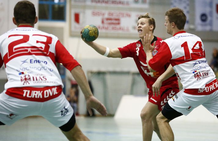 Haukar komust áfram í EHF bikarnum eftir frábæran sigur 13. september 2015 18:50 Úr leiknum í dag. Mynd/Eva Björk Haukar komust áfram í undankeppni EHF-bikarsins í handbolta í dag eftir 26-20 sigur á ítalska félaginu SSV Bozen Loacker á Ítalíu í dag. Haukar unnu einvígið þrátt fyrir að því hafi lokið 50-50 en Hafnfirðingar skoruðu fleiri mörk í leiknum sem þeir voru skráðir á útivelli. Fóru báðir leikirnir fram á heimavelli Bozen í Ítalíu. Haukar leiddu í hálfleik 15-10 og náðu að bæta við markinu sem til þurfti í seinni hálfleik sem tryggði sætið í næstu umferð. Kom sigurmarkið af vítalínunni þegar skammt var eftir. Hægt er að sjá í myndaalbúminu hér fyrir ofan myndir sem Eva Björk Ægisdóttir tók í leiknum í dag. Olís-deild karla Mest lesið Grafalvarleg staða: „Þurfum að fara í sársaukafullar aðgerðir“ Handbolti Fram þvertekur fyrir metnaðarleysi og leitar að nýjum þjálfurum Íslenski boltinn Ógeðslega erfitt og ógeðslega vont en brosir oft í viku á eftir Sport Gísli semur við Skagamenn Íslenski boltinn „Nú er nóg komið“ Fótbolti Nefna greinar Íslandsmótsins í CrossFit í höfuðið á íslenskum íþróttakonum Sport Arnór Snær snýr aftur heim Handbolti Skortir Liverpool breidd þrátt fyrir gríðarleg fjárútlát síðasta sumar? Enski boltinn Félagið í greiðslustöðvun en borgaði öll laun degi fyrr Enski boltinn Besta handboltadeild heims missir aðalstyrktaraðila sinn Handbolti Fleiri fréttir Andri kallaður inn í hópinn fyrir meiddan Hauk Arnór Snær snýr aftur heim Besta handboltadeild heims missir aðalstyrktaraðila sinn Grafalvarleg staða: „Þurfum að fara í sársaukafullar aðgerðir“ ÍR áfram eftir sigur í Mosfellsbæ Uppgjörið: Þýskaland - Ísland 42-31 | Þrot í Þýskalandi Tilkynnti um óléttu og nýjan samning á sama tíma Patrekur hættur eftir dapurt gengi Stjörnunnar Rekinn fyrir ummæli sín um krabbameinssjúka handboltagoðsögn Janus Daði myndaður í heimsókn hjá Barcelona Epicbet sýni handboltann í leyfisleysi: „Enda ólöglegar síður“ Teitur inn í landsliðið Gísli bjó til meira en þriðjung markanna Haukur magnaður í sigri Löwen Blær skoraði þrjú og lagði upp jöfnunarmarkið KA/Þór sótti sigur gegn Fram og stigalausar Stjörnukonur Fram kjöldró HK og spenna í Eyjum Meistararnir unnu gegn ÍBV og ÍR hafði betur gegn Selfyssingum Donni og félagar björguðu stigi undir lokin Afturelding komst upp að hlið Hauka Seldu bleika búninginn hennar Herrem fyrir meira en milljón „Leið vel þegar ég fór inn úr færinu“ Uppgjörið FH - Haukar 27-26 | Birgir Már tryggði FH sigur eftir spennutrylli Bernard fór mikinn en Valsmenn sluppu með sigurinn Fyrsti sigur Þórsara síðan í byrjun september Ómar Ingi með fullkomnan leik í Meistaradeildinni Guðjón Valur og lærisveinar hársbreidd frá því að vinna Kiel Hlakka til að sjá Viktor Gísla aftur og senda honum skilaboð Neyddar í sömu stöðu og Ísland og límdu melónur á skóna Hatar hvítu stuttbuxurnar Sjá meira