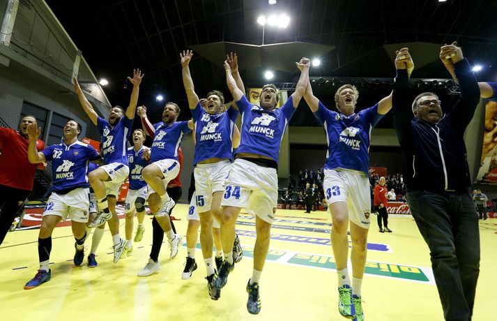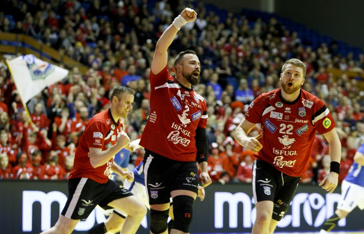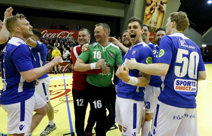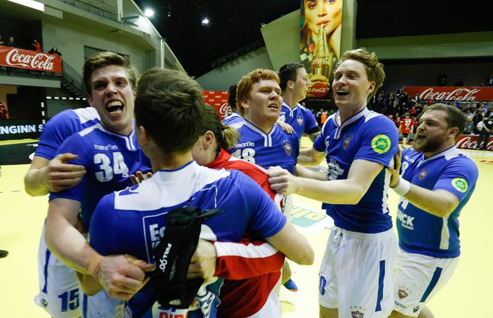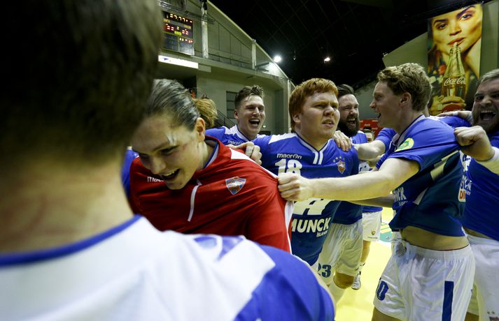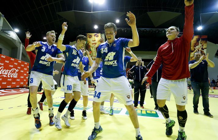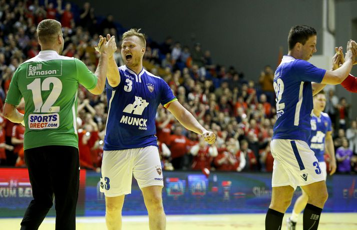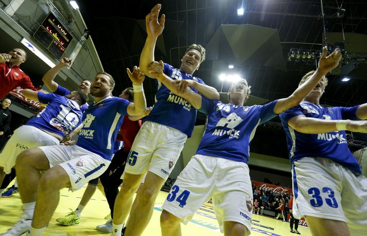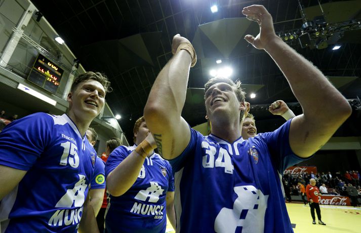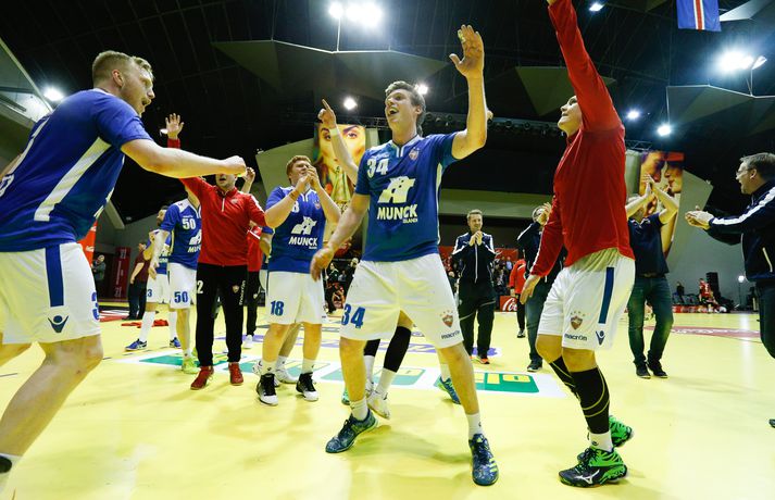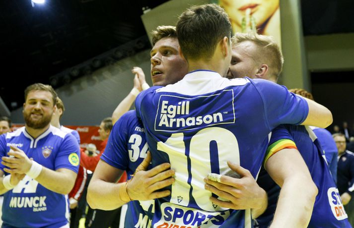 Anton fagnar með félögum sínum.vísir/andri marinó