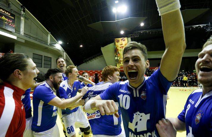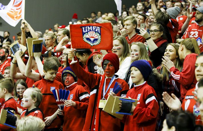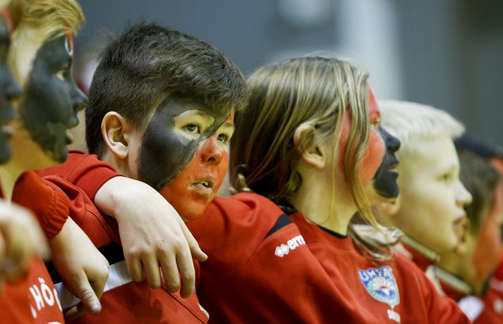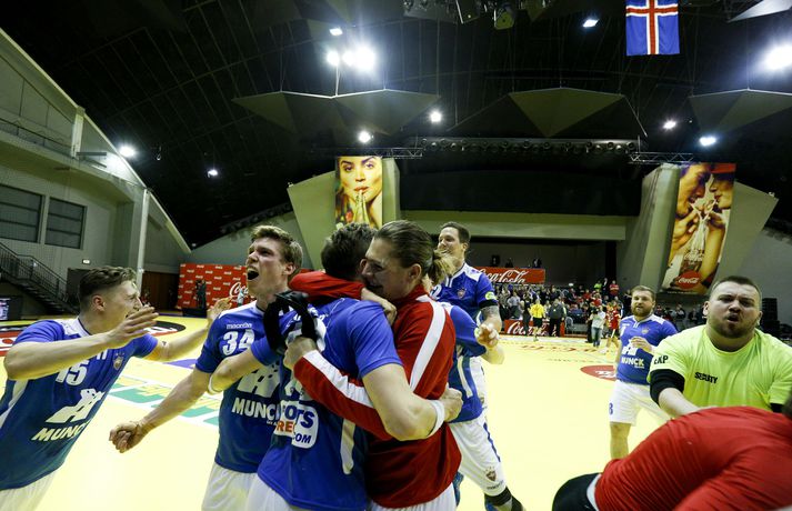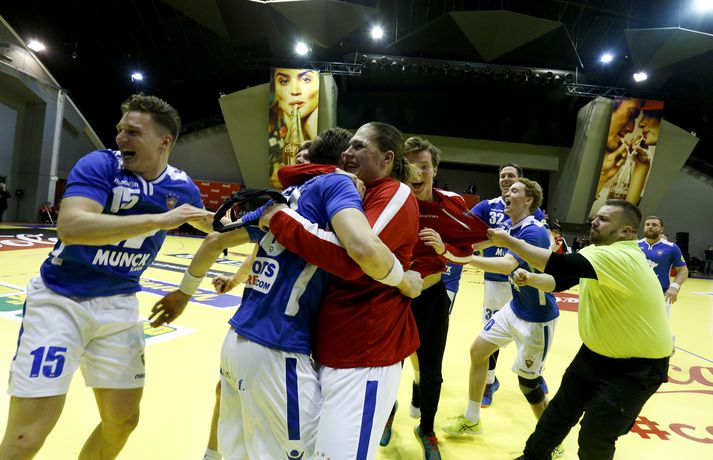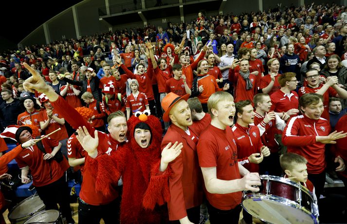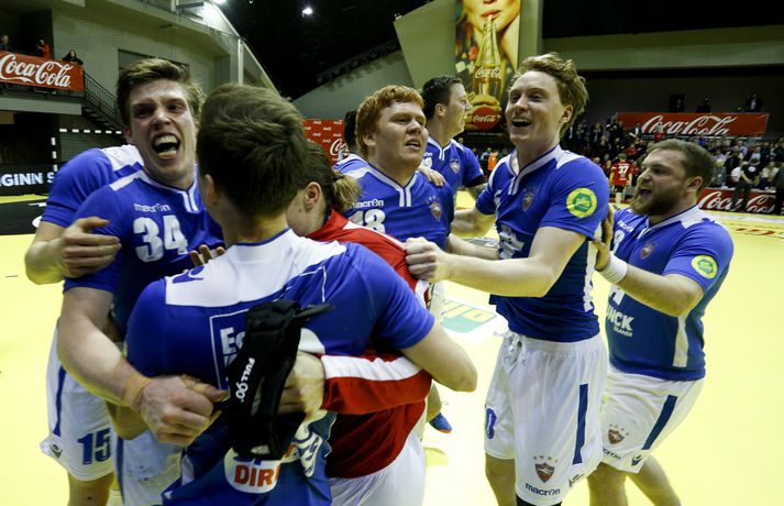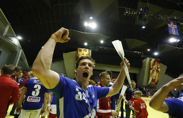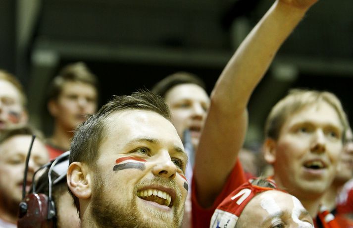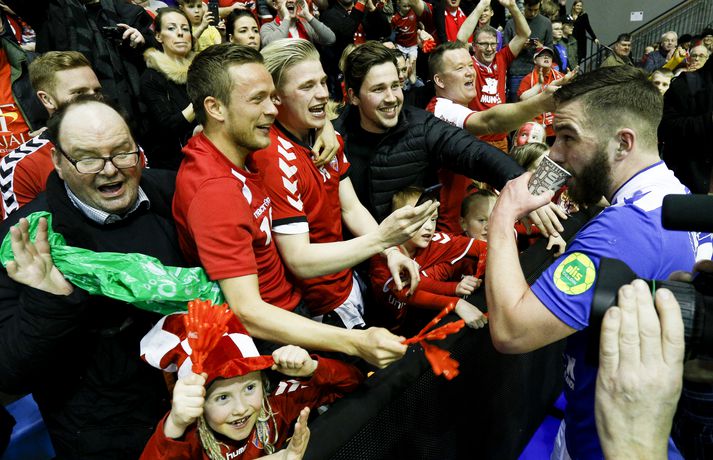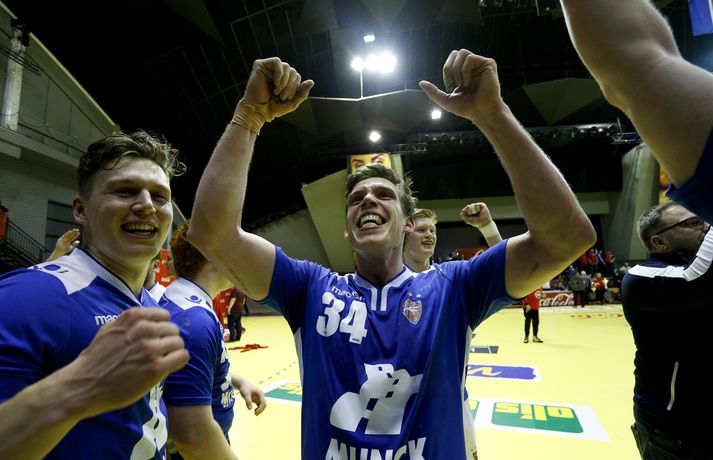 Anton fagnar með félögum sínum.vísir/andri marinó