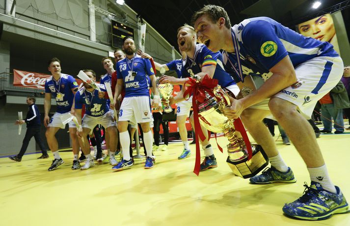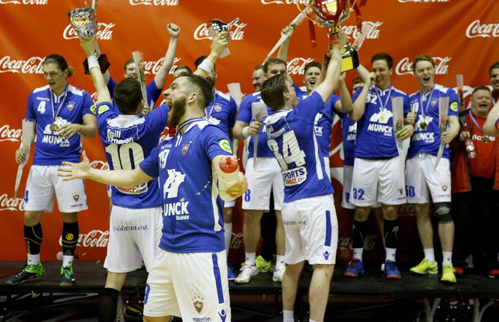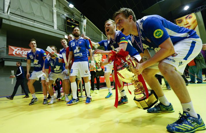 „Við fögnum þessu. Þetta er titill og við fögnum þessu vel og eigum það skilið. Þetta er búin að vera mikil törn og við gátum ekki einu sinni fagnað því að fara áfram í Evrópukeppninni út af. Það er tvöfaldur fögnuður í kvöld,“ sagði Hlynur.