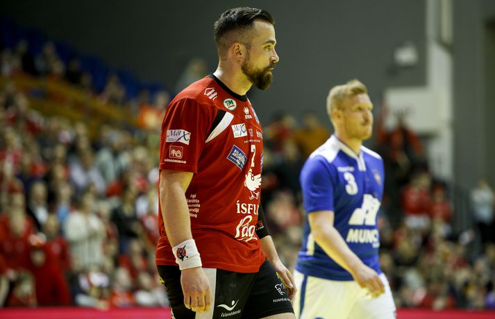 „Þetta er tæki sem við notum. Ég byrja flest alla leiki, klára fyrri hálfleik og fæ svo extra langa hvíld í byrjun þess seinni. Ef Siggi [Sigurður Ingiberg Ólafsson] er heitur heldur hann áfram, annars er ég klár í að loka leiknum,“ sagði Hlynur sem hrósaði varnarleik Vals.