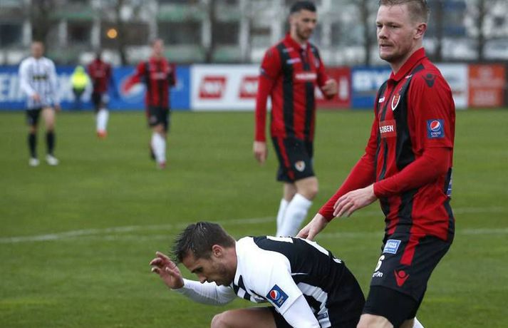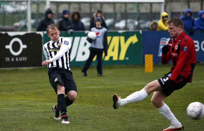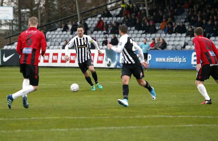 Víkingar unnu sætan sigur á KR í 1.umferð Pepsi-deildar karla í Vesturbænum í kvöld. KR komst yfir í fyrri hálfleik en gestirnir svöruðu með tveimur mörkum í þeim síðari. KR byrjaði mun betur og strax á 9.mínútu skoraði Tobias Thomsen eftir góða sendingu frá landa sínum Morten Beck. Eftir markið voru það gestirnir sem voru sterkari og hefðu getað jafnað fyrir hlé. Þeir fengu færi og það besta fékk Arnþór Ingi Kristinsson en Stefán Logi Magnússon í marki KR varði vel. Seinni hálfleikur byrjaði rólega en á 60.mínútu jafnaði Dofri Snorrason eftir góða sendingu frá Ívari Erni Jónssyni. Gestirnir notuðu síðan svo til sömu uppskrift þegar þeir komust í 2-1 á 72.mínútu. Þá fóru þeir upp hægra megin og Vladimir Tufegdzig sendi boltann fyrir á Geoffrey Castillion sem skoraði af markteig. Það sem eftir var sóttu KR-ingar meira en náðu aldrei að ógna marki Víkinga að ráði.Af hverju vann Víkingur?Þeir voru einfaldlega beittari í sínum sóknaraðgerðum og lokuðu svo vel á leikmenn KR í sínum aðgerðum. Eftir að Óskar Örn Hauksson hafði átt ágæta spretti í byrjun leiks náðu varnar- og miðjumenn Víkinga algjörlega að spila hann út úr leiknum og Milos þjálfari Víkinga talaði um það eftir leik að þeir hefðu lagt sérstaka áherslu á að stoppa Óskar Örn. Sóknarlega þurfa KR-ingar að skoða sinn leik því þeir náðu lítið að ógna marki Víkinga í síðari hálfleiknum og var sérstakt að sjá hvernig leikur heimamanna koðnaði niður fljótlega eftir að þeir komust yfir.Hverjir stóðu uppúr? Hjá Víkingum var Ívar Örn Jónsson öflugur vinstra megin og átti ófáa sprettina upp kantinn. Hann lagði upp markið fyrir Dofra og átti góðan leik fyrir gestina. Geoffrey Castillion sýndi ekki mikið framan af leik en vann sig ágætlega inn í spilið og skoraði gott sigurmark í síðari hálfleik. Miðverðir Víkinga, þeir Halldór Smári Sigurðsson og Alan Lowing, áttu sömuleiðis fínan leik sem og Dofri Snorrason sem skoraði jöfnunarmarkið.Hvað gekk illa? KR-ingum gekk bölvanlega að skapa sér einhver færi að ráði eftir að þeir skoruðu mark sitt í upphafi. Sóknarleikur þeirra gekk mikið út á það að finna Óskar Örn Hauksson og virtist lítið gerast nema hann fengi boltann. Víkingum tókst hins vegar að loka mjög vel á hann. Í fyrri hálfleiknum gekk mönnum frekar illa að hafa hemil á tæklingunum og fóru fimm gul spjöld á loft á fyrstu 45 mínútunum. Þau hefðu getað orðið fleiri í þeim síðari og var Skúli Jón Friðgeirsson til dæmis heppinn að fá ekki sitt annað gula spjald seint í leiknum þegar hann braut á leikmanni Víkinga í skyndisókn.Hvað gerist næst? KR heldur næst til Ólafsvíkur og mætir hinu Víkingsliðinu í deildinni. Þar verða þeir að sækja sigur því annars fer að fara um menn í Vesturbænum. Víkingar fá heimaleik í næstu umferð gegn Grindavík sem gerði jafntefli við Stjörnuna í kvöld. Milos þjálfari vildi halda sínum mönnum á jörðinni eftir leikinn í kvöld því hann talaði um að leikurinn gegn nýliðunum af Suðurnesjunum yrði ekkert auðveldari en sá gegn KR.Einkunnir leikmanna: KR (3-4-3) Stefán Logi Magnússon 6 - Arnór Sveinn Aðalsteinsson 5, Skúli Jón Friðgeirsson 4, Gunnar Þór Gunnarsson 4 - Morten Beck 6, Pálmi Rafn Pálmson 4, Finnur Orri Margeirsson 5, Ástbjörn Þórðarson 3 - Óskar Örn Hauksson 5, Tobias Thomsen 6, Kennie Chopart 5. Víkingur (4-3-3) Róbert Örn Óskarsson 6 - Dofri Snorrason 6, Alan Lowing 6, Halldór Smári Sigurðsson 7, Ívar Örn Jónsson 7 (maður leiksins) - Arnþór Ingi Kristinsson 5, Milos Ozegovic 5, Alex Freyr Hilmarsson 6 - Vladimir Tufegdzig 6, Geoffrey Castillion 7, Ragnar Bragi Sveinsson 5. Milos: Finnst þetta sanngjarn sigurMilos Milojevic þjálfari Víkinga var hæstánægður með sigur sinna manna á KR-vellinum. Hann talaði um það fyrir leik að það væri frábært að hefja mótið gegn KR. „Ég vissi af hverju ég var að segja þetta. Það þarf ekki að mótivera leikmenn fyrir leik á móti KR og FH, þeir gíra sig sjálfir upp. Það var í raun okkur að falli í upphafi því við vorum of spenntir. Eftir að þeir skora mark þá jöfnum við okkur og byrjum að spila,“ sagði Milos í samtali við Vísi eftir leikinn í kvöld. „Það hefði ekki verið ósanngjarnt ef við hefðum jafnað fyrir hálfleik en það kom á réttum tíma í þeim síðari. Síðustu 30 mínútur fannst mér við spila virkilega vel og eins og ég vil sjá okkur spila,“ bætti Milos við en KR ógnaði marki Víkinga lítið eftir að þeir komust yfir. KR byrjaði þó leikinn betur og komust yfir strax á 9.mínútu. Þá tóku Víkingar sig hins vegar á og hefðu vel getað jafnað fyrir hlé. „Við vorum aðeins of feimnir í byrjun og sýndum þeim of mikla virðingu. Þeir eru með mjög gott og skipulagt lið og þegar leikurinn byrjar þá þarftu að vera hugrakkur og hafa trú á því sem þú gerir. Ég bað menn um það í hálfleik og mínir gerðu það frábærlega. Þetta var erfiður leikur og á einhverjum tímapunkti gat sigurinn lent hvoru megin sem var en mér fannst þetta sanngjarn sigur.“ Varnarlega voru Víkingar öflugir og virtust leggja mikla áherslu á að stoppa Óskar Örn Hauksson sem var frábær á undirbúningstímabilinu. „Það eru engin geimvísindi að þeirra besti maður er Óskar Örn. Ég hef hælt honum mikið og hann skorar alltaf á móti okkur. Við unnum virklega vel í kringum hann, hann átti nokkra spretti en átti ekki sinn besta leik.“ „Við missum okkur ekkert yfir þessum þremur stigum. Þetta var eitt af tuttugu og tveimur erfiðum verkefnum í sumar og þetta verður ekkert léttara gegn Grindavík, ég lofa því.“ Nýr framherji Víkinga, Geoffrey Castillion, skoraði í sínum fyrsta mótsleik en Víki
