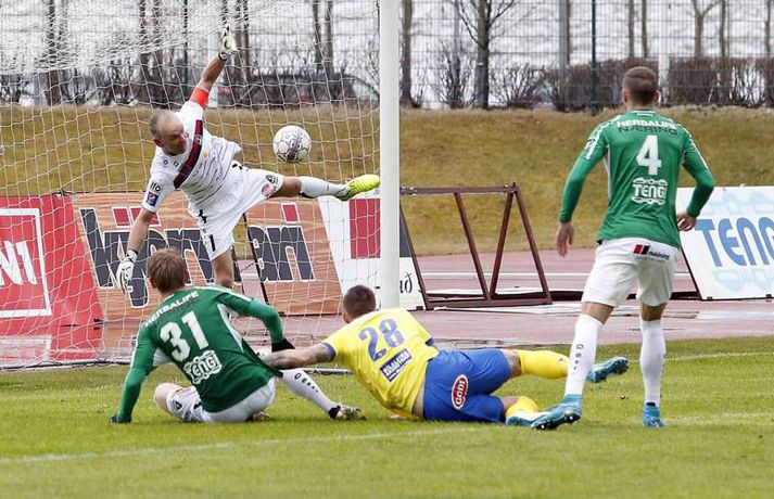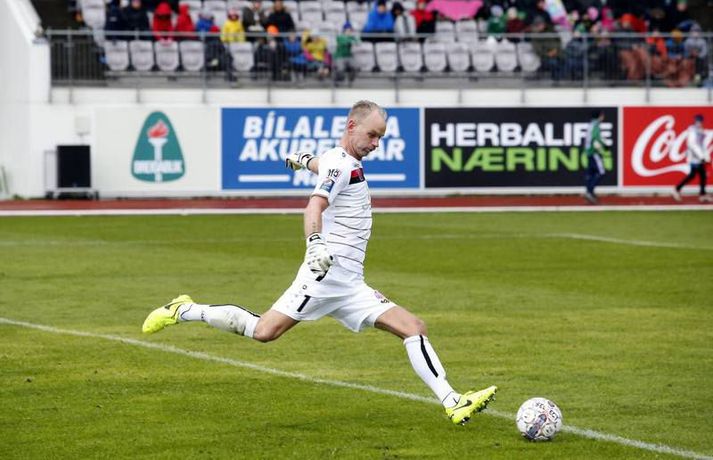 Umfjöllun, viðtöl og einkunnir: Breiðablik - KA 1-3 | Draumabyrjun nýliðanna Eiríkur Stefán Ásgeirsson skrifar 1. maí 2017 19:30 KA-menn fagna marki Elfars Árna Aðalsteinssonar í kvöld. Vísir/Stefán KA-menn byrja vel á sínu fyrsta tímabili í efstu deild í þrettán ár en þeir sóttu þrjú stig á Kópavogsvöll í 1. umferð Pepsi-deildar karla í fótbolta í kvöld. KA skoraði tvö mörk í fyrri hálfleiknum og vann á endanum 3-1 sigur eftir að Blikar minnkuðu muninn í lokin. Darko Bulatovic, Elfar Árni Aðalsteinsson og Ásgeir Sigurgeirsson skoruðu mörkin en Hallgrímur Mar Steingrímsson lagði upp tvö þeirra. Þetta er því annað árið í röð sem Blikar byrja Íslandsmótið á því að tapa á heimavelli á móti nýliðum í fyrstu umferðinni. Akureyringar byrjuðu leikinn af krafti og settu pressu á vörn Blika nánast frá fyrstu mínútu. Aðstæður voru erfiðar, rok og mikil rigning, en það var ekki að sjá að það skipti Akureyringa nokkru máli - þeir létu vel fyrir sér finna. Þessi pressa borgaði sig þegar Bulatovic skoraði með góðu skoti eftir sendingu Steinþórs Freys Þorsteinssonar, sem var að spila sinn fyrsta leik í Pepsi-deildinni eftir langa fjarveru í atvinnumennsku. Eina sem skyggði á fyrri hálfleikinn hjá KA var að hann fór meiddur af velli. Pressan hélt áfram hjá KA-mönnum og Elfar Árni Aðalsteinsson, sem var að spila á sínum gamla heimavelli, skoraði á 43. mínútu eftir mistök hjá Gunnleifi Gunnleifssyni, markverði Blika. Heimamenn reyndu að róa taugarnar og koma sér aftur inn í leikinn í upphafi síðari hálfleiks, en það bar lítinn árangur. Akureyringar vörðust vel og uppskáru þriðja markið eftir laglega sókn, er Hallgrímur Mar Steingrímsson renndi boltanum á Ásgeir sem skoraði með föstu skoti. Andri Rafn Yeoman nýtti sér slæma hreinsun Guðmans Þórissonar á 70. mínútu og skoraði fyrsta mark Blika með góðu skoti en við markið rönkuðu heimamenn loksins við sér. Þrátt fyrir nokkur hálffæri á lokakafla leiksins var forystu KA aldrei ógnað að verulegu ráði. Oliver Sigurjónsson átti reyndar skot í slána úr aukaspyrnu en nær komust Blikar ekki.Af hverju vann KA? Nýliðarnir frá Akureyri voru mun grimmari í öllum sínum aðgerðum og stjórnuðu leiknum fyrstu 70 mínúturnar, þar til að Blikar gerðu sig loksins líklega til að ógna marki gestanna að einhverju ráði. Margir í liði KA áttu góðan dag á meðan að sárafáir, ef nokkrir, voru líkir sjálfum sér í liði heimamanna. KA var reiðubúið í baráttuna í slagviðrinu frá fyrstu mínútu og það gerði útslagið. Það er áhyggjuefni fyrir Blika að þeir virtust engan vegir tilbúnir í þennan slag.Hverjir stóðu upp úr? Guðmann Þórisson átti góðan dag í vörn KA á gamla heimavellinum sínum en allir í liði KA voru sannfærandi í kvöld. Aleksandar Trninic og Darko Bulatovic líta báðir mjög vel út og Ásgeir Sigurgeirsson átti góða spretti - engan betri en þegar hann skoraði markið sitt. Hallgrímur Mar átti líka skínandi góðan leik og þannig mætti lengi áfram telja.Hvað gekk illa? Það er áhyggjuefni fyrir Blika að þeir virðist ætla að byrja þetta mót jafn illa og þeir enduðu síðasta tímabil. Hvort sama vandamálið sé enn við lýði og á haustmánuðum síðasta tímabils skal ósagt látið en það er eðlilegt að velta því fyrir sér. Það býr heilmikið í liði Blika en það sýndu þeir engan veginn í kvöld. Sérstakt áhyggjuefni er sóknarleikur Breiðabliks. Blikar brugðust við markaleysi síðustu ára með því að fá þrjá öfluga sóknarmenn til liðsins en enginn þeira komst í takt við leikinn í kvöld.Hvað gerist næst? KA-menn eiga erfiða leiki í upphafi móts og mæta næst Íslandsmeisturum FH á útivelli. En ef þeir sýna sama kraft og þeir gerðu í kvöld er alveg ljóst að þeir geta valdið lærisveinum Heimis Guðjónssonar usla. Akureyringar eru hungraðir og það er mikill kostur. Blikar eiga næsta leik gegn Fjölni á útivelli en bæði lið eru með óbragð í munni eftir fyrstu umferðinni og vilja sjálfsagt nýta þennan leik til að kvitta fyrir það.Einkunnir leikmanna: Brieðablik (4-3-3): Gunnleifur Gunnleifsson 5 - Davíð Kristján Ólafsson 4, Damir Muminovic 6, Gísli Eyjólfsson 5, Guðmundur Friðriksson 5 - Oliver Sigurjónsson 5, Arnþór Ari Atlason 3 (61. Höskuldur Gunnlaugsson x), Andri Rafn Yeoman 5 (79. Kolbeinn Þórðarson -) - Aron Bjarnaxon 3 (87. Sólon Breki Leifsson -), Martin Lund Pedersen 3, Hrvoje Tokic 3. KA (4-3-3): Srdjan Rajkovic 7, Bjarki Þór Viðarsson 6, Guðmann Þórisson 8 (maður leiksins), Callum Williams 7, Darko Bulotovic 7 - Almarr Ormarsson 6, Aleksandar Trninic 7, Steinþór Freyr Þorsteinsson 7 (33. Emil Lyng 6) - Ásgeir Sigurgeirsson 7 (81. Daníel Hafsteinsson -), Hallgrímur Mar Steingrímsson 7, Elfar Árni Aðalsteinsson 6 (74. Ólafur Aron Pétursson -). Túfa: Baráttan til fyrirmyndarSrdjan Tufegdzic, þjálfari KA.vísir/stefán„Það er frábært að vera kominn með liðið aftur í efstu deild og byrja á svona sigri. Ég er afar stoltur af strákunum í dag,“ sagði Srdjan Tufegdzic, þjálfari KA, eftir góðan 3-0 sigur á Breiðabliki í kvöld. „Við vorum að spila gegn lið sem ætlar sér að verða Íslandsmeistari við erfiðar aðstæður - það var mikill vindur og völlurinn blautur. Við fengum bara tvær æfingar á grasi fyrir norðan en það var alveg fyrir fyrirmyndar hvernig menn voru að berjast fyrir KA í kvöld.“ Hann var afar ánægður með sterka byrjun hans manna í kvöld. „Við mættum inn á leikinn til að vinna hann. Við vorum ekki að verjast og bíða bara eftir því að þeir gerðu mistök. Við settum pressu á boltamanninn þeirra og eltum þá út um allt.“ „Það var svo eðlilegt að við gáfum aðeins eftir þ