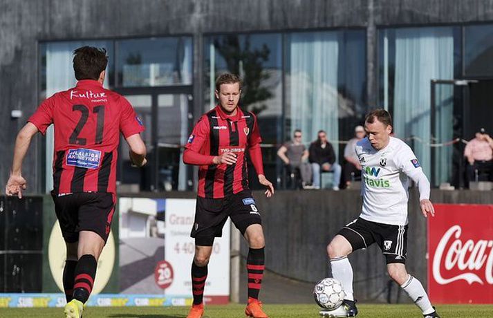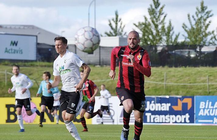 FH og Víkingur skildu jöfn 2-2 í Kaplakrika í kvöld í áttundu umferð Pepsi-deildar karla en þetta var fimmti leikur Víkinga í röð án ósigurs eftir að Logi Ólafsson tók við liðinu í vor. Steven Lennon kom FH-ingum yfir í tvígang í leiknum en Arnþór Ingi Kristinsson og Ívar Örn Jónsson jöfnuðu metin fyrir Víkinga, það síðara eftir glæsilegt samspil Ívars og Ragnars Braga stuttu eftir annað mark Lennon. Erfiðleikar Íslandsmeistaranna halda því áfram en FH er komið átta stigum á eftir toppliði Vals og hefur liðið aðeins unnið einn heimaleik af fjórum.Af hverju varð jafntefli? Að lokum er hægt að tala um verðskuldað jafntefli en eftir að hafa verið slakari aðilinn framan af komu gestirnir úr Fossvogi sterkari til leiks í seinni hálfleik og verðskulduðu að jafna metin í upphafi seinni hálfleiks. Jöfnunarmark Ívars kom svo aðeins mínútum eftir að Lennon kom FH aftur yfir og gaf það FH engan möguleika á að reyna að drepa leikinn niður á nýjan leik. FH-ingar voru hættulegri á lokamínútunum og hefðu með smá heppni getað stolið sigrinum en það virðist einhver dofi vera yfir liðinu sem klárar ekki leiki sem FH er vant að klára.Þessir stóðu upp úr Steven Lennon var duglegur að koma sér í færi hjá FH og var óheppinn að ná ekki að fullkomna þrennuna með skoti í upphafi seinni hálfleiks en hann og Atli Guðnason voru duglegir að reyna að finna svæðin á milli varnar og sóknar. Hjá Víkingum áttu markaskorararnir tveir flottan leik, Arnþór Ingi var öflugur að brjóta niður sóknir og dreifa boltanum vel inn á miðjunni en Ívar vann sig inn í leikinn eftir því sem leið á hann.Hvað gekk illa? Heimir Guðjónsson, þjálfari FH, talaði um það í viðtölum eftir leik að FH-liðið ætti í erfiðleikum með að komast yfir þar sem liðið félli of langt aftur í stað þess að reyna að drepa leiki eins og liðið átti til. Besti kafli liðsins kom í kringum markið en FH átti álitlegar sóknir stuttu eftir fyrsta mark leiksins en fljótlega færðu þeir sig aftar á völlinn og minnkuðu sóknarþungann.Hvað gerist næst? Víkingar mæta nöfnum sínum frá Ólafsvík á heimavelli eftir að hafa tekið fjögur stig úr leikjum gegn FH og Stjörnunni á útivelli en það hefur reynst liðinu erfitt að fylgja eftir leikjum gegn stóru liðunum á pappírum þegar þau mæta minni spámönnum. FH-ingar fara til Vestmannaeyja og mæta ÍBV sem hefur verið upp og niður í leikjum sumarsins en það er ljóst að FH verður að fara að raka inn stigum þar sem liðið er komið átta stigum á eftir toppliði Vals. Davíð: Varnarleikurinn okkar í öðru markinu er ekki til útflutnings„Ég held að það sé ekki hægt að tala um krísu sem slíka, krísa er full stórt orð þótt að við séum allir ósáttir með stigasöfnunina til þessa,“ sagði Davíð Þór Viðarsson, fyrirliði FH, aðspurður hvort krísuástand væri komið upp í Hafnarfirði eftir 2-2 jafntefli gegn Víking í kvöld. FH-ingum gengur illa að halda forskoti. „Í fyrra vorum við að spila góðan varnarleik og náðum að sigla sigrum heim á því þrátt fyrir að vera ekkert að spila neitt frábæran sóknarleik. Það gengur erfiðlega að halda markinu hreinu og við erum að leka inn mörkum og það er bara ótrúlega fúlt,“ sagði Davíð sem var sérstaklega ósáttur með varnarleikinn í öðru marki Víkinga. „Þetta var mjög vel klárað eftir góða sókn en varnarleikurinn okkar í því marki er ekki til útflutnings. Ívar tekur snertingu inn í teignum og fær svo tíma til að velja sér stað til að leggja boltann.“ FH er komið átta stigum á eftir toppliði Vals eftir átta umferðir. „Við ætluðum okkur að vera á toppnum á þessum tímapunkti en við getum ekki hugsað út í það. Við þurfum að ná að sleikja sárin og mæta almennilega inn í næsta leik, við getum ekkert verið að hugsa lengra en það.“ Ívar Örn: Fáum kjaftshögg eftir að hafa jafnað leikinn„Miðað við að lenda tvisvar undir á þessum velli er flott að taka stig úr þessu en við erum samt ekki alveg sáttir,“ sagði Ívar Örn Jónsson, leikmaður Víkinga, hreinskilinn að leikslokum í kvöld. „Við fáum svolítið kjaftshögg eftir að hafa jafnað leikinn þegar þeir fá víti. Þegar við jöfnum leikinn erum við með meðbyrinn en það drap andann okkar í smá en að leikslokum er fínt að taka stig úr því sem komið var.“ Var þetta fimmti leikur Víkinga í röð án ósigurs. „Það býr heilmikið í þessu liði, við höfum sýnt það upp á síðkastið og við þurfum að halda því áfram. Við þurfum bara að hætta að gefa þessi mörk á okkur, við höfum verið að vinna í grunnvinnuni og ekkert verið að finna upp hjólið en með hverju stigi kemur léttari andi.“ Ívar er með einn öflugasta vinstri fót landsins en hann skoraði glæsilegt mark með hægri fæti. „Það er aðeins sjaldgæfara, ég nota hann aðallega til stuðnings en hann skilaði góðu verki í dag. Það var glæsilegt að ná að klára þessa sókn með svona marki.“ Heimir: Alltaf sama gamla tuggan„Það er alveg örugglega hægt að tala um krísu í Hafnarfirði, mér fannst við góðir í upphafi og komumst sanngjarnt yfir en eftir það var þetta bara sama gamla tuggann,“ sagði Heimir Guðjónsson, þjálfari FH, vonsvikinn að leikslokum. „Eins og vanalega þegar við komumst yfir þá fara leikmenn í að reyna að sleppa eins auðveldlega og hægt er. Við hleyptum þeim inn í leikinn á nýjan leik í staðin fyrir að sýna drápseðli og þeir jöfnuðu bara sanngjarnt.“ Vonbrigðin leyndu sér ekki hjá Heimi. „Við svörum með marki en þá tók bara sama dæmi við aftur. Við fórum bara að bíða og sjá hvað þeir ætluðu að gera í staðin fyrir að taka frumkvæðið. Í