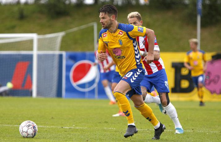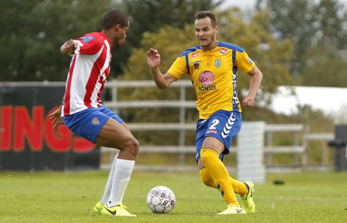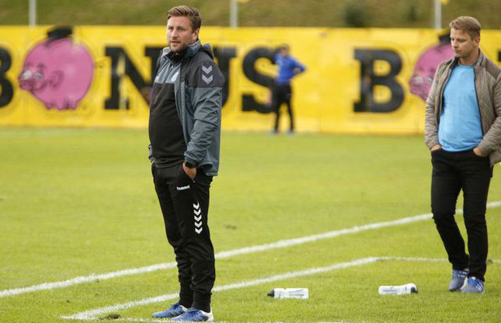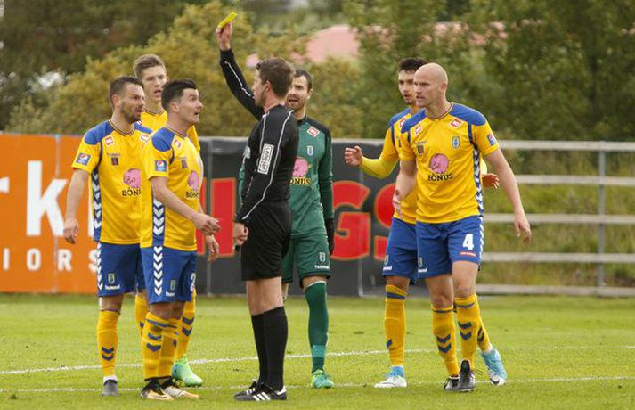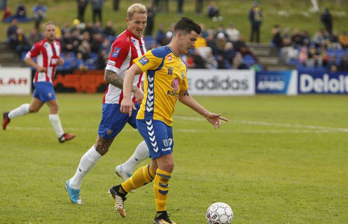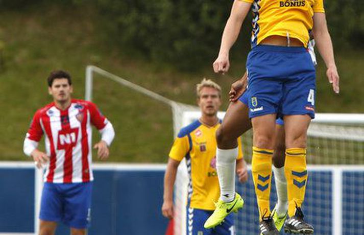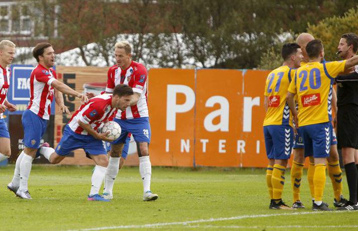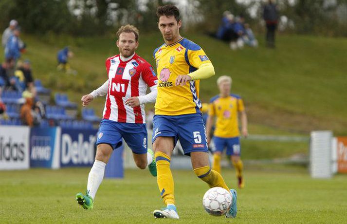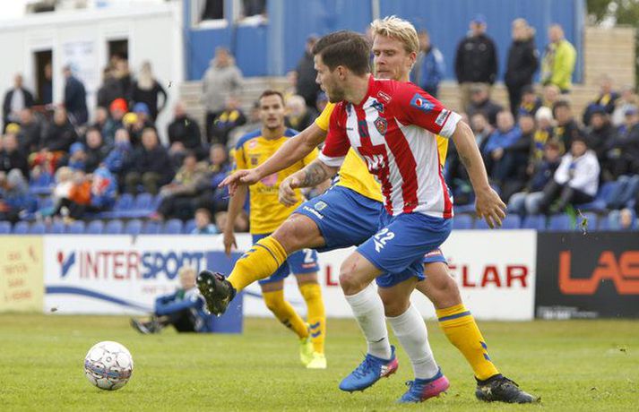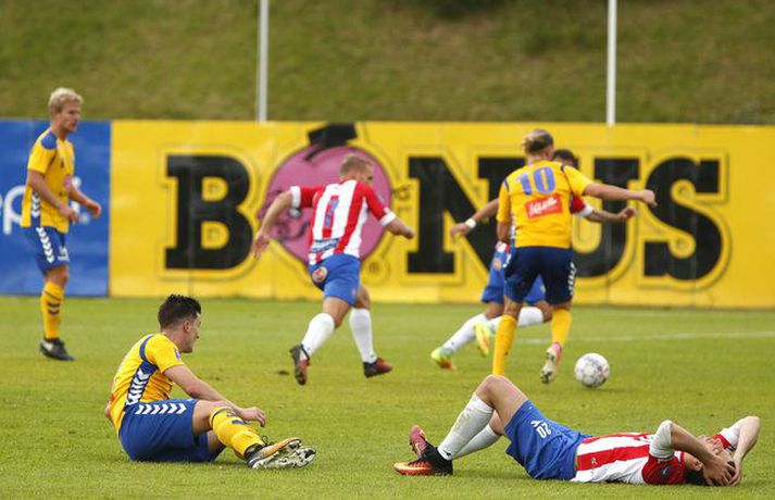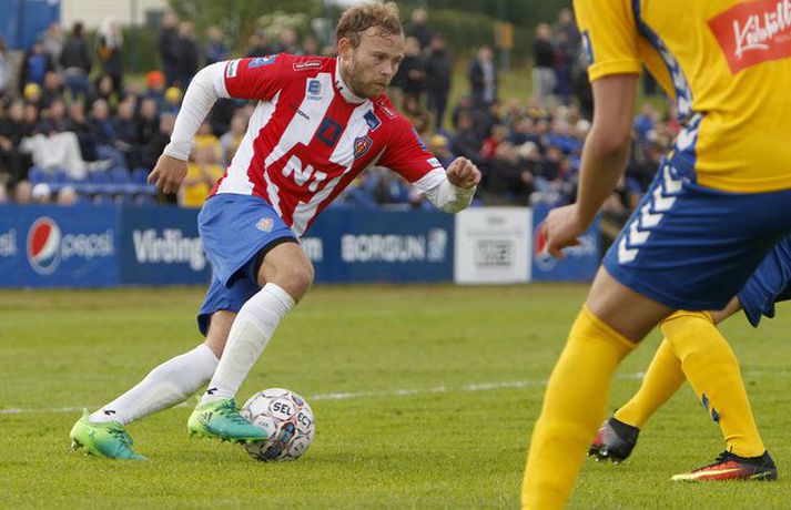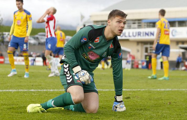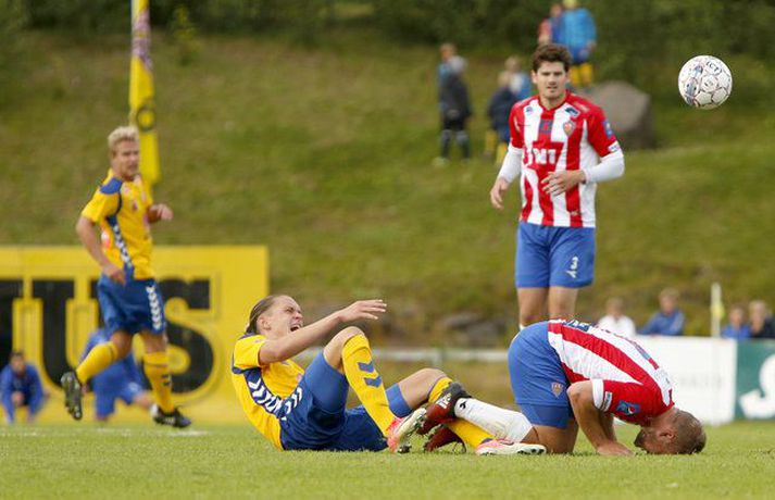 Fjölnir og KA skildu jöfn í Grafarvoginum 2-2 í hörkuleik fyrr í kvöld í 14. umferð Íslandsmótsins í knattspyrnu. Fjölnir er líklega svekktara liðið enda komust þeir í 2-0 eftir miðjan fyrri hálfleik en KA menn sýndu mikinn karakter í að jafna metin í upphafi seinni hálfleiks. Þar skipti miklu máli fyrir þá að ná marki rétt fyrir hálfleik. Leikurinn byrjaði mjög vel og náðu bæði lið að skapa sér sóknir en mið leikmanna var ekki alveg rétt stillt og þurftu markverðir liðanna lítið að hafa sig í frammi. Á 27. mínútu dró til tíðinda en þá rann varnarmaður KA í votu grasinu sem varð til þess að Linus Olsson náði boltanum og renndi honum á Ingimund Níels Óskarsson sem var þá kominn einn á móti markverði. Hann skrúfaði boltann í fjærhornið og kom heimamönnum í 1-0. 11 mínútum síðar gerðu varnarmenn KA sig seka um hræðileg mistök þegar Callum Williams reyndi að vippa boltanum yfir Ægir Jarl Jónasson sem tók boltann niður og sendi gullfallega sendingu á kollinn á Þóri Guðjónss. sem stangaði knöttinn í netið. Barnalegur varnarleikur hjá KA. Undir lok hálfleiksins fengu KA menn svo aukaspyrnu rétt fyrir utan vítateig sem Hallgrímur Mar Steingrímsson framkvæmdi og framkvæmdi vel en hann skrúfaði boltann með jörðinni framhjá veggnum og markverði Fjölnis og gífurlega mikilvægt mark komið hjá KA rétt fyrir hálfleik. Hálfleikurinn var svo 10 mínútna gamall þegar Hrannar Björn Steingrímsson þrumaði knettinum í netið óverjandi fyrir Þórð Ingason marvörð Fjölnis. Eftir markið harðnaði leikurinn og dó eilítið niður. Bæði lið vildu alls ekki tapa leiknum en undir lokin litu nokkur hálffæri ljós sem hefðu getað unnið leikinn fyrir bæði lið. En jafntefli niðurstaðan og líklega sanngjörn í ljósi hvernig leikurinn þróaðist.Afhverju endaði leikurinn með jafntefli?Bæði lið sýndu góða takta í dag og hefðu með eilítið betri færa nýtingu hefði annaðhvort liðið getað fengið öll þrjú stigin. Einnig þá hefði betri einbeiting í vörn KA líklega skilað þeim þremur stigum en á móti kemur að karakter þeirra bjargaði þeim þegar á reyndi. Fjölnismenn hefðu getað haldið kraftinum sem þeir voru með í fyrri hálfleik til að ná í stigin þrjú en eftir að leikurinn harðnaði og jafnaðist út varð fátt um sóknartilburði.Hvað gekk illa?Það gekk illa hjá báðum liðum að halda marki sínu hreinu. Mörkin sem KA fékk á sig voru virikilega klaufaleg og auðveldlega hægt að koma í veg fyrir þau en Fjölnismenn hefðu einnig með smá einbeitingu getað komið í veg fyrir mörk KA manna.Bestu menn vallarins?Ægir Jarl Jónasson var bestur í liði Fjölnis hann lagði upp seinna mark liðsins og átti part í flestum sóknartilburðum þeirra ásamt því að sinna varnarvinnunni vel. Fjölnisliðið lék samt heilt yfir vel eins og KA. Hjá KA er hægt að taka Hallgrím Mar út en ásamt því að skora eitt mark átti hann góða spretti sóknarlega.Hvað gerist næst?Liðin ná að ýta sér einu stigi fjær botni deildarinnar en hefðu líklega bæði fegin tekið þrjú stig. KA menn taka næst á móti Stjörnunni í erfiðum leik en þurfa að ná að halda vörn sinni góðri eins og á móti FH um daginn. Fjölnir hefði átt að mæta FH í næstu umferð en þeim leik hefur verið frestað og ekki er búið að ákveða leikdag. Þeir mæta hinsvegar í þar næstu umferð Stjörnunni á heimavelli. Bæði lið eiga því erfiða leiki fyrir höndum og þurfa að standa sig heldur betur í þeim til að sogast ekki niður í fallbaráttu.Maður leiksins: Ægir Jarl Jónasson, sýndi góðan leik á miðjunni og lagði upp eitt mark.Águst Þór Gylfason: Erum ekki endilega að spá í fallbaráttunniÞjálfari Fjölnis var ekki sáttur við að fá einungis eitt stig úr leik hans mann við KA fyrr í dag. „Ég get ekki sætt mig við stigið, eins og leikurinn þróaðist þá hefði ég viljað klára hann. Við komumst í 2-0 og skorum frábær mörk og eigum gott upphlaup sem hefði getað klárað leikinn. Aftur á móti fáum við mark í andlitið rétt fyrir hálfleik og mjög erfitt að koma inn í seinni hálfleikinn eftir það og að sama skapi gerðu KA menn vel í að koma af krafti út í hálfleik. Við hefðum kannski átt að klára þetta í fyrri hálfleik en úr því sem komið var er eitt stig fínt í hörkuleik. Flottur leikur og mikið aksjón. KA menn spiluðu vel eins og við sem áttum góða kafla“. Ágúst var ekki sammála því að leikurinn hafi koðnað niður og einkennst af því að hvorugt lið hafi verið að reyna að verja stigið. „Mér fannst bæði lið hafa fengið góð færi þó það hafi aðeins dáið niður. Það var allt búið að vera á fullu í 70 mínútur. Bæði lið lögðu sig 100% fram og komu færi hérna í lokin sem hefðu getað klárað leikinn“. Ágúst var spurður að því hvort að hans menn væru komnir með áhyggjur af því að vera að dragast niður í fallbaráttu. „Nei við erum ekkert endilega að spá í það. Við fengum eitt stig í dag sem og liðin fyrir neðan okkur og það er stutt í KA og stutt í allt. Við verðum að halda áfram að spila eins og í dag og þá eigum við eftir að fá fullt af stigum í viðbót“.Srdjan Tufegdzic: Stutt niður og í efri hlutann„Ég held að við getum verið ánægðir með stigið sem við fengum í dag. Eftir að hafa lent 2-0 undir og sýnt vilja og karakter eins og við gerðum til að jafna leikinn og vera nálægt því að vinna leikinn í endann þá verðum við að vera ánægðir með eitt stig“, sagði þjálfari KA manna eftir leik liðsins við Fjölni fyrr í dag. Hann var spurður út í mörkin sem liðið hans fékk á sig í dag en þau voru mjög klaufaleg. „Já það er sama sagan eins og í allt sumar en við ætl