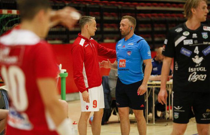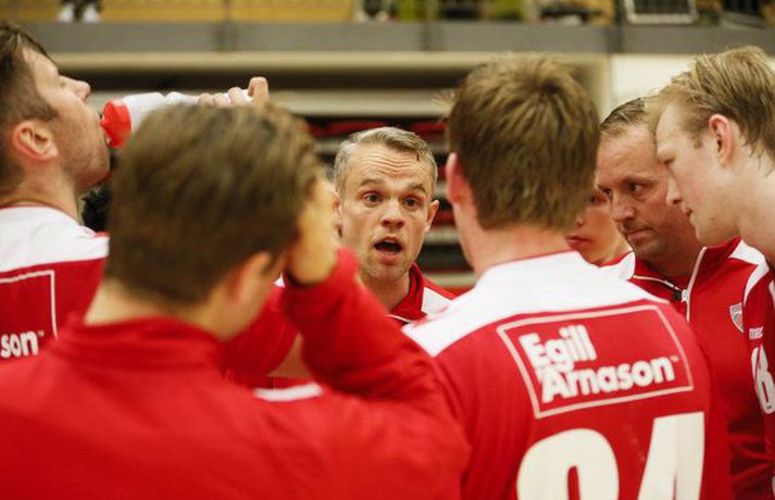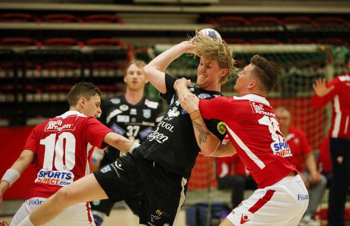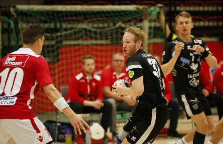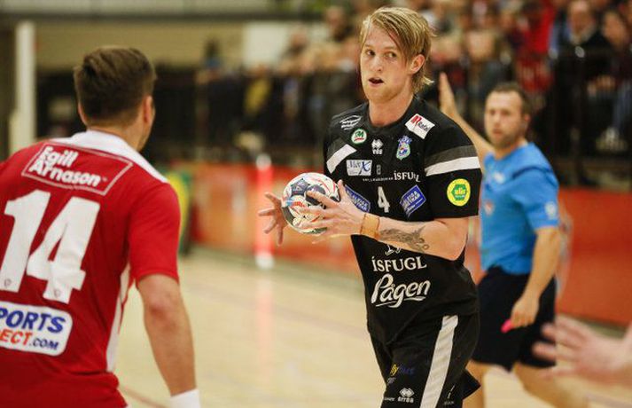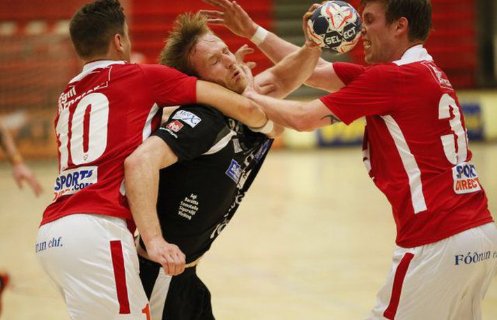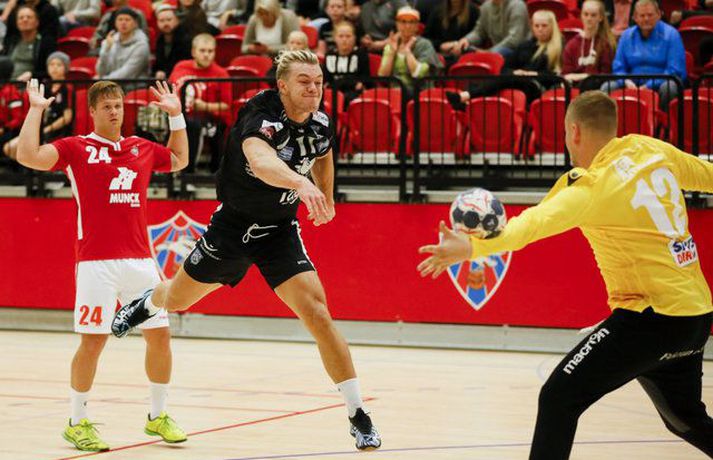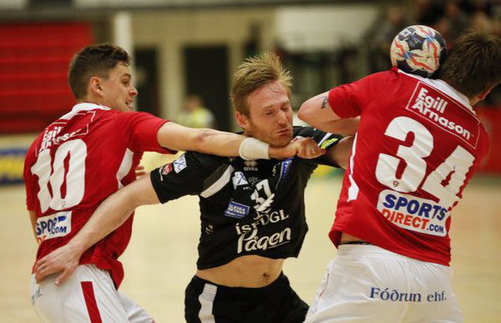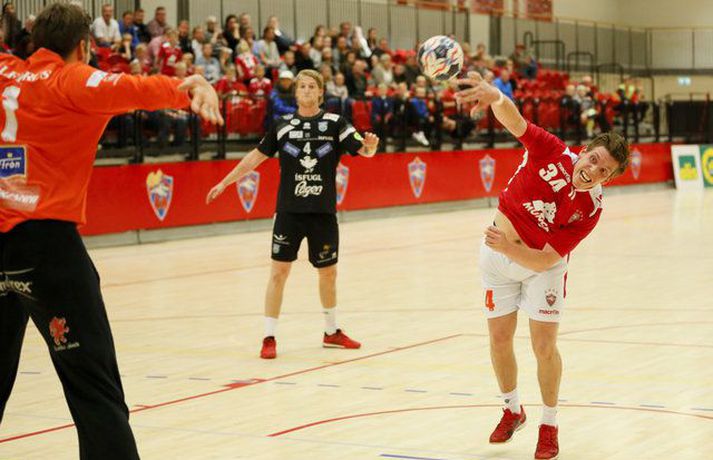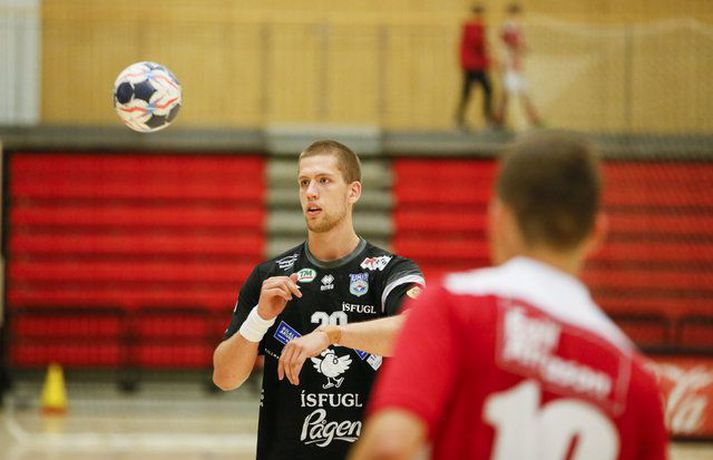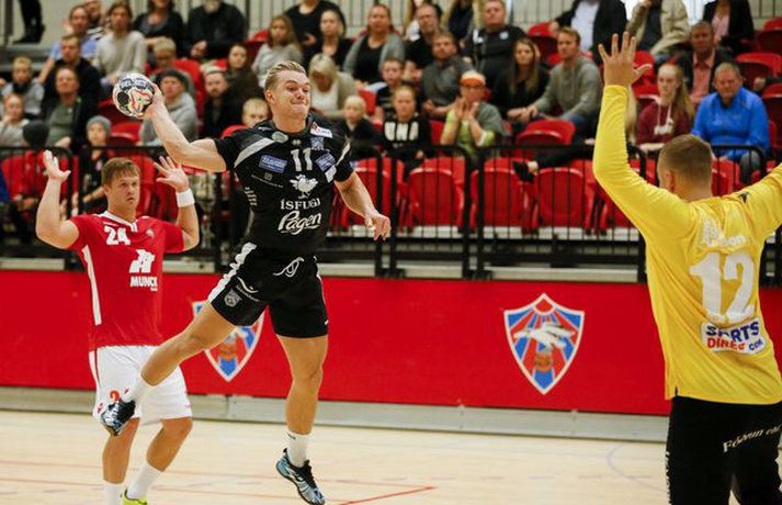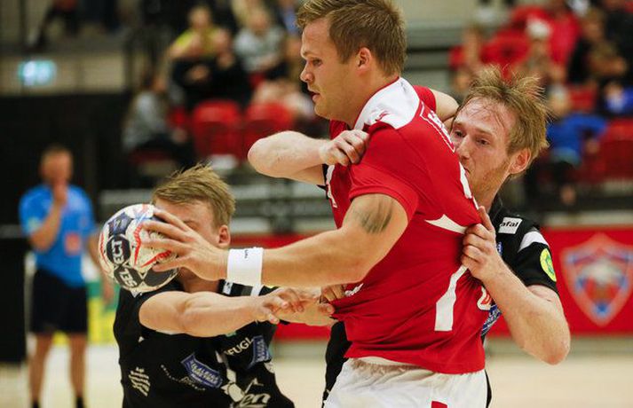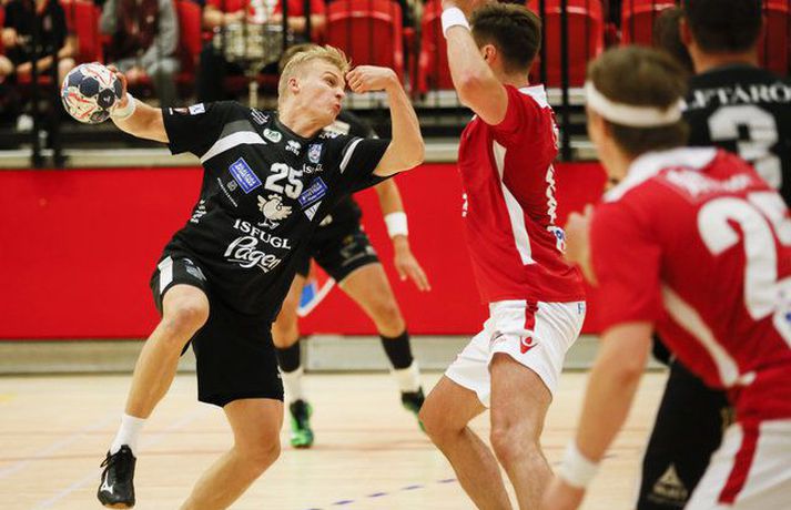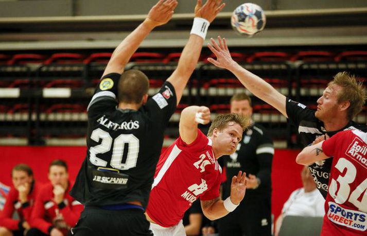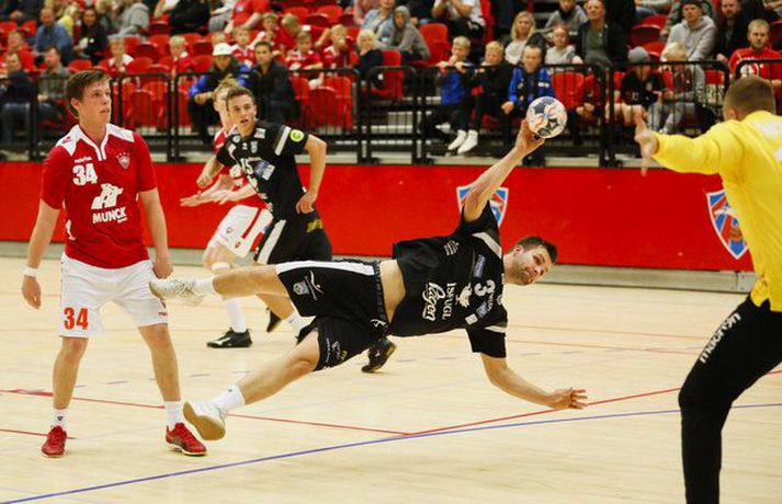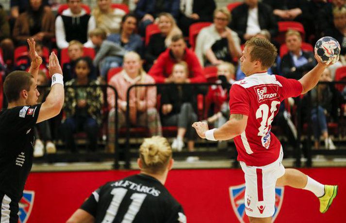 Afturelding vann góðan sigur á Íslands- og bikarmeisturum Vals í meistarakeppni HSÍ í Valshöllinni í kvöld en leikurinn fór 24-21. Markarskor Aftureldingar dreifðist en það var samt Ernir Hrafn Arnarson skoraði sex mörk fyrir Mosfellinga. Það var töluverður haustbragur á byrjun leiksins hjá Íslands- og bikarmeisturum Vals en Afturelding komst í 7-2 eftir rúmlega tíu mínútna leik. Það gekk ekkert upp sóknarlega hjá Val í byrjun leiksins. Valsmenn voru lengi í gang en það kom að lokum og var staðan 12-12 í hálfleik. Þegar leið á fyrri hálfleikinn fór varnarleikur heimamanna í gang og markvarslan kom í leiðinni. Valsmenn náðu upp forskoti Aftureldingar með hröðum sóknum og sá maður fína takta frá liðinu undir lok hálfleiksins. Á sama tíma voru gestirnir úr Mosfellsbænum ekkert sérstakir seinnihlutann í hálfleiknum. Leikurinn var mjög jafn í síðari hálfleiknum og aldrei munaði meira en þremur mörkum á liðunum. Afturelding var sterkari undir lokin og vann að lokum þriggja marka sigur. Valsmenn fóru mjög illa með dauðafæri og misnotuðu til að mynda þrjú vítaskot í seinni hálfleiknum. Afturelding vann því meistarakeppni HSÍ árið 2017.Mörk Vals: Anton Rúnarsson 5/2, Magnús Óli Magnússon 4, Vignir Stefánsson 4, Ásgeir Vignisson 3, Arnór Snær Óskarsson 2/2, Alexander Örn Júlíusson 1, Sveinn Jose Rivera 1, Stiven Tobar Valencia 1.Mörk Aftureldingar: Ernir Hrafn Arnarson 6/2, Einar Ingi Hrafnsson 4, Gunnar Þórsson 4, Mikk Pinnonen 4, Elvar Ásgeirsson 2, Gestur Ólafur Ingvarsson 2, Árni Bragi Eyjólfsson 2, Þorgrímur Smári Ólafsson 1. Einar Andri: Þessi titill skiptir okkur máli„Ég er mjög ánægður með liðið og rosalega ánægður með það að vinna loksins titil,“ segir Einar Andri Einarsson, þjálfari Aftureldingar, eftir sigurinn í kvöld. „Þetta er fyrsti titilinn sem er í boði á þessu tímabili. Hann er kannski ekki sá stærsti en hann skiptir okkur máli. Það var gaman að taka þátt í þessum leik og Valsararnir mjög flottir og erfiðir við að eiga í kvöld.“ Einar segir að bæði lið hafi komið inn í þennan leik af fullum krafti. „Við erum að fara spila Evrópuleiki næstu tvo laugardaga og því var þetta mikilvægur leikur í því sambandi.“ Hann segir að það hafi verið svolítill haustbragur á liðinu að undanförnu en hann hafi loksins séð alvöru spilamennsku í kvöld. „Núna eru menn að stíga upp og við erum á réttri leið. Það eru allir að koma upp úr meiðslum og svona.“ Snorri: Klúðruðum of mörgum dauðafærum„Bara no comment,“ segir Snorri Steinn Guðjónsson, þjálfari Vals, eftir leikinn í kvöld þegar hann var spurður af hverju hann spilaði ekki einu sekúndu í leiknum í kvöld. „Ég er frekar ánægður með baráttuna í strákunum. Við byrjuðum leikinn mjög illa en strákarnir sýndu karakter og komu til baka. Það var jákvætt. Í seinni hálfleik förum við illa að ráði okkar og brennum til að mynda af þremur vítaköstum og nokkrum hraðaupphlaupum.“ Ýmir Örn Gíslason og Orri Freyr Gíslason voru ekki með Val í kvöld en þeir mynduðu sterkasta varnarduett landsins á síðasta tímabili. „Þeir eru báðir meiddir,“ segir Snorri sem var mjög stuttorður í viðtalinu. Valsmenn hafa verið með japanskan leikmenn til reynslu síðustu daga. „Það kemur í ljóst á næstu dögum hvort við semjum við hann. Hann er fínn leikmaður og gæti styrkt liðið.“Eyþór Árnason, ljósmyndari Fréttablaðsins og Vísis, var í Valshöllinni í kvöld og tók myndirnar sem má sjá hér að neðan. Einar Andri hvetur sína menn áfram.vísir/eyþórSnorri Steinn ræðir við leikmenn Vals.vísir/eyþór