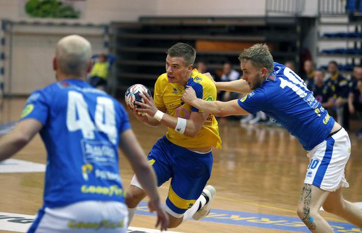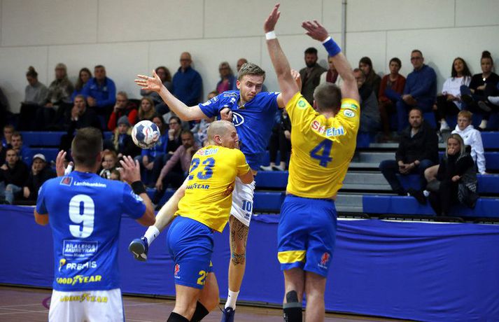 Fram vann fjögurra marka sigur á Gróttu 28-24 í lokaleik dagsins í Olís-deild karla en þetta var annar sigur Fram í síðustu þremur leikjum á meðan Grótta er enn án stiga.Stefán Karlsson, ljósmyndari Vísis og Fréttablaðsins, var á leiknum og náði þessum myndum hér fyrir ofan. Seltirningar voru með frumkvæðið fyrstu mínúturnar og leiddu þegar fyrri hálfleikur var hálfnaður en Framarar unnu sig inn í leikinn og náðu að jafna undir lok fyrri hálfleik í stöðunni 13-13. Í seinni hálfleik voru það heimamenn sem voru sterkari strax frá fyrstu mínútu og náðu þegar mest var fimm marka forskoti en gerðu nóg til að skila sigrinum. Fram og Grótta mættust í Safamýrinni í kvöld í hörkuleik sem endaði með, 28-24, sigri Fram í Olís deild karla. Leikurinn var jafn framan af en staðan var 13-13 í hálfleik. Fram tók þó völdin í þeim seinni er Arnar Birkir fékk að ganga lausum hala í búningi Fram en hann skoraði fjöldann allan af mörkum á meðan sóknarleikur Gróttu stóð í stað. Að lokum landaði Fram sigrinum og er liðið nú með fimm stig en Grótta er áfram í botnsætinu, stigalaust eftir sex umferðir.Af hverju vann Fram? Fram spilaði betri sóknar og varnarleik og þá sérstaklega í seinni hálfleik. Þar að auki var tók markvarsla Fram mikinn vaxtarkipp undir lok leiks er Viktor Gísli lokaði búrinu á síðustu mínútunum. Fram náði líka að loka á sóknarleik Gróttu en gestirnir skoruðu níu mörk af vítapunktinum af 24 mörkum liðsins á meðan Fram spilaði betri og beittari sóknarleik.Hverjir stóðu upp úr? Arnar Birkir Hálfdánarson átti stórleik fyrir Fram í seinni hálfleik er hann tók upp á því að negla boltanum svo fast að Hreiðar Levý kom engum vörnum við. Grótta sá enga leið til að stoppa hann og voru mörkin hans stór ástæða þess að Fram tók yfir leikinn í seinni. Markvarslan var fín hjá báðum liðum en á meðan Hreiðar Levý var jafngóður í gegnum leikinn hjá Gróttu tók markvarslan mikinn vaxtarkipp hjá Viktori Gísla í búningi Fram sem lokaði markinu vel undir restina. Svo er ekki hægt annað en að nefna Maximillian Jonsson en Svíinn átti erfitt uppdráttar í sóknarleik Gróttu en sem vítaskytta olli hann engum vonbrigðum. Hann fór á punktinn níu sinnum og skilaði boltanum í markið í öll skiptin.Hvað gekk illa? En það gerir voða lítið fyrir þig þegar 1/3 af mörkunum þínum er að koma af vítalínunni. Sókn Gróttu þurfti nauðsynlega á fleiri mönnum til að stíga upp en á meðan Maximillian skoraði níu sinnum af punktinum var næst markahæstu leikmenn liðsins með einungis þrjú mörk, tveir talsins. Fram lokaði gjörsamlega á sóknarleik Gróttu sem verður að vera betri gegn Aftureldingu í næsta leik.Hvað gerist næst? Fram heimsækir Víking í Víkinni og ef liðið spilar svona ætti það að næla í sigur.Grótta á enn eftir að næla í sigur og fær Aftureldingu í heimsókn á Seltjarnarnesið.Kári Garðarsson: Fram var einu skrefi á undan okkur Kári Garðarson, þjálfari Gróttu, var ekki sáttur með sína menn í leikslok eftir að Grótta tapaði 28-24 í Safamýrinni í kvöld. „Við bjuggumst við hörkuleik og fengum það en Fram var skrefinu á undan okkur í seinni hálfleik. Arnar Birkir fór t.a.m. gjörsamlega á kostum í upphafi seinni og við réðum illa við hann.” Maximillian Jonsson skoraði níu mörk af vítapunktinum af níu mögulegum en þess fyrir utan var lokað á hann. En er ekki níu vítaskot vel yfir meðaltali?. „Það var örugglega yfir meðaltalinu en ég held að þetta hafi allt verið góðir vítadómar því þegar það er spilað fimm á móti fimm þá er mikið pláss. Það tókst oft ágætlega en það þarf massívari frammistöðu til að klára gott lið Fram,“ sagði Kári. Fram náði að taka margar sekúndur af klukkunni með löngum sóknum á síðustu mínútum leiksins en margir leikmenn Gróttu vildu sjá dómara stoppa klukkuna margoft en hún fékk þó að rúlla megnið af tímanum. „Þeir fengu ansi langar sóknir þegar þeir voru tveimur mörkum yfir og svo varði Hreiðar Levý í innkast sem gaf þeim nýja sókn. Það hefði mátt hraða leikinn þá og grípa betur inn í.“ Hann segir að Grótta verði að leggja hart af sér næstu vikurnar en næsti leikur liðsins er gegn Aftureldingu. „Það gefur okkur ekkert að næstum-því-vinna-leiki. Það er á hreinu. Þurfum að halda áfram að vinna í okkar hlutum og það mun skila okkur sigri á endanum.“Guðmundur Helgi: Vorum klárir í hörku slag „Frábær sigur hjá mínum mönnum. Ánægður hvernig við komum til leiks og hvernig við vorum klárir í hörku slag,“ sagði Guðmundur Helgi, þjálfari Fram, kátur í leikslok. Fram tókst að loka á flest allar sóknaraðgerðir Gróttu í seinni hálfleik en þó gáfu þeir frá sér níu vítaskot sem Maximillian Jonsson nýtti vel með 100% nýtingu. „Hann er með níu af níu af punktinum en við náðum að loka á allt hitt þannig við erum bara ánægðir með það.“ Hann vildi lítið tjá sig um fjöldann af þessum vítum. „Það má deila um fullt af þessum vítum. Þetta var full mikið og ef ég hefði fengið 2-3 víti á móti þá hefði ég verið sáttur en svona er handboltinn.“ Næsti leikur Fram er gegn Víkingum og er Guðmundur vægast sagt bjartsýnn. „Ef menn eru svona stemmdir þá leggst sá leikur bara vel í mig. Við erum klárir í allt.“ Arnar Birkir Hálfdánarson var í fantaformi í kvöld og skoraði 10 mörk fyrir Fram. Guðmundur var af sjálfsögðu ánægður með hans framlag. „Þegar hann dettur í þetta stuð þá er erfitt að stoppa hann. Hann var ekki með góða nýtingu í fyrri hálfleik og við töluðum saman. Hann sannaði sig svo sannarlega í seinni.“ Maximillian Jonsson: Pirrandi leikurMaximillian Jon