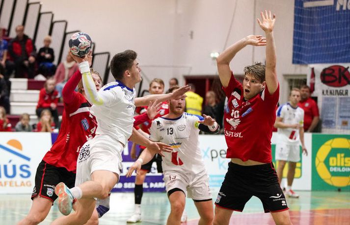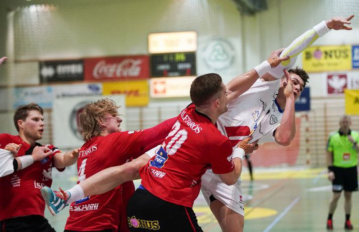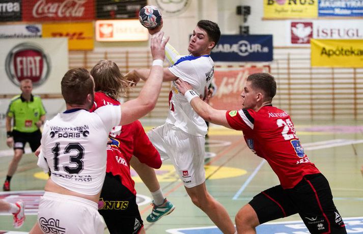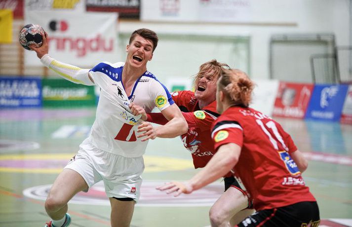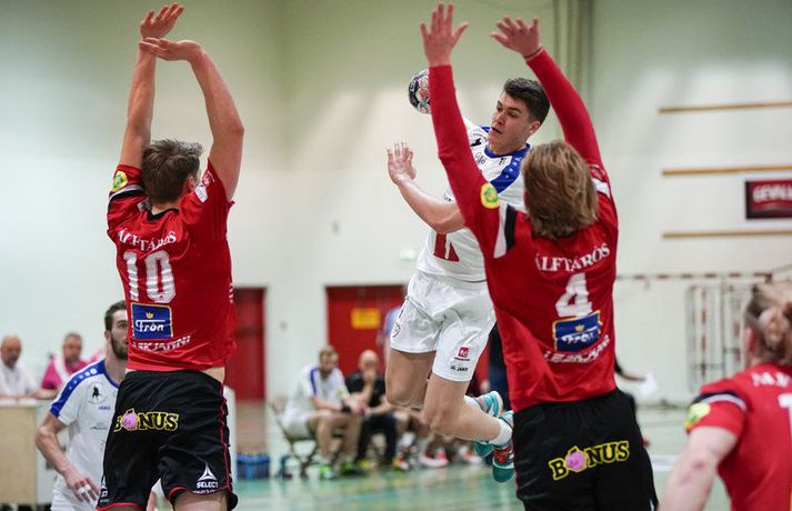 Selfoss fagnaði sínum þriðja sigri í Olís-deildinni í kvöld þegar liðið sigraði Aftureldingu, 28-29, eftir æsispennandi lokamínútur í Mosfellsbæ.Eyþór Árnason, ljósmyndari Vísis og Fréttablaðsins, var á leiknum í kvöld og tók þessar skemmtilegu myndir sem eru hér fyrir neðan og í myndaspyrpu hér fyrir ofan. Afturelding byrjaði leikinn mun betur og áttu Selfyssingar í miklum vandræðum með að finna leiðir í gegn um vörn heimamanna. Á 13. mínútu tók Patrekur Jóhannesson leikhlé, en þá hafði Selfoss aðeins skorað þrjú mörk, sem er ólíkt því Selfoss liði sem sést hefur hingað til í deildinni. Staðan í hálfleik, 14-11, verðskuldað þriggja marka forskot Aftureldingar. Í síðari hálfleik gáfu Selfyssingar aðeins í og varð leikurinn fyrir vikið töluvert hraðari en hann hafði verið í fyrri hálfleik. Mosfellingar gáfu hinsvegar ekkert eftir og héldu sinni þriggja til fjögurra marka forystu nánast allan síðari hálfleikinn. Forskot Aftureldingar varð mest fimm mörk, 24-19, þegar 14 mínútur voru eftir af leiknum og illa gekk hjá Selfossi að saxa á forskotið. Það var ekki fyrr en á 54. mínútu sem Selfyssingar hrukku í gang. Á fimm mínútna kafla skoraði Selfoss fjögur mörk í röð og jöfnuðu leikinn, 26-26. Að lokum kláraði Einar Sverrisson leikinn fyrir Selfoss eftir hörkuspennandi lokamínútur, 28-29. Selfoss hirti þar með stigin tvö þrátt fyrir að hafa komist yfir í fyrsta sinn í leiknum á lokamínútunni og Afturelding bíður enn eftir sínum fyrsta sigri í deildinni.Af hverju vann Selfoss leikinn? Þetta var karaktersigur eins og hann gerist bestur. Selfyssingar misstu aldrei trúna, þrátt fyrir að elta Aftureldingu allan leikinn.Hverjir stóðu upp úr? Elvar Örn Jónsson var allt í öllu í sóknarleik Selfyssinga undir lok leiksins. Hann byrjaði á því að fiska víti á 54. mínútu sem Teitur Örn skoraði úr. Í kjölfarið skoraði hann næstu fjögur mörk leiksins og jafnaði í 26-26. Elvar endaði síðan leikinn markahæstur í liði Selfoss með með 7 mörk. Í liði Aftureldingar átti Árni Bragi Eyjólfsson virkilega góðan leik með 11 mörk.Hvað gekk illa? Markvarslan gekk illa hjá báðum liðum í dag. Þrír markmenn spiluðu í marki Selfyssinga og voru varin skot þeirra frá 17 til 26 prósent. Lárus Helgi var með 22 prósent vörslu í marki Aftureldingar. Afturelding var samt sem áður betra lið vallarins stærstan part leiksins í kvöld, en Selfoss gerði vel og refsaði um leið og færi gafst.Hvað gerist næst? Selfyssingar eiga heimaleik á móti ÍR næsta sunnudag, þann 15. október. Aftureldingu bíður síðan erfitt verkefni næsta mánudag, 16. október, þegar Haukar mæta í Mosfellsbæinn. Patrekur: Getum náð helvíti lang „Æðislegur sigur. Þetta var eins og ég bjóst við, ég var búinn að segja strákunum fyrir leik að þetta yrði slagsmálaleikur. Ég var fúll að við vorum ekki tilbúnir í það. Þeir voru rosalega þéttir og við sóttum þar sem þeir eru sterkastir og svo vorum með litla markvörslu,“ sagði Patrekur Jóhannesson, þjálfari Selfoss, við Vísi í leikslok. Patrekur var að vonum ánægður með sína menn sem náðu að vinna niður forskot Aftureldingar á lokamínútum leiksins. „Það sem ég er svo ánægður með og það sem er svo mikilvægt fyrir okkur er að við gáfumst aldrei upp. Eins og á móti Val, þá vorum við bara jafn sterkir og þeir í 45 mínútur en síðan gáfum við algjörlega eftir. Núna gáfumst við ekkert upp, tókum af skarið og auðvitað ákveðin heppni líka.“ Selfyssingar áttu meirihluta leiksins í miklum erfiðleikum með að vinna sig í gegnum vörn Afturelding, sem var yfir meirihluta leiksins yfir. „Afturelding er bara massalið og þeir eru með sterka stráka. Ég er pottþéttur á því að þeir eiga eftir að ná í sín stig.“ „Það sem við þurfum að læra samt sem áður, er að mæta með þetta skap og þessa frekju sem var síðasta korterið. Ef ég næ því inn í þetta Selfosslið, þá getum við náð helvíti langt. En það er stundum stutt í aumingjann hjá okkur og við þurfum að passa það,“ sagði sáttur Patrekur Jóhannesson að lokum. Einar: Vorum bara óheppnir og klaufar „Mjög fúlt að ná ekki að klára þetta. Við spiluðum virkilega góðan leik í dag á móti frábæru liði, mér fannst við eiga að skilið að minnsta kosti stig út úr þessum leik, ef ekki tvö,“ sagði Einar Andri Einarsson, þjálfari Aftureldingar í leikslok. Afturelding var yfir mestan part leiksins, en það var ekki fyrr en á 57. mínútu sem Selfossi tókst að jafna. „Við vorum bara óheppnir og klaufar á köflum hérna í lokin. Við unnum vel eftir plani og því miður bara datt þetta ekki með okkur núna. Við þurfum bara að skoða af hverju.“ Afturelding er því enn án sigurs eftir fimm leiki í Olís-deildinni, en þeim hafði verið spáð góðu gengi fyrir tímabilið. „Við erum bara ekki búnir að spila nógu vel, það er bara einfalt mál. Við erum að spila ágætlega á löngum köflum í leikjunum en náum ekki að klára okkur í gegn og þess vegna erum við ekki að klára sigrana. Það þýðir ekkert að pæla í því hvort það sé krísa eða ekki krísa. Verkefnið er bara þetta og menn þurfa bara að vinna úr því,“ sagði Einar, sem var að vonum svekktur í leikslok.Einar Sverrisson var hetja Selfossliðsins í kvöld.Vísir/EyþórVísir/EyþórVísir/EyþórVísir/EyþórPatrekur Jóhannesson, þjálfari Selfoss.Vísir/EyþórVísir/EyþórEinar Andri Einarsson, þjálfari Aftureldingar.Vísir/Eyþór
