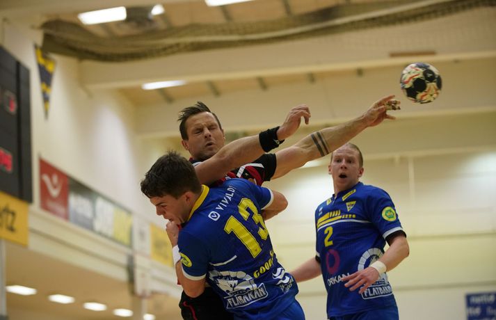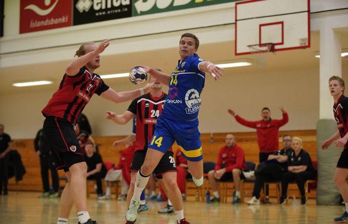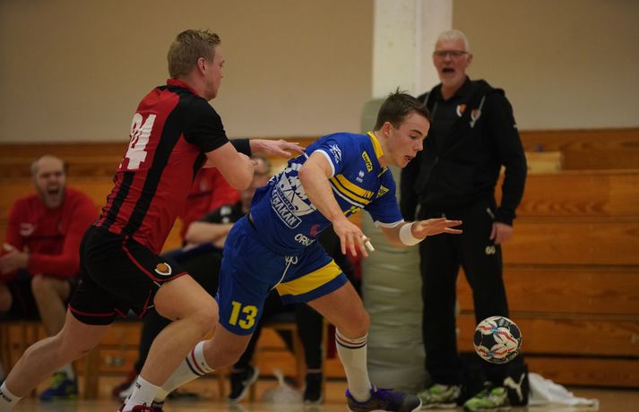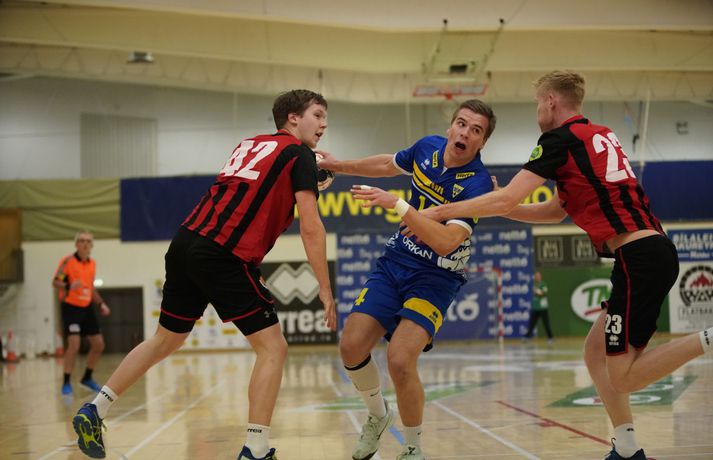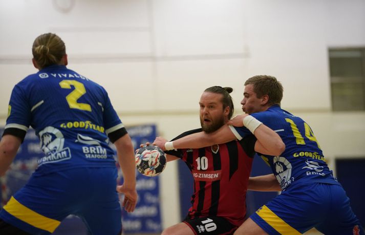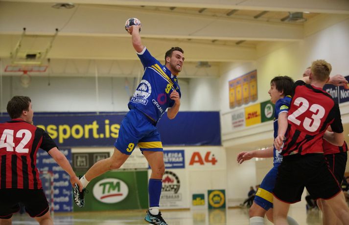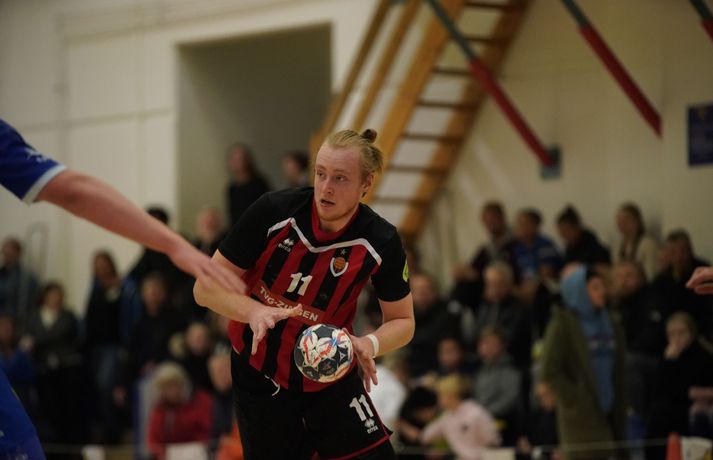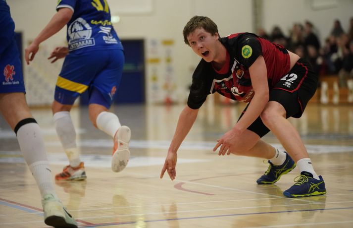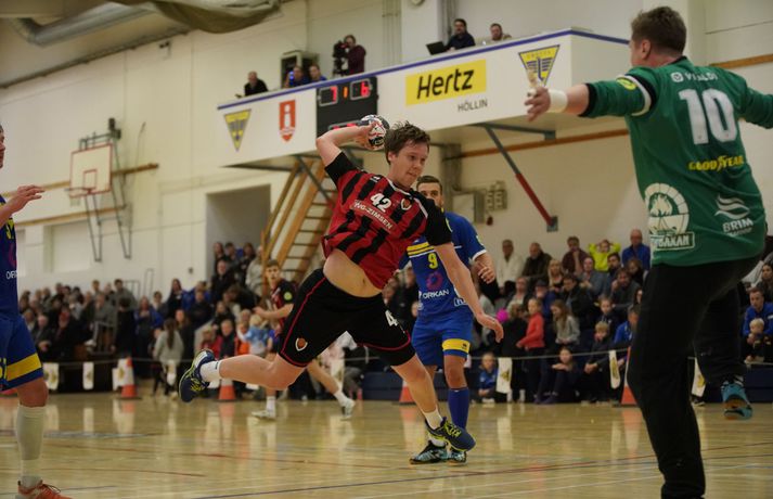 Umfjöllun, viðtöl og myndir: Grótta - Víkingur 30-19 | Grótta lagði klaufska Víkinga af velli Þór Símon Hafþórsson skrifar 20. nóvember 2017 22:15 Úr leiknum í kvöld Vísir/Eyþór Grótta og Víkingur mættust í 10. umferð Olís deildar karla í kvöld í botnslag deildarinnar. Margir bjuggust við jöfnum leik og það er það sem við fengum í fyrri hálfleik er liðin skiptust á að skora. Þó undir lok fyrri hálfleiks tók Hreiðar Levý við sér í marki Gróttu og það skilaði sér í að heimamenn fóru með fjögurra marka forskot til hálfleiks. Staðan 13-9, Gróttu í vil. Grótta tók svo öll völd í þeim seinni en Hreiðar Levý var þá enn með markið harðlæst og hleypti Víkingum ekki inn. Grótta náði að auka forskotið átta mörk og síðar meir í 10 mörk. Víkingar sáu aldrei til sólar eftir það og lokatölur, 30-19, Gróttu í vil.Afhverju vann Grótta? Grótta var með allt á kristaltæru í þessum leik. Varnarleikurinn var flottur og markvarslan til fyrirmyndar. Víkingar skutu sig þó ansi oft í fótinn og misstu boltann trekk í trekk klaufalega frá sér. Það sem gerði það enn verra fyrir gestina var að oft á tíðum var liðið með aukamann í sókninni og því skoraði Grótta oft og mörgum sinnum í tómt markið eftir að vinna boltann af klaufskum Víkingum.Hverjir stóðu upp úr? Ég er búinn að nefna markvörsluna margoft það sem af er en Hreiðar Levý var frábær. Enn þar að auki átti Finnur Ingi Stefánsson stórleik og skoraði níu mörk. Með honum var Bjarni Ófeigur mjög beittur en hann endaði með sjö mörk. Hjá Víkingum gæti ég nefnt Davíð Svansson í markinu en hann varði oft á tíðum mjög vel og það væri erfitt að skella einhverja skuld á hann fyrir tapið.Hvað gekk illa? Víkingar köstuðu boltanum svo oft frá sér að það var að verða hálf kjánalegt á köflum. Einnig missti liðið áberandi hausinn í upphafi seinni hálfleiks en það er alls ekki í fyrsta sinn sem það gerist það sem af er vetri. Ætli liðið sér að halda sér uppi á meðal þeirra bestu verður liðið að laga þetta. Víkingar hafa sýnt okkur nokkrum sinnum að liðið á fullt erindi í Olís deildina þegar liðið dettur ekki í sama pakka og það gerði í dag. En að hafa alla burði er ekki nóg þegar frammistaða líkt og í kvöld er rauninn allt of oft.Hvað gerist næst? Víkingar fá Selfyssinga í heimsókn í Víkingsheimilið en Grótta heimsækir Fjölni í Grafarvoginn.Grótta: Finnur Ingi Stefánsson 9, Bjarni Ófeigur Valdimarsson 6, Júlíus Þórir Stefánsson 4, Nökkvi Dan Elliðason 3, Maximiliam Jonsson 3, Daði Laxdal Gautason 2, Pétur Árni Hauksson 1, Hannes Grimm 1, Hreiðar Levý Guðmundsson 1.Víkingur: Víglundur Jarl Þórsson 4, Egidijus Mikalonis 4, Jón Hjálmarsson 4, Magnús Karl Magnússon 2, Hjalti Már Hjaltason 2, Arnar Gauti Grettisson 1, Jónas Bragi Hafsteinsson 1, Birgir Már Birgirsson 1.vísir/eyþórKári Garðarson: Myndi ekkert hata að taka þriðja sigurinn í röð Kári Garðarson, þjálfari Gróttu, var ánægður í leikslok eftir að Grótta sigraði Víkinga með ellefu mörkum, 30-19, í botnslag Olís deildar karla. „Það er tvennt ólíkt að klára leikinn svona og eins og við gerðum framan af vetri. Við duttum á full mikla hrinu framan af vetri en strákarnir voru frábærir í kvöld,“ sagði Kári en eftir að hafa farið fyrstu átta umferðir deildarinnar án sigurs er Grótta nú búið að vinna tvo leiki í röð. Leikurinn var jafn framan af en Grótta tók afgerandi forskot í seinni hálfleik og það var að stórum hluta markverðinum Hreiðari Levý að þakka sem hreinlega lokaði og læsti markinu á löngum köflum. „Ég yrði að vera helvíti harður ef ég ætlaði ekki að vera ánægður með Hreiðar síðan hann kom til baka til Íslands. Hann var mjög góður og vörnin öflug í að hjálpa honum.“ Næsti leikur er gegn Fjölni en gula liðið úr Grafarvoginum er einnig að berjast í fallbaráttunni ásamt Gróttu og Víkingum. Nær Grótta sínum þriðja sigri í röð í næstu umferð? „Ég myndi ekkert hata það en Fjölnir er með andskoti gott lið sem fékk vænan skell í gær á móti Haukum og mæta örugglega dýrvitlausir til leiks gegn okkur.“ Það var ekki bara Hreiðar Levý sem var eldheitur í liði Gróttu en Finnur Ingi Stefánsson skoraði sjö mörk. Undirritiaður vildi fá hann í viðtal eftir leik en fann hann hvergi. Það var hinsvegar góð skýring á því. „Finnur er farinn upp á fæðingardeild. Konan hans er bara kominn af stað. Ég hitti hana á ganginum fyrir leik en hún fór héðan beint á sjúkrahúsið. Hann brunaði bara til hennar beint eftir leik. Vonandi nær hann öllum herlegheitunum,“ sagði Kári en kona Finns er handboltakonan, Anna Úrsúla Guðmundsdóttir. Kári þjálfaði Önnu á sínum tíma er hann þjálfaði kvennalið Gróttu og hann vonar af sjálfsögðu að allt gangi vel. „Vonandi gengur allt eins og í lygasögu hjá þeim.“vísir/eyþórGunnar Gunnarsson: Vonbrigði að fá svona skell „Fyrst og fremst vonbrigði að fá svona skell. Við vorum í fínum málum í fyrri hálfleik og svo byrjum við seinni hálfleikinn afleitlega,“ sagði Gunnar Gunnarsson, þjálfari Víkinga, eftir 11 marka tap liðsin gegn Gróttu í kvöld. „Við náðum aldrei almennilegum takti aftur og fáum á okkur 18 mörk í seinni hálfleik. Þetta voru vonbrigði hvernig leikurinn þróaðist,“ en það var engu líkara en að Víkingarnir misstu hausinn eilítið í seinni hálfleik. „Þegar við lendum nokkrum mörkum undir fara menn kannski að taka óþarfa áhættur og ótímabær skot í stað þess að vera þolinmóðir.“ Egidijus Mikalonis, leikmaður Víkinga, var oft ósáttur við varnarleik Gróttu sem hann fannst vera full harður og vildi oft meina að hann væri að fá þ