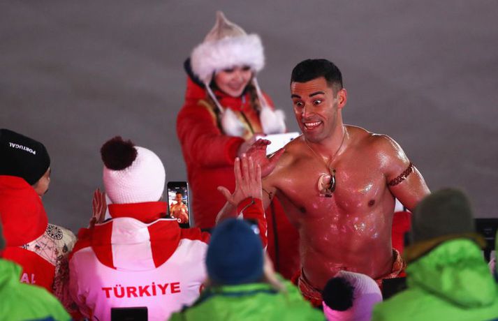 Stal aftur senunni á setningarhátíð ÓL og mætti ber að ofan í frostinu Óskar Ófeigur Jónsson skrifar 9. febrúar 2018 12:42 Tongamaðurinn Pita Taufatofua. Vísir/Getty Tongamaðurinn Pita Taufatofua vakti mikla athygli á setningarhátíð vetrarólympíuleikanna í Pyeongchang í dag. Hann leggur það í vana sinn að stela senunni þegar Ólympíuleikar eru settir. Það muna margir eftir honum þegar hann kom inn á leikvanginn á setningarhátíð síðustu sumarólympíuleika í Ríó en þá mætti hann olíuborinn, ber að ofan og í strápilsi. Pita Taufatofua tók þátt í tækvondó á ÓL í Ríó 2016 en honum tókst einnig að tryggja sér þátttökurétt á vetrarólympíuleikunum og það í skíðagöngu. Það er frost og ískalt í Pyeongchang en það kom þó ekki í veg fyrir að Pita Taufatofua mætti aftur olíuborinn, ber að ofan og í strápilsi inn á setningarhátíðina. Á meðan allir aðrir keppendur voru innpakkaðir í úlpu og góðan hlífðarfatnað í frostinu þá gekk Pita Taufatofua um brosandi í pilsi einu fata.Two years on from Rio and @PitaTaufatofua is topless again! Welcome Tonga to the Winter @Olympics! See more on @pyeongchang2018 here: https://t.co/M70cMvG6ulpic.twitter.com/w8IQKpDLgM — Olympic Channel (@olympicchannel) February 9, 2018 Pita Taufatofua er eini keppandi Tonga á leikunum en þessi eyjaklassi í Pólýnesíu býður ekki alveg upp á kjöraðstæður fyrir skíðagöngu. Tonga eða Vináttueyjar er eyjaklasi í Suður-Kyrrahafi á milli Nýja-Sjálands og Hawaii. Það er sunnan við Samóa og austan við Fídjieyjar. Þar er sól og yfir tuttugu stiga hiti allt árið. Það hefur verið flakk á kappanum að undanförnu. Pita mætti nefnilega til Íslands til að tryggja sér þátttökurétt á Ólympíuleikunum en það gerði hann alþjóðlegu bikarmóti á gönguskíðum á Ísafirði. Hinn 34 ára gamli Pita var búinn að mistakast það að tryggja sig inn á leikana á sjö mótum þegar hann kom til Ísafjarðar. Ísafjörður var hans síðasta von og þar tókst honum að tryggja sér farseðilinn. Hér fyrir neðan má sjá viðtal við Pita Taufatofua sem var tekið á Ísafirði og fyrir fésbókarsíðu Ólympíuleikanna. Ólympíuleikar Tonga Vetrarólympíuleikar 2018 í PyeongChang Mest lesið Bíll Shaquille O'Neal enn ófundinn Körfubolti Óskar Hrafn fer ekki fet Íslenski boltinn Hákon Rafn hélt hreinu þegar Brentford flaug áfram Enski boltinn Spánn og Þýskaland mætast í úrslitum Fótbolti Dagskráin í dag: Íslenskur körfubolti í sviðsljósinu Sport Verstappen telur sig ekki geta barist um titilinn Formúla 1 FH bíður með að tilkynna nýjan þjálfara Íslenski boltinn Anguissa hetja meistaranna Fótbolti Jón Dagur gulltryggði sigurinn með sínu fyrsta marki Fótbolti Martin öflugur í góðum sigri Körfubolti Fleiri fréttir Arteta óttast ekki að keppinautarnir steli undrabarninu frá honum FH bíður með að tilkynna nýjan þjálfara Bíll Shaquille O'Neal enn ófundinn Dagskráin í dag: Íslenskur körfubolti í sviðsljósinu Óskar Hrafn fer ekki fet Spánn og Þýskaland mætast í úrslitum Anguissa hetja meistaranna Hákon Rafn hélt hreinu þegar Brentford flaug áfram Martin öflugur í góðum sigri Verstappen telur sig ekki geta barist um titilinn Jón Dagur gulltryggði sigurinn með sínu fyrsta marki Leikið á Þróttaravelli á miðvikudag Vinícius Júnior íhugar að yfirgefa Real Madríd Kaupir sér tveggja milljarða króna hús Alexander Máni með fimm mörk í tveimur leikjum og Ísland áfram Birnir frá Akureyri í Garðabæ Klobbaði íslensku strákana og fór á flug á netmiðlum Teitur inn í landsliðið Hættir með Fram Landsliðskonur aðstoðuðu ökumenn í vanda Öllum leikjum Bónus-deildar kvenna í kvöld frestað Arnar skilur ekkert í Tottenham Landsleiknum aflýst og framhaldið óljóst Bardagakapparnir vilja ólmir fá að keppa í Hvíta húsinu Segir að Slot verði að taka tvo leikmenn út úr Liverpool-liðinu Vonast til að komast í Kórinn: „Menn hafa aldrei séð annað eins“ Markvörður Inter banaði háöldruðum manni í hjólastól „Alltaf gaman að fá nýjar raddir inn“ Gleðifréttir fyrir Argentínumenn: Messi vill spila á HM „Sagan hefur sýnt það að ég er góður að þjálfa unga og efnilega leikmenn“ Sjá meira