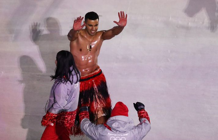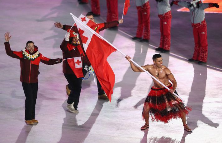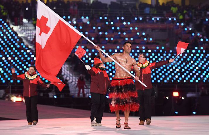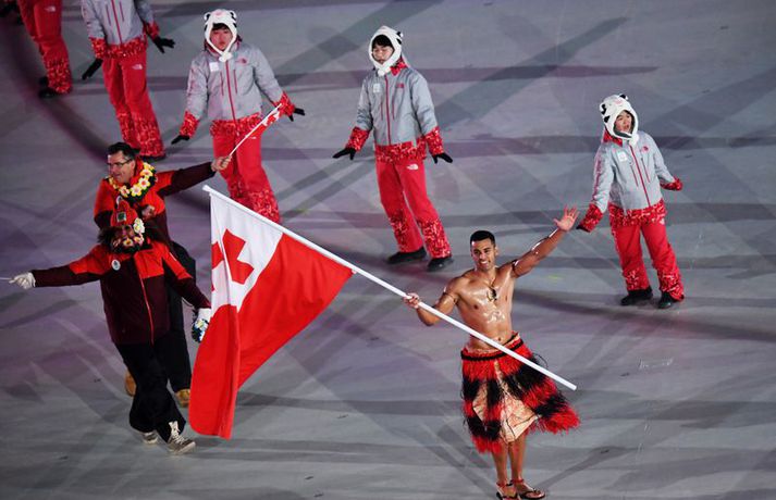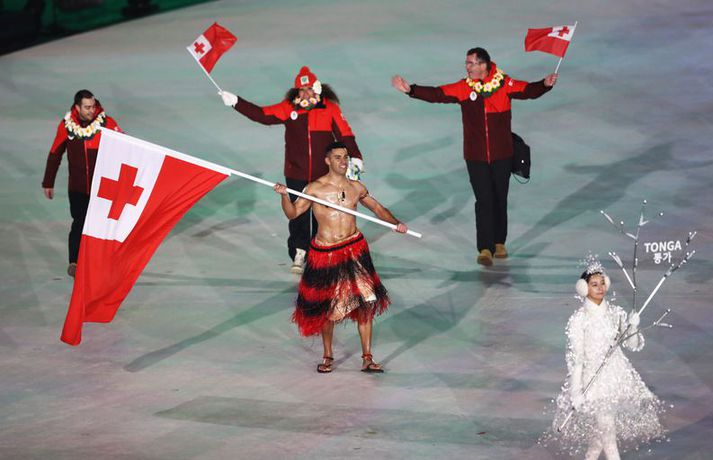 Tongamaðurinn Pita Taufatofua vakti mikla athygli á setningarhátíð vetrarólympíuleikanna í Pyeongchang í dag. Hann leggur það í vana sinn að stela senunni þegar Ólympíuleikar eru settir. Það muna margir eftir honum þegar hann kom inn á leikvanginn á setningarhátíð síðustu sumarólympíuleika í Ríó en þá mætti hann olíuborinn, ber að ofan og í strápilsi. Pita Taufatofua tók þátt í tækvondó á ÓL í Ríó 2016 en honum tókst einnig að tryggja sér þátttökurétt á vetrarólympíuleikunum og það í skíðagöngu. Það er frost og ískalt í Pyeongchang en það kom þó ekki í veg fyrir að Pita Taufatofua mætti aftur olíuborinn, ber að ofan og í strápilsi inn á setningarhátíðina. Á meðan allir aðrir keppendur voru innpakkaðir í úlpu og góðan hlífðarfatnað í frostinu þá gekk Pita Taufatofua um brosandi í pilsi einu fata.Two years on from Rio and @PitaTaufatofua is topless again! Welcome Tonga to the Winter @Olympics! See more on @pyeongchang2018 here: https://t.co/M70cMvG6ulpic.twitter.com/w8IQKpDLgM — Olympic Channel (@olympicchannel) February 9, 2018 Pita Taufatofua er eini keppandi Tonga á leikunum en þessi eyjaklassi í Pólýnesíu býður ekki alveg upp á kjöraðstæður fyrir skíðagöngu. Tonga eða Vináttueyjar er eyjaklasi í Suður-Kyrrahafi á milli Nýja-Sjálands og Hawaii. Það er sunnan við Samóa og austan við Fídjieyjar. Þar er sól og yfir tuttugu stiga hiti allt árið. Það hefur verið flakk á kappanum að undanförnu. Pita mætti nefnilega til Íslands til að tryggja sér þátttökurétt á Ólympíuleikunum en það gerði hann alþjóðlegu bikarmóti á gönguskíðum á Ísafirði. Hinn 34 ára gamli Pita var búinn að mistakast það að tryggja sig inn á leikana á sjö mótum þegar hann kom til Ísafjarðar. Ísafjörður var hans síðasta von og þar tókst honum að tryggja sér farseðilinn. Hér fyrir neðan má sjá viðtal við Pita Taufatofua sem var tekið á Ísafirði og fyrir fésbókarsíðu Ólympíuleikanna.