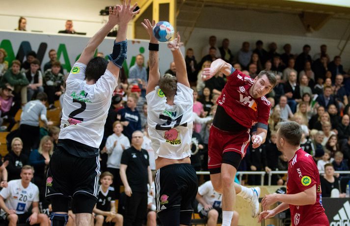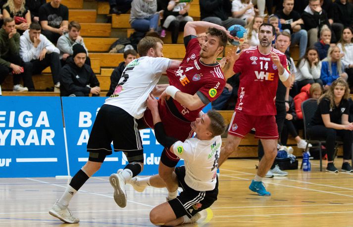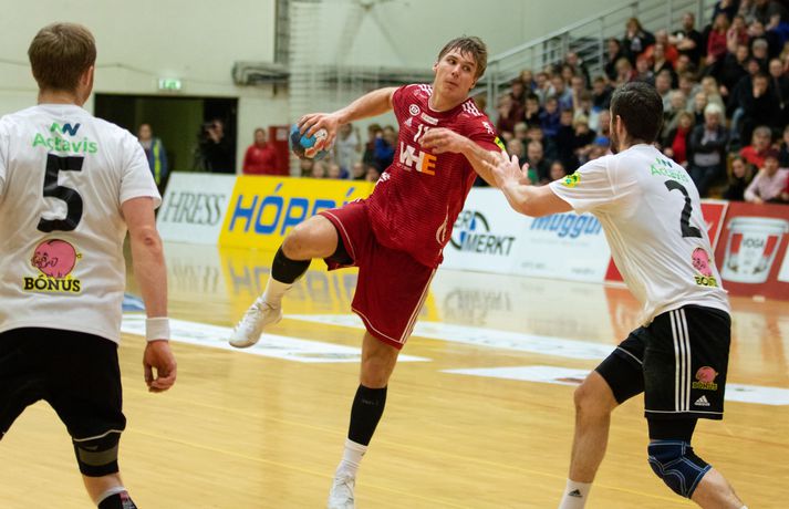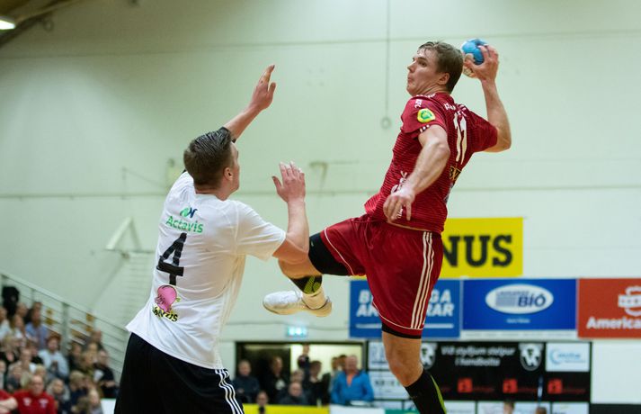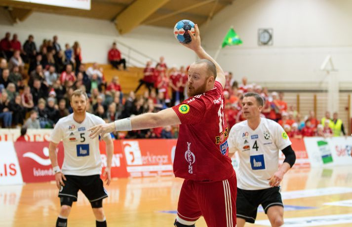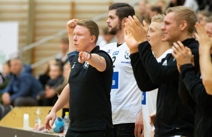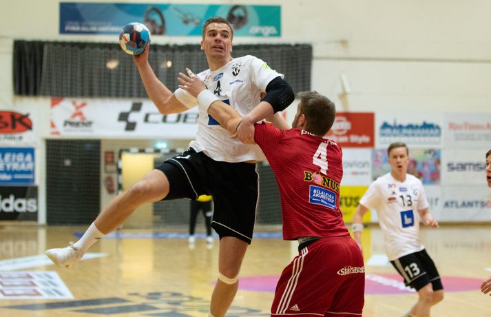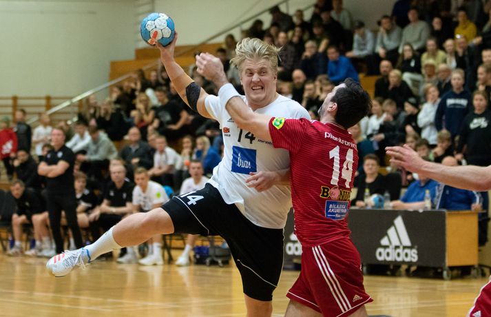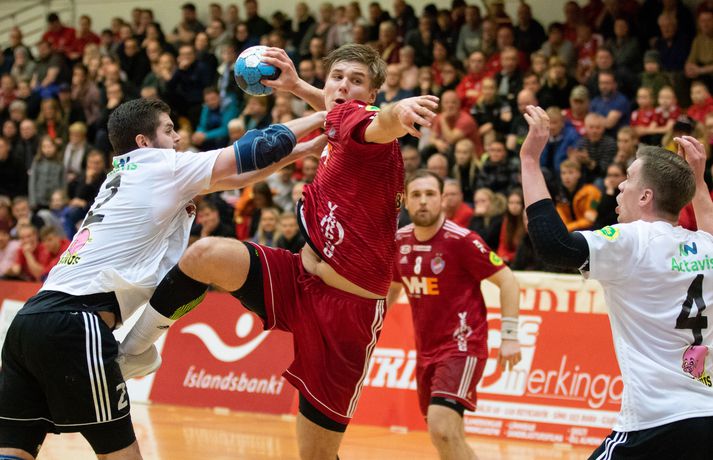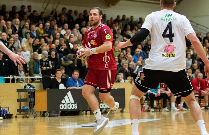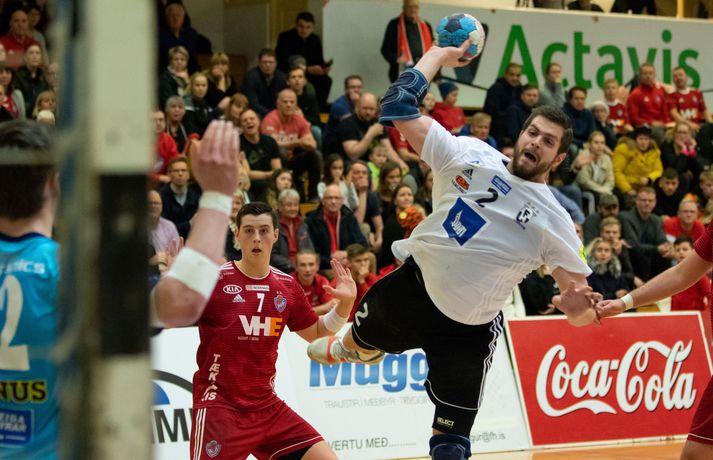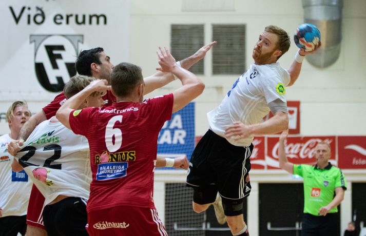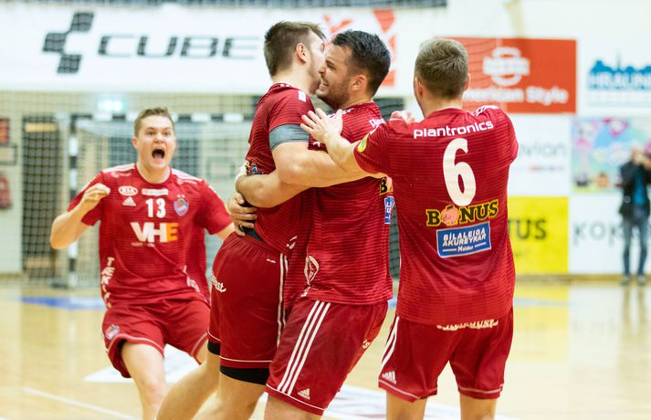 Umfjöllun, viðtöl og myndir: FH - Haukar 25-25 │Adam setti rauðan svip á Hafnarfjörð Ástrós Ýr Eggertsdóttir í Kaplakrika skrifar 10. desember 2018 22:15 Haukar fögnuðu í leikslok vísir/bára Það er rauður bragur á Hafnarfjarðarbæ í kvöld þrátt fyrir að leik Hafnarfjarðarliðanna FH og Hauka hafi endað með jafntefli í Kaplakrika í kvöld. Adam Haukur Baumruk tryggði Haukum jafnteflið með marki á lokasekúndunum. Umgjörðin í Krikanum var eins og úrslitakeppnin væri skollin á, það er alltaf öllu tjaldað til þegar Hafnarfjarðarliðin mætast og leikurinn inni á vellinum var engu síðri. FH byrjaði leikinn betur og var með yfirhöndina í fyrri hálfleik. Heimamenn komust mest í fjögurra marka forystu en náðu þó aldrei að hrista Haukana af sér og var munurinn bara eitt mark þegar flautað var til hálfleiks 15-14. Í seinni hálfleik náðu Haukarnir að taka leikinn yfir og komust yfir í fyrsta skipti í leiknum á 35. mínútu. Haukar héldu forystunni allt þar til tíu mínútur voru eftir á leiknum og FH jafnaði. Síðustu tíu mínúturnar voru mjög spennuþrungnar. Bjarni Ófeigur Valdimarsson innsiglaði stórgóðan leik sinn með því að koma FH yfir þegar aðeins sjö sekúndur voru eftir á klukkunni. Haukar brunuðu í sókn og Ásgeir Örn Hallgrímsson náði í aukakast. Tíminn var við það að renna út, gestirnir stilltu upp fyrir Adam Hauk að taka síðasta skotið, hann stökk upp og skoraði. Lokatölur 25-25.Bára Dröfn, ljósmyndari Vísis, var í Kaplakrika í kvöld og tók meðfylgjandi myndirAf hverju varð jafntefli? Adam Haukur er hetja kvöldsins í rauða hluta Hafnarfjarðarbæjar og hann er í grunninn niðurstaða þess að það varð jafntefli. Bæði þessi lið eru mjög góð í handbolta og það skilur lítið á milli þeirra. Haukar voru oft á tíðum nokkuð klaufskir í sókninni í seinni hálfleiknum á sama tíma og markvarslan var mun betri hjá Haukum. Í leikjum svona jafnra liða skipta litlu hlutirnir máli, þeir duttu með hvorugu liðinu í kvöld og stig á haus því niðurstaðan. Hverjir stóðu upp úr? Bjarni Ófeigur átti mjög góðan leik og hann hefur verið að skila mörkum í síðustu leikjum FH. Ásbjörn Friðriksson byrjaði frábærlega fyrir þá hvítu en lét minna fyrir sér fara í seinni hálfleik. Heimir Óli Heimisson var sterkur í vörninni fyrir Hauka og skilaði sínu sóknarlega, var þeirra markahæstur. En það var Andri Sigmarsson Scheving sem stóð hvað hæst í Haukaliðinu, hann varði vel og á mikilvægum augnablikum og endaði með sómasamlega 43 prósenta markvörslu.Hvað gekk illa? Það hefur sést betri sóknarleikur í þessu húsi, varnarleikurinn var aðalsmerki þessa leiks, en sóknarleikurinn var ekkert alslæmur. Bæði lið misstu boltann klaufalega á tímum, en það var meira áberandi hjá Haukunum. FH fékk ekki sérlega góða markvörslu framan af en Kristófer Fannar Guðmundsson kom inn í seinni hálfleik og varði nokkra mikilvæga bolta.Hvað gerist næst? Það er ein umferð eftir fyrir jól en það er þó bikarkeppnin sem er næst á dagskrá. FH sækir Víking heim á fimmtudaginn, 13. desember, og Haukar fá Aftureldingu í heimsókn í 16-liða úrslitum Coca Cola bikarsins.Gunnar: Adam bjargaði jólunum „Adam, hann bara bjargaði jólunum. Það er ekkert flóknara en það,“ sagði Gunnar Magnússon, þjálfari Hauka, í leikslok. „Maður sefur betur og jólin eru betri.“ „Þetta var týpískur Hafnarfjarðarslagur, leikur áhlaupa. Ég var óánægður með byrjunina, munurinn í byrjun var markvarslan, hún var mikil hjá þeim en lítil hjá okkur. Við náum að jafna það og komast inn í leikinn aftur og náum svo forskoti.“ „Svo fannst mér við vera mjög miklir klaufar. Köstum boltanum frá okkur, förum illa með margar góðar sóknir. Við eigum sem betur fer síðasta áhlaupið en ég er alveg svakalega ósáttur við síðasta markið sem við fáum á okkur.“ „Ég skil ekki af hverju við mættum ekki Bjarna á þessu mómenti, ég á erfitt með að sætta mig við það. Hann kemur upp á mitt markið á einhverja átta metra, ótrúlegt að við höfum fengið þetta mark á okkur, ég er mjög ósáttur við það.“ Báðir Hafnarfjarðarslagirnir á þessu tímabili, að minnsta kosti í deildarkeppninni – það kemur í ljós hvort þeir verði fleiri með vorinu, enda í jafntefli. Þurfa Hafnfirðingar að sætta sig við að liðin séu bara jafn góð? „Þetta eru bara tvö frábær lið. Þetta er eins og handbolti gerist bestur og gaman að taka þátt í þessu,“ sagði Gunnar Magnússon.vísir/báraHalldór: Hefðum getað verið miskunnarlausari „Ég var ekkert ósáttur, Adam gerir þetta vel þegar hann skýtur, auðvitað súrt að vera svona nálægt þessu en stundum er þetta þannig,“ sagði Halldór Jóhann Sigfússon, þjálfari FH í leikslok. „Við skoruðum á síðustu sekúndunum hér fyrir nánast nákvæmlega ári og fórum með sigur.“ „Ég held að þetta hafi bara verið góður leikur en úr því sem komið var hefðum við viljað taka tvö stigin.“ Fannst Halldóri sitt lið hafa getað gert eitthvað betur á lokametrunum, þegar þeir voru komnir yfir aftur? „Við vorum að klikka svolítið á dauðafærum þegar við hefðum getað verið miskunnarlausari og klárað þá.“ „Auðvitað ver markmaðurinn vel í leiknum líka. Kristófer kemur með mikilvægar vörslur fyrir okkur þegar við þurfum á þeim að halda til þess að koma okkur aftur inn í leikinn. Það eru bara alltaf sveiflur í þessum leikjum.“ „Hrikalega góður handboltaleikur að mörgu leiti en við gerum óþarflega mörg mistök miðað við hvað við erum vanir að gera,“ sagði Halldór Jóhann Sigfússon.Adam: Bara negla eitthvað og vona að hann fari inn „Mér líður mjög vel. Þetta geris