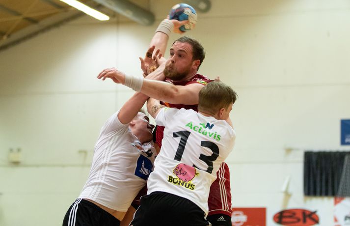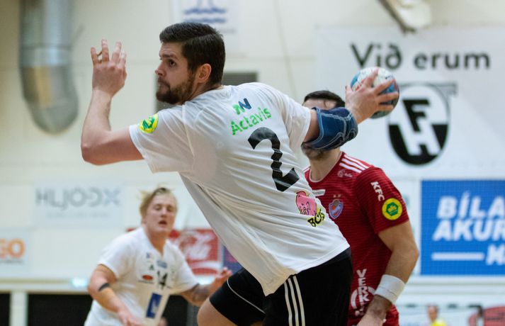 Það er rauður bragur á Hafnarfjarðarbæ í kvöld þrátt fyrir að leik Hafnarfjarðarliðanna FH og Hauka hafi endað með jafntefli í Kaplakrika í kvöld. Adam Haukur Baumruk tryggði Haukum jafnteflið með marki á lokasekúndunum. Umgjörðin í Krikanum var eins og úrslitakeppnin væri skollin á, það er alltaf öllu tjaldað til þegar Hafnarfjarðarliðin mætast og leikurinn inni á vellinum var engu síðri. FH byrjaði leikinn betur og var með yfirhöndina í fyrri hálfleik. Heimamenn komust mest í fjögurra marka forystu en náðu þó aldrei að hrista Haukana af sér og var munurinn bara eitt mark þegar flautað var til hálfleiks 15-14. Í seinni hálfleik náðu Haukarnir að taka leikinn yfir og komust yfir í fyrsta skipti í leiknum á 35. mínútu. Haukar héldu forystunni allt þar til tíu mínútur voru eftir á leiknum og FH jafnaði. Síðustu tíu mínúturnar voru mjög spennuþrungnar. Bjarni Ófeigur Valdimarsson innsiglaði stórgóðan leik sinn með því að koma FH yfir þegar aðeins sjö sekúndur voru eftir á klukkunni. Haukar brunuðu í sókn og Ásgeir Örn Hallgrímsson náði í aukakast. Tíminn var við það að renna út, gestirnir stilltu upp fyrir Adam Hauk að taka síðasta skotið, hann stökk upp og skoraði. Lokatölur 25-25.Bára Dröfn, ljósmyndari Vísis, var í Kaplakrika í kvöld og tók meðfylgjandi myndirAf hverju varð jafntefli? Adam Haukur er hetja kvöldsins í rauða hluta Hafnarfjarðarbæjar og hann er í grunninn niðurstaða þess að það varð jafntefli. Bæði þessi lið eru mjög góð í handbolta og það skilur lítið á milli þeirra. Haukar voru oft á tíðum nokkuð klaufskir í sókninni í seinni hálfleiknum á sama tíma og markvarslan var mun betri hjá Haukum. Í leikjum svona jafnra liða skipta litlu hlutirnir máli, þeir duttu með hvorugu liðinu í kvöld og stig á haus því niðurstaðan. Hverjir stóðu upp úr? Bjarni Ófeigur átti mjög góðan leik og hann hefur verið að skila mörkum í síðustu leikjum FH. Ásbjörn Friðriksson byrjaði frábærlega fyrir þá hvítu en lét minna fyrir sér fara í seinni hálfleik. Heimir Óli Heimisson var sterkur í vörninni fyrir Hauka og skilaði sínu sóknarlega, var þeirra markahæstur. En það var Andri Sigmarsson Scheving sem stóð hvað hæst í Haukaliðinu, hann varði vel og á mikilvægum augnablikum og endaði með sómasamlega 43 prósenta markvörslu.Hvað gekk illa? Það hefur sést betri sóknarleikur í þessu húsi, varnarleikurinn var aðalsmerki þessa leiks, en sóknarleikurinn var ekkert alslæmur. Bæði lið misstu boltann klaufalega á tímum, en það var meira áberandi hjá Haukunum. FH fékk ekki sérlega góða markvörslu framan af en Kristófer Fannar Guðmundsson kom inn í seinni hálfleik og varði nokkra mikilvæga bolta.Hvað gerist næst? Það er ein umferð eftir fyrir jól en það er þó bikarkeppnin sem er næst á dagskrá. FH sækir Víking heim á fimmtudaginn, 13. desember, og Haukar fá Aftureldingu í heimsókn í 16-liða úrslitum Coca Cola bikarsins.Gunnar: Adam bjargaði jólunum „Adam, hann bara bjargaði jólunum. Það er ekkert flóknara en það,“ sagði Gunnar Magnússon, þjálfari Hauka, í leikslok. „Maður sefur betur og jólin eru betri.“ „Þetta var týpískur Hafnarfjarðarslagur, leikur áhlaupa. Ég var óánægður með byrjunina, munurinn í byrjun var markvarslan, hún var mikil hjá þeim en lítil hjá okkur. Við náum að jafna það og komast inn í leikinn aftur og náum svo forskoti.“ „Svo fannst mér við vera mjög miklir klaufar. Köstum boltanum frá okkur, förum illa með margar góðar sóknir. Við eigum sem betur fer síðasta áhlaupið en ég er alveg svakalega ósáttur við síðasta markið sem við fáum á okkur.“ „Ég skil ekki af hverju við mættum ekki Bjarna á þessu mómenti, ég á erfitt með að sætta mig við það. Hann kemur upp á mitt markið á einhverja átta metra, ótrúlegt að við höfum fengið þetta mark á okkur, ég er mjög ósáttur við það.“ Báðir Hafnarfjarðarslagirnir á þessu tímabili, að minnsta kosti í deildarkeppninni – það kemur í ljós hvort þeir verði fleiri með vorinu, enda í jafntefli. Þurfa Hafnfirðingar að sætta sig við að liðin séu bara jafn góð? „Þetta eru bara tvö frábær lið. Þetta er eins og handbolti gerist bestur og gaman að taka þátt í þessu,“ sagði Gunnar Magnússon.vísir/báraHalldór: Hefðum getað verið miskunnarlausari „Ég var ekkert ósáttur, Adam gerir þetta vel þegar hann skýtur, auðvitað súrt að vera svona nálægt þessu en stundum er þetta þannig,“ sagði Halldór Jóhann Sigfússon, þjálfari FH í leikslok. „Við skoruðum á síðustu sekúndunum hér fyrir nánast nákvæmlega ári og fórum með sigur.“ „Ég held að þetta hafi bara verið góður leikur en úr því sem komið var hefðum við viljað taka tvö stigin.“ Fannst Halldóri sitt lið hafa getað gert eitthvað betur á lokametrunum, þegar þeir voru komnir yfir aftur? „Við vorum að klikka svolítið á dauðafærum þegar við hefðum getað verið miskunnarlausari og klárað þá.“ „Auðvitað ver markmaðurinn vel í leiknum líka. Kristófer kemur með mikilvægar vörslur fyrir okkur þegar við þurfum á þeim að halda til þess að koma okkur aftur inn í leikinn. Það eru bara alltaf sveiflur í þessum leikjum.“ „Hrikalega góður handboltaleikur að mörgu leiti en við gerum óþarflega mörg mistök miðað við hvað við erum vanir að gera,“ sagði Halldór Jóhann Sigfússon.Adam: Bara negla eitthvað og vona að hann fari inn „Mér líður mjög vel. Þetta gerist ekki betra,“ sagði hetja Hauka Adam Haukur Baumruk. „Við vorum klaufar en það var fínt að klára þetta.“ Adam fór upp í skotið sem bjargaði stiginu en hann hefði alls getað verið skúrkuri