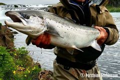 „Það gerðist bara allt í einu fyrir fjórum árum að lax fór að veiðast á stöng hér í ánni,“ segir Einar Haraldsson á Urriðafossi. „Enginn veit af hverju þetta breyttist allt í einu en ég hef þó kenningar um það,“ segir Einar við Fréttablaðið um stangaveiðiævintýrið í Þjórsá. Ástæðan sé þríþætt. „Hlýnandi veðurfar alveg frá aldamótum þýðir að ísmyndun í ánni er minni og þar af leiðandi hafa afföllin af seiðunum verið miklu minni. Í öðru lagi var opnaður fiskistigi árið 1995 og hefur ganga fisks verið að aukast og þannig framleiðsla árinnar á seiðum og í þriðja lagi eru sennilega hagstæð skilyrði í sjónum.“Einar Haraldsson bóndi og netaveiði við Urriðafoss í Þjórsá.Einar hefur lengi veitt lax í net í Þjórsá og segir að veiði í net sé mikil vinna. „Ég þarf að fara á báti og vitja um netið fjórum sinnum á dag, svo þarf ég að bera allan fisk sem ég veiði í poka upp skriðu frá ánni. Síðan daginn eftir þarf ég að koma honum á markað til Reykjavíkur. Ég sel hann í Melabúðina.“ Eftir að laxinn fór að veiðast á stöng við Urriðafoss hefur Einar leigt út hluta hennar og eru þar seld veiðileyfi fyrir fjórar stangir á dag. „Það er uppselt alveg fram í ágúst og á meðan þetta gengur svona vel þá höldum við þessu hiklaust áfram,“ segir Einar. „Ég hélt eftir einu neti sem er um það bil kílómetra fyrir neðan þetta svæði. Þar eru minni líkur á að hægt sé að veiða á stöng en ef það breytist er ég alveg opinn fyrir því að taka upp netið,“ segir Einar sem hefur gaman af þeim breytingum sem hafa átt sér stað í ánni. Mikill fiskur er í Þjórsá og er hún í augnablikinu aflamesta laxveiðiá landsins samkvæmt Landssambandi veiðifélaga. Nýjustu tölur á vef sambandsins frá því á fimmtudag í síðustu viku sýndu að veiðst höfðu 502 laxar á stöng í Urriðafossi í sumar. Næst á listanum var Eystri-Rangá þar sem veiðst hafa 405 laxar á þrefalt fleiri stangir. „Það er gríðarlega mikill fiskur í ánni, en svo er það líka þannig að það gengur illa í mörgum öðrum ám. Vatnsmagnið í Þjórsá er alltaf mikið en flestar laxveiðiár eru svo vatnsskiptar að fiskurinn á erfitt með að ganga í þær. Það er bara þannig eftir þurrka í allt sumar,“ segir Einar Haraldsson.