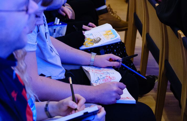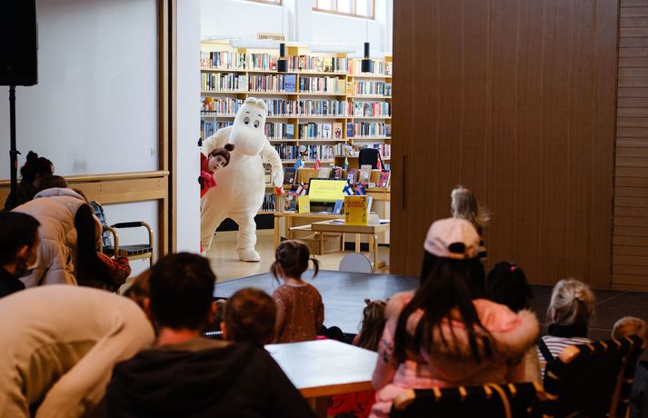„Ég er í hálfgerðu spennufalli eftir ótrúlega skemmtilega daga,“ segir Bergrún glöð í bragði. „Hátíðin átti að fara fram í fyrra en við tókum þá erfiðu en nauðsynlegu ákvörðun að fresta henni um ár vegna Covid. Þá vorum við bjartsýn um að lífið væri komið í eðlilegar skorður tólf mánuðum síðar en það reyndist samt erfið ákvörðun að láta vaða og halda hátíðina.“ Veðrið lék við gesti sem fengu leiðsögn um Reykjavík frá Lindu Ólafsdóttur og Margréti Tryggvadóttur. Bergrún segir ekki hlaupið að því að flytja hingað til lands erlenda rithöfunda frá fjölmörgum löndum enda heimsfaraldurinn enn ekki genginn yfir. Það hafðist þó að lokum og gátu erlendir höfundar notið nokkurra góðra daga á Íslandi. Bergrún Íris ásamt forseta Íslands sem bauð gestum og aðstandendum hátíðarinnar á Bessastaði þar sem hann ávarpaði hópinn með skemmtilegri ræðu um barnabækur. „Hingað komu margir af bestu rit- og myndhöfundum bransans auk þess sem við fengum tvo mjög sérstaka gesti, alla leið úr Múmíndal.“ Heimsókn Múmínsnáða og Míu litlu vakti sérstaka lukku hjá börnum jafnt sem fullorðnum. Starfsfólk Norræna hússins gladdist þegar Múmínsnáði og Mía litla kíktu í heimsókn. „Ég held að starfsfólk Norræna hússins hafi orðið enn æstara en börnin og allir fengu mynd með þessum dásamlegu persónum, sem segir okkur hversu mikil áhrif skáldaðar barnabókapersónur geta haft og hversu lengi þær lifa með okkur.“ Börn bjuggu til sína eigin fjölnota poka með þeim Agnese Vanaga og Anna Vaivare frá Litháen. Er þetta í tíunda skipti sem Mýrin fer fram og var þema ársins tengt loftslagsbreytingum, náttúru og samfélagi. Kennarar frá Íslenska myndasögusamfélaginu héldu fyrirlestur fyrir unglinga. „Þegar við í stjórninni litum yfir barnabækur nútímans sáum við að loftslagsmál og fólksflutningar koma gjarnan við sögu, enda liggja þau mál þungt á börnum rétt eins og öðrum jarðarbúum. Sjálf tel ég mikilvægt að barnabókin endurspegli raunveruleika barna. Vönduð og vel gerð barnabók getur hjálpað barni að átta sig betur á aðstæðum, stýrt þeim frá kvíða og hvatt til aðgerða. Þetta eru allt málefni sem við getum betur tekist á við saman og þess vegna varð yfirskrift hátíðarinnar „Saman úti í Mýri,“ segir Bergrún brosandi að lokum. Gestir hlýddu á fjölbreyttar og áhugvaverðar málstofur fyrsta daginn. Fleiri vel valdar myndir frá hátíðinni má sjá í albúminu hér fyrir neðan. Rit- og myndhöfundurinn Lára Garðarsdóttir las upp úr fallegu bókinni sinni Flökkusaga sem fjallar á einlægan hátt um fólksflutninga, eða öllu heldur bjarnar-flutninga.Indrek Koff hélt vinnustofu þar sem hann kenndi krökkum að finna innblástur frá hljóðum, dró af því tilefni upp kornett og blés nokkra tóna.Hópur barna teiknaði sinn uppáhalds stað í sólkerfinu með Stjörnu-Sævari.Kristín Helga Gunnarsdóttir hélt lokaávarp hátíðarinnar og skildi gesti eftir með mikilvæg skilaboð fyrir framtíðina.Teikninemar Myndlistaskólans í Reykjavík skissuðu á meðan pallborðsumræðum stóð.Norræna húsið hefur verið heimili hátíðarinnar frá upphafi.